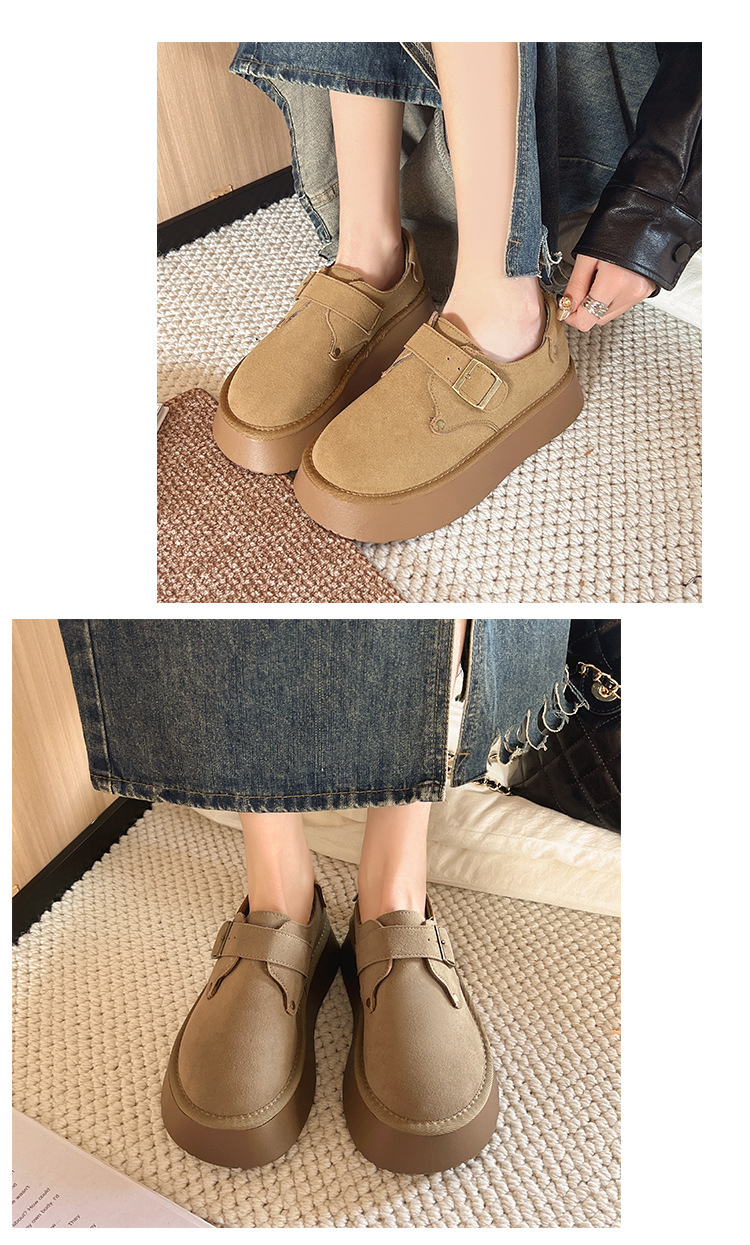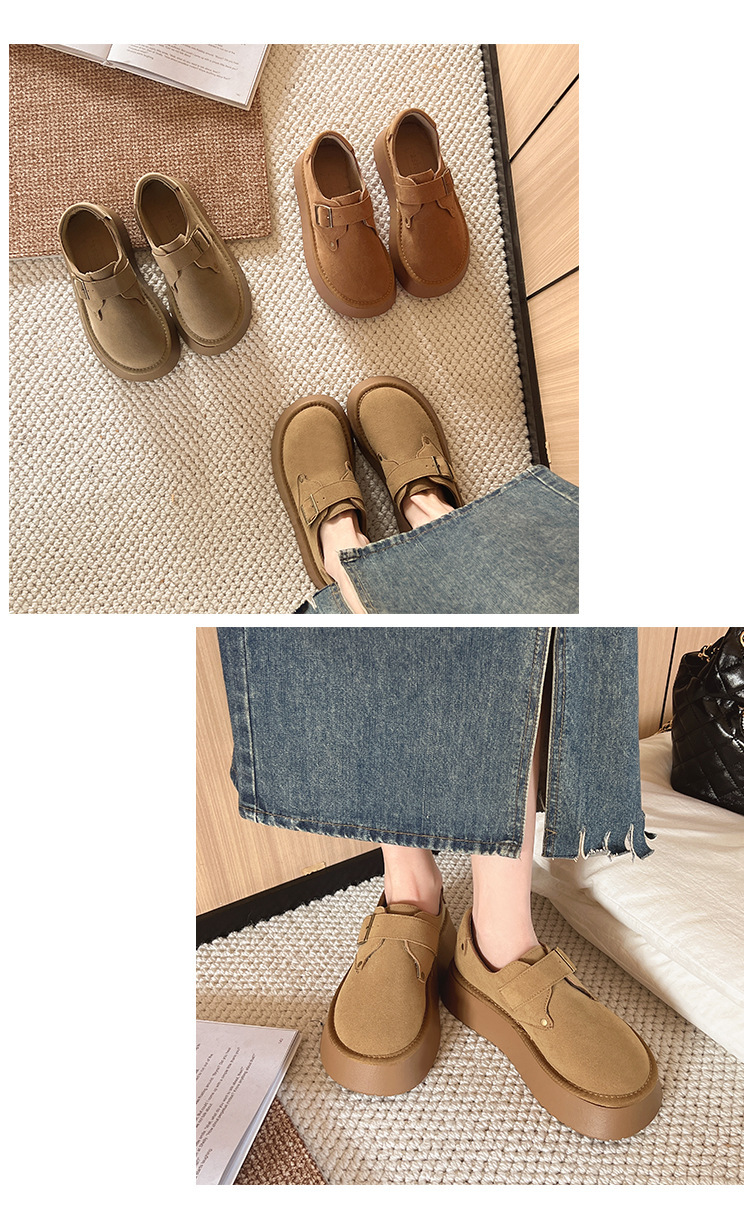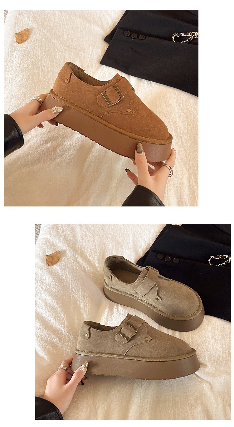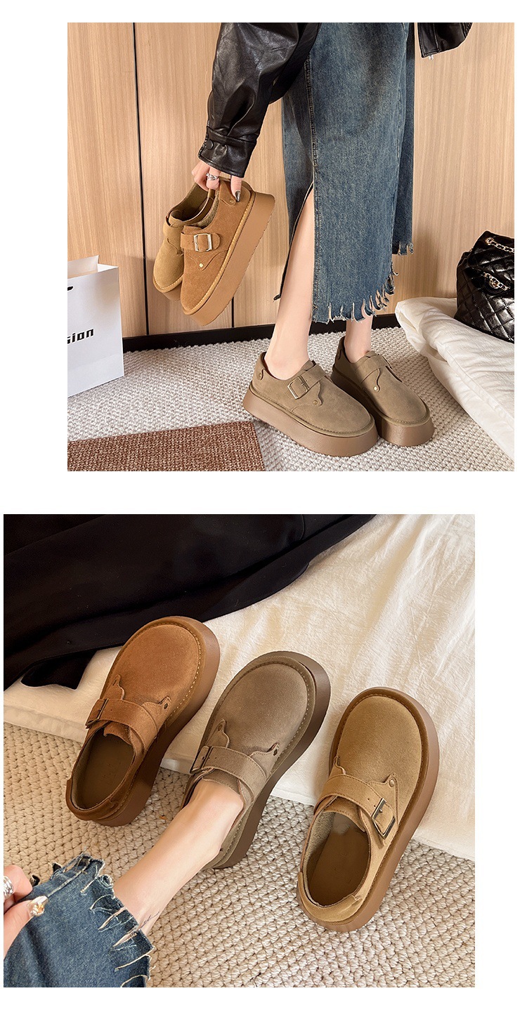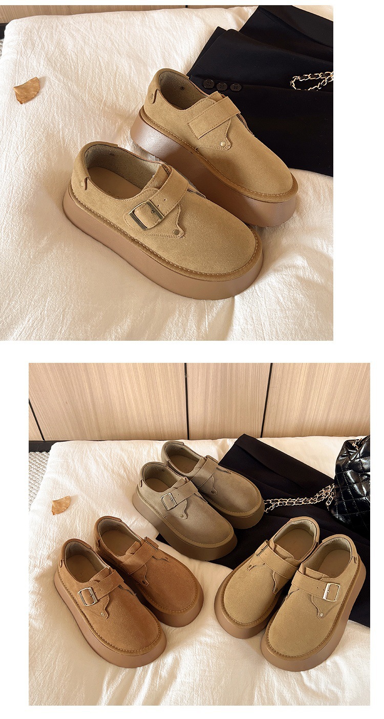 치마를 입은 여성을위한 두꺼운 밑창 싱글 레이어 신발 2024 새로운 가을 작은 플랫폼 신발 증가 버칸 신발 올 매치 멀러 신발스토어 가기
