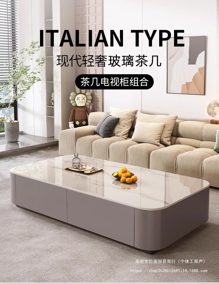 Nqu 1 라이트 럭셔리 커피 테이블 홈 거실 작은 아파트 2025 새로운 간단한 현대 바닥 유리 테이블 테이블스토어 가기