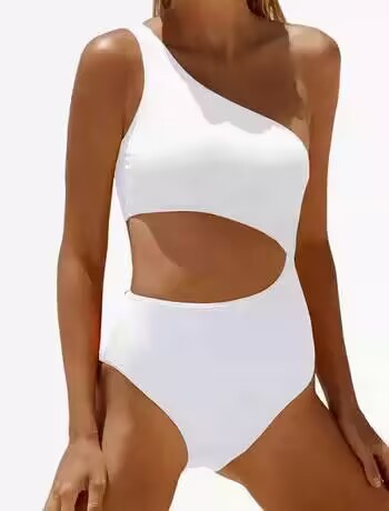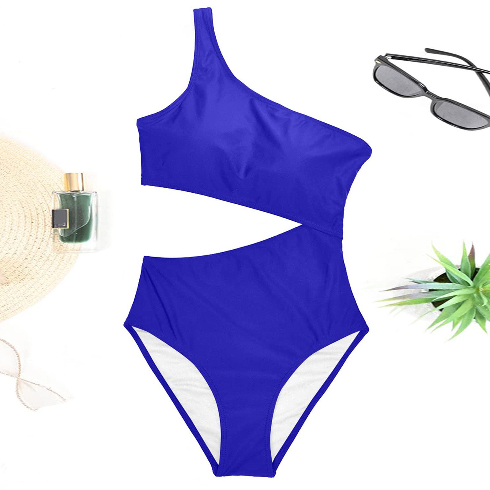 2025 대외 무역 수영복 새로운 원 숄더 섹시한 스티칭 컬러 원피스 수영복 크로스 보더 수영복 단색 유럽과 미국 수영복스토어 가기