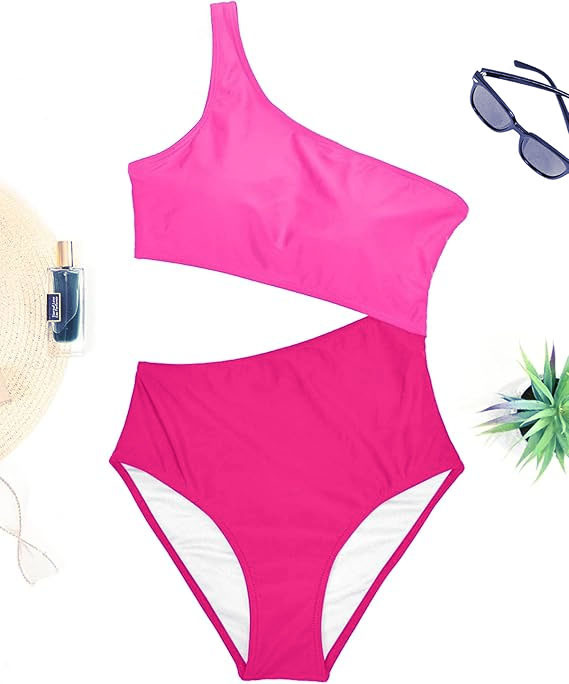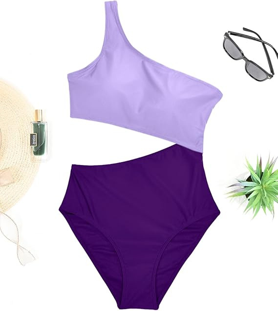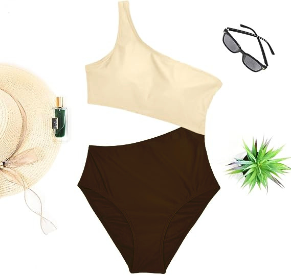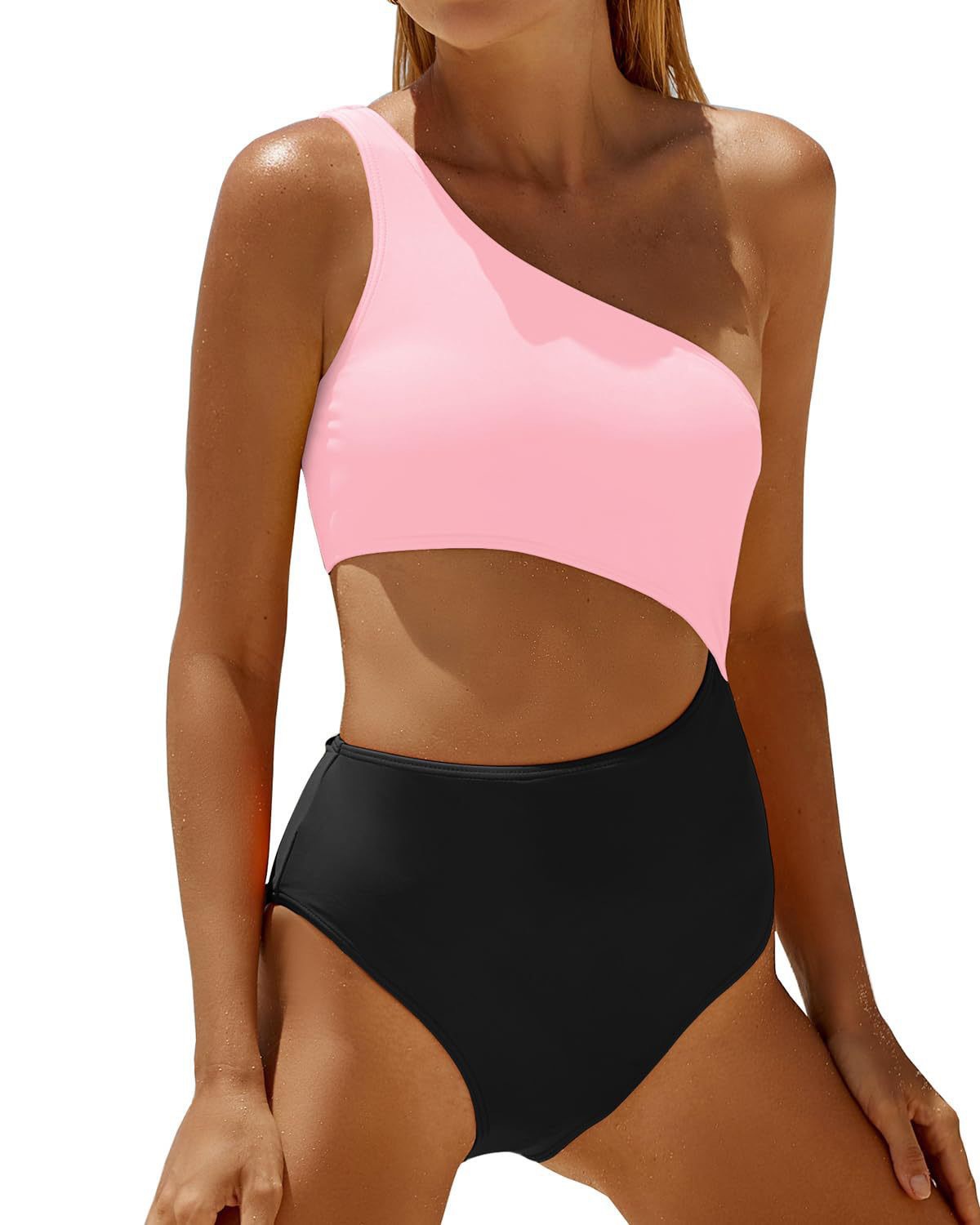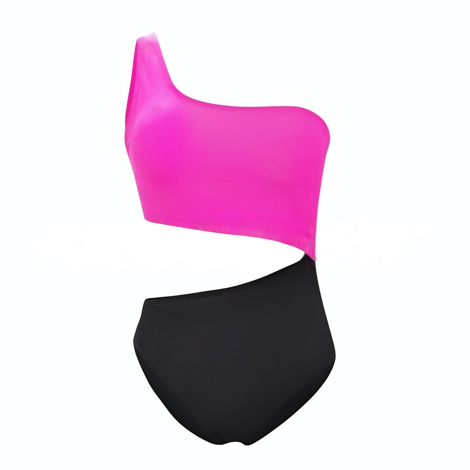 2025 대외 무역 수영복 새로운 원 숄더 섹시한 스티칭 컬러 원피스 수영복 크로스 보더 수영복 단색 유럽과 미국 수영복