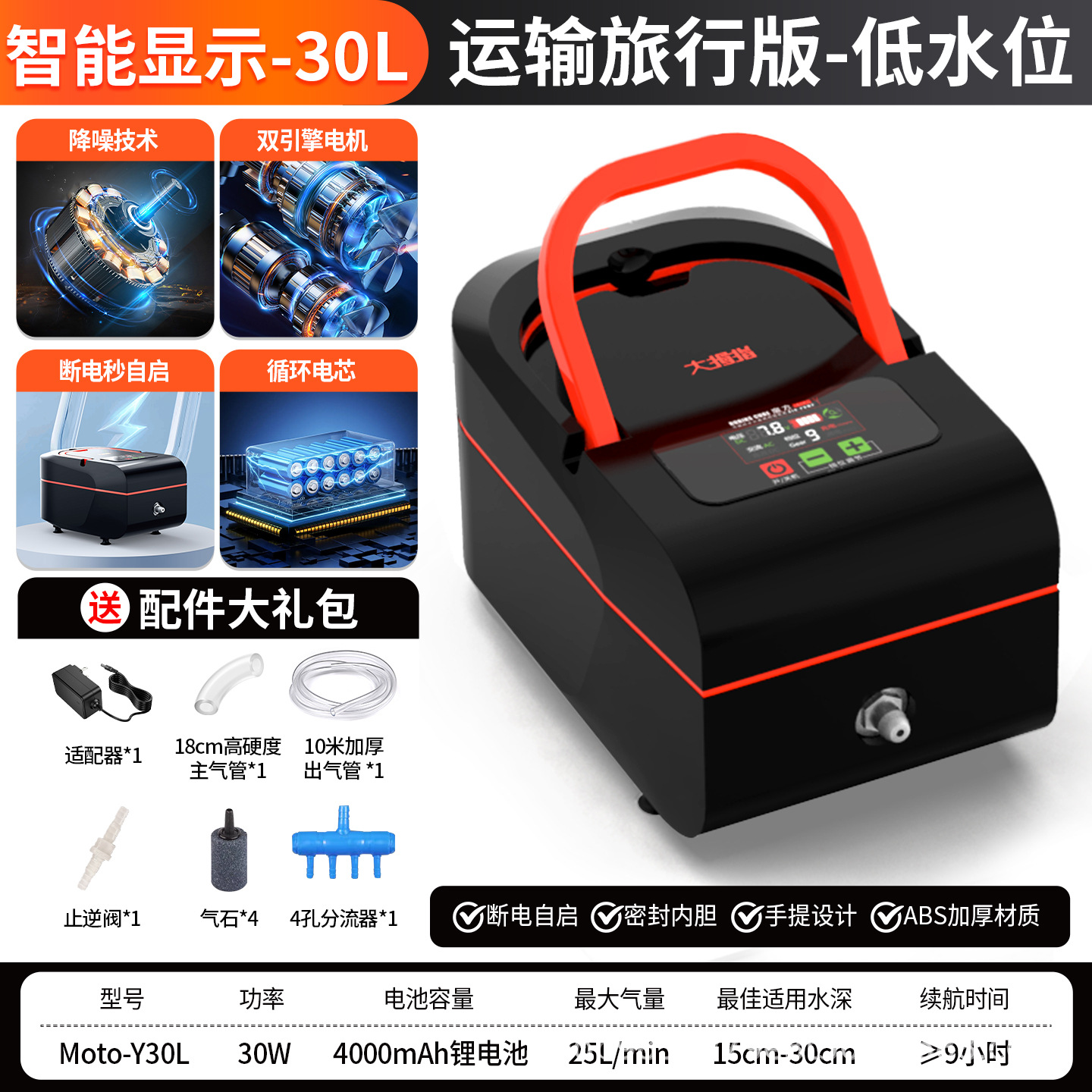 • [운송 여행 버전/스마트 디스플레이] 4홀/30W 리튬 이온 듀얼 모터/15-30c 수위