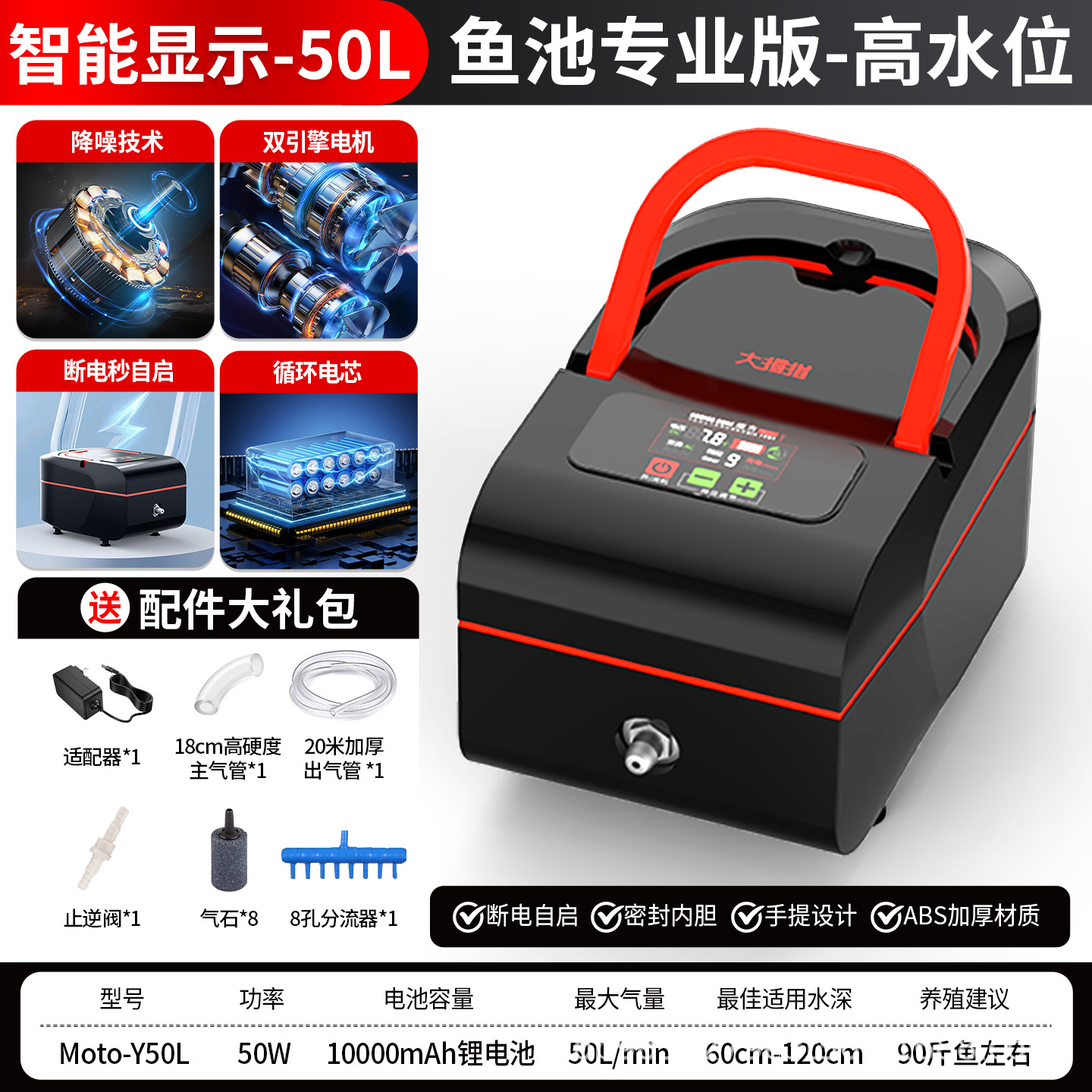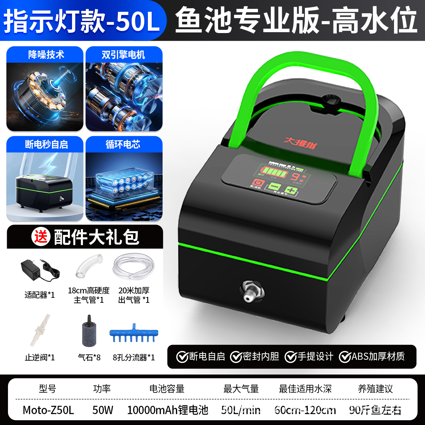 • [물고기 연못 프로페셔널 버전/표시등] 8홀/50W 리튬 배터리 듀얼 모터/수위 60-120cm용