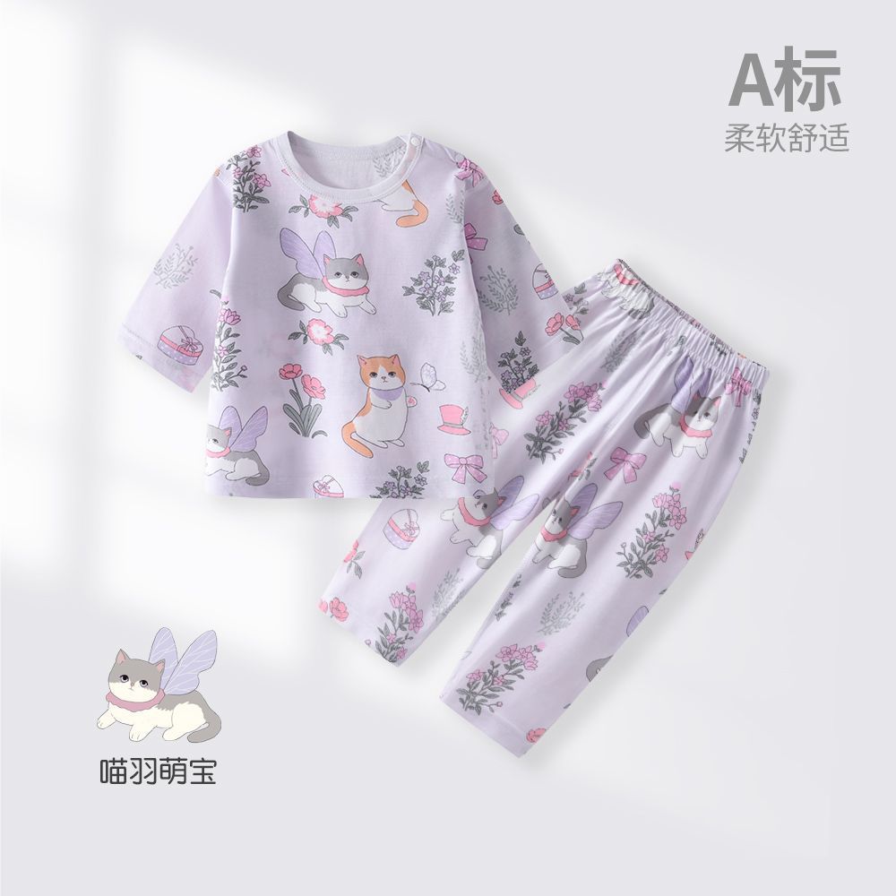 아기 여름 얇은 세트 면 9 소매 여름 에어컨 옷 유아 옷 여름 옷 어린이 홈 옷