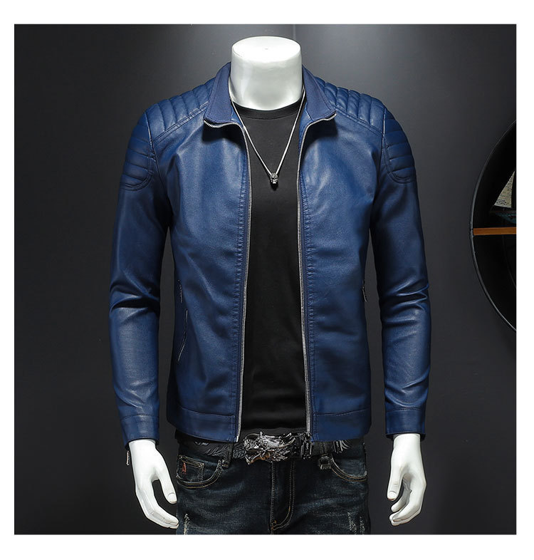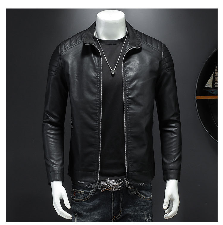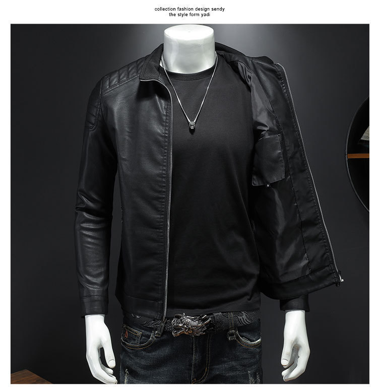 수직 칼라 가죽 자켓 남자의 유행 재킷 2022 봄 새로운 가죽 자켓 슬림핏 한국 잘 생긴 봄과 가을 남성복스토어 가기