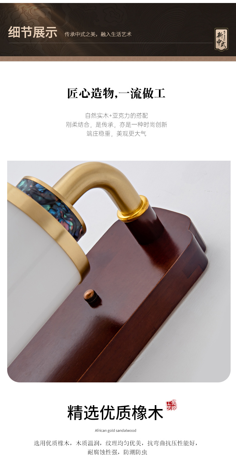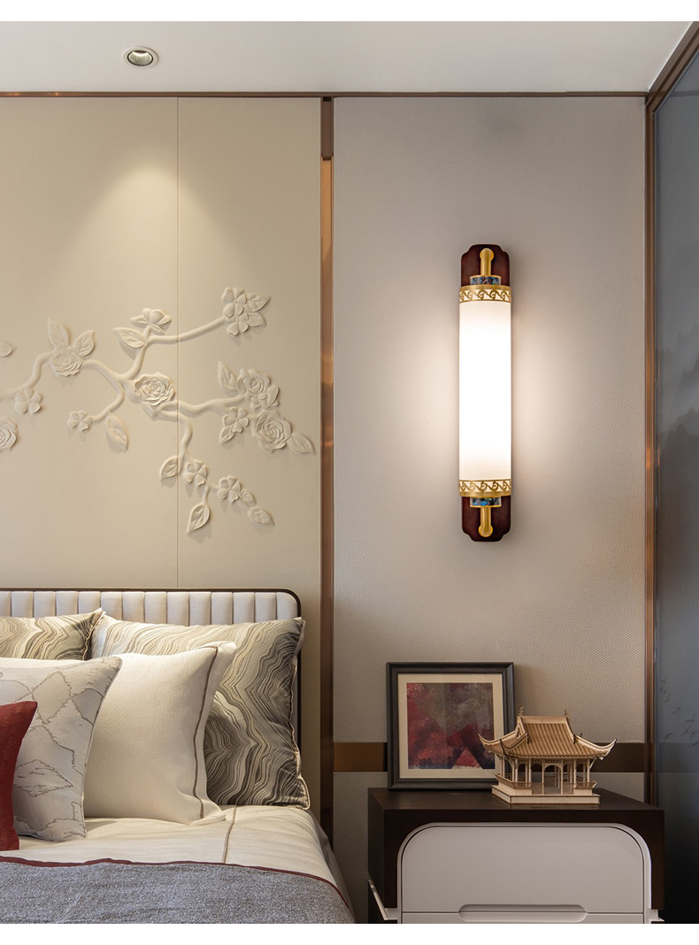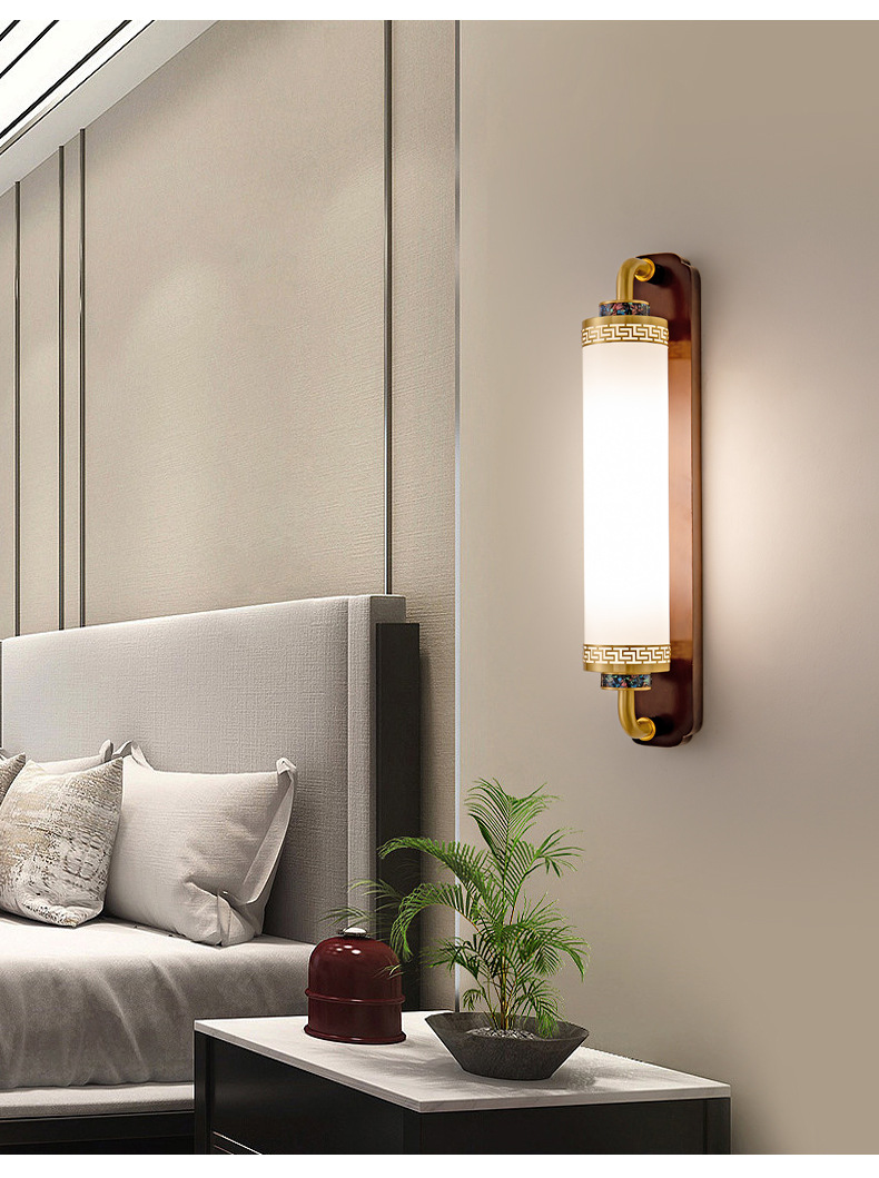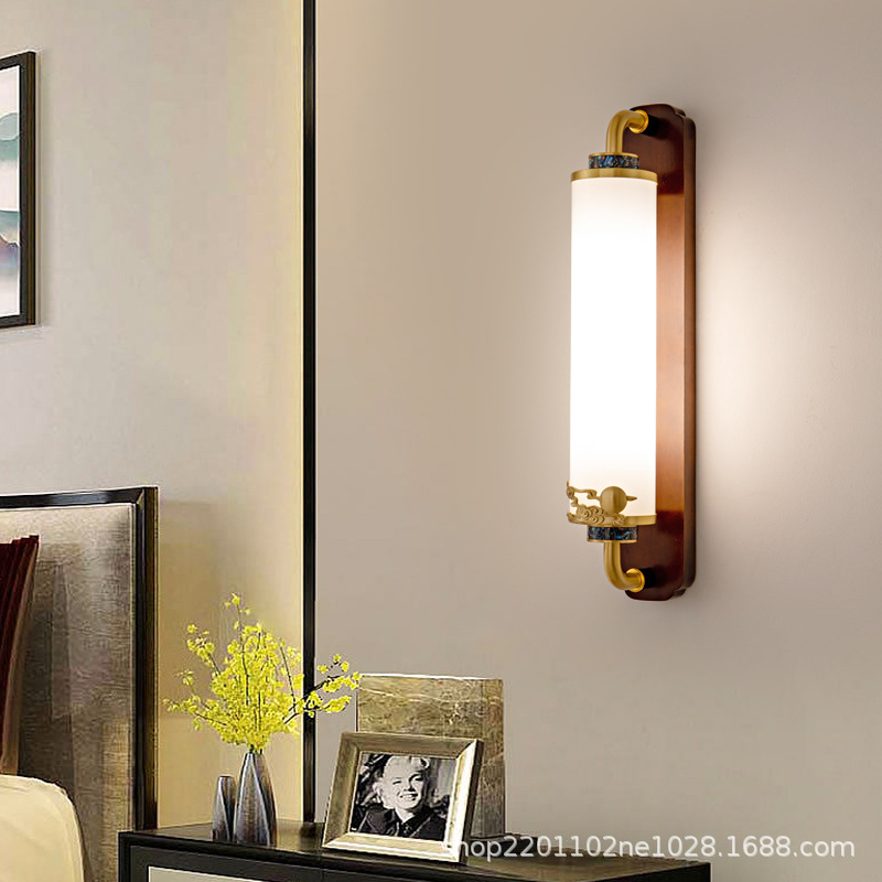 벽 램프 새로운 중국 모든 구리 빛 고급 단단한 나무 침실 침실 새 램프 중국 스타일의 선 티 룸 배경 벽 램프스토어 가기