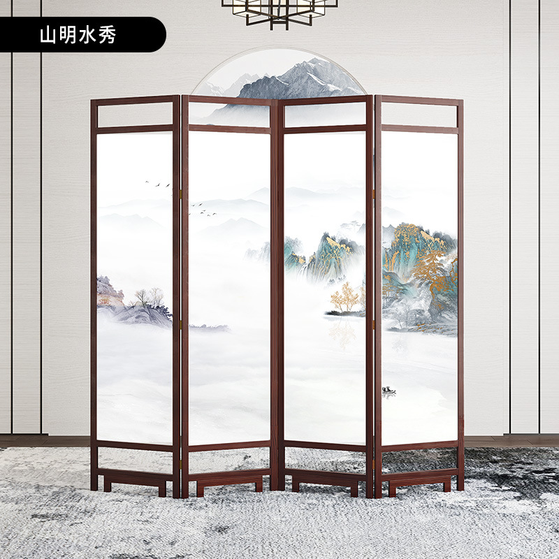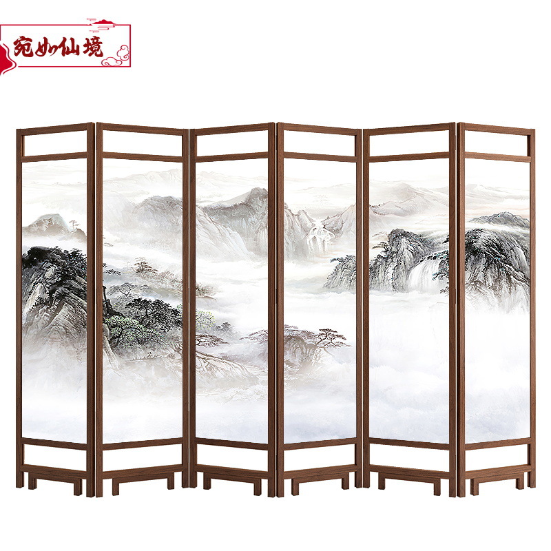 중국 스타일 솔리드 우드 스크린 파티션 벽 사무실 접히는 모바일 호텔 홈 거실 음영 입구 문 소프트스토어 가기