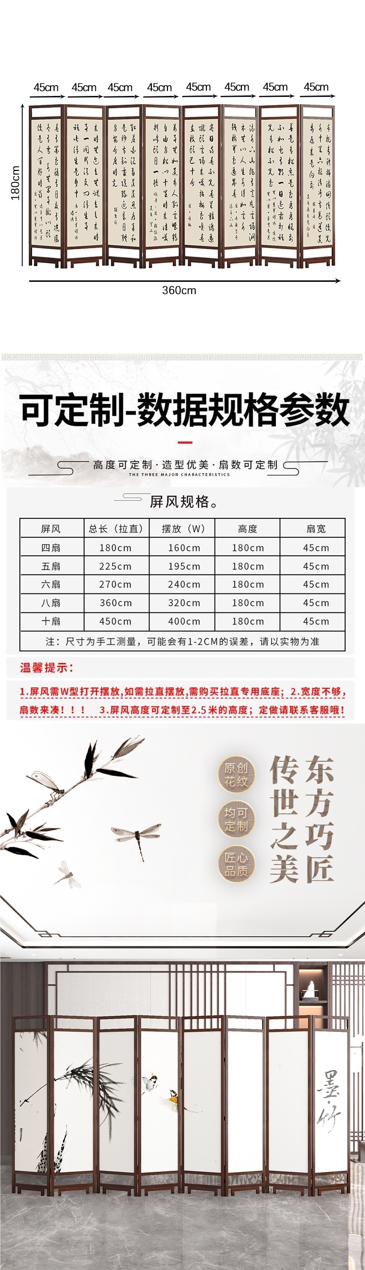 중국 스타일 솔리드 우드 스크린 파티션 벽 사무실 접히는 모바일 호텔 홈 거실 음영 입구 문 소프트