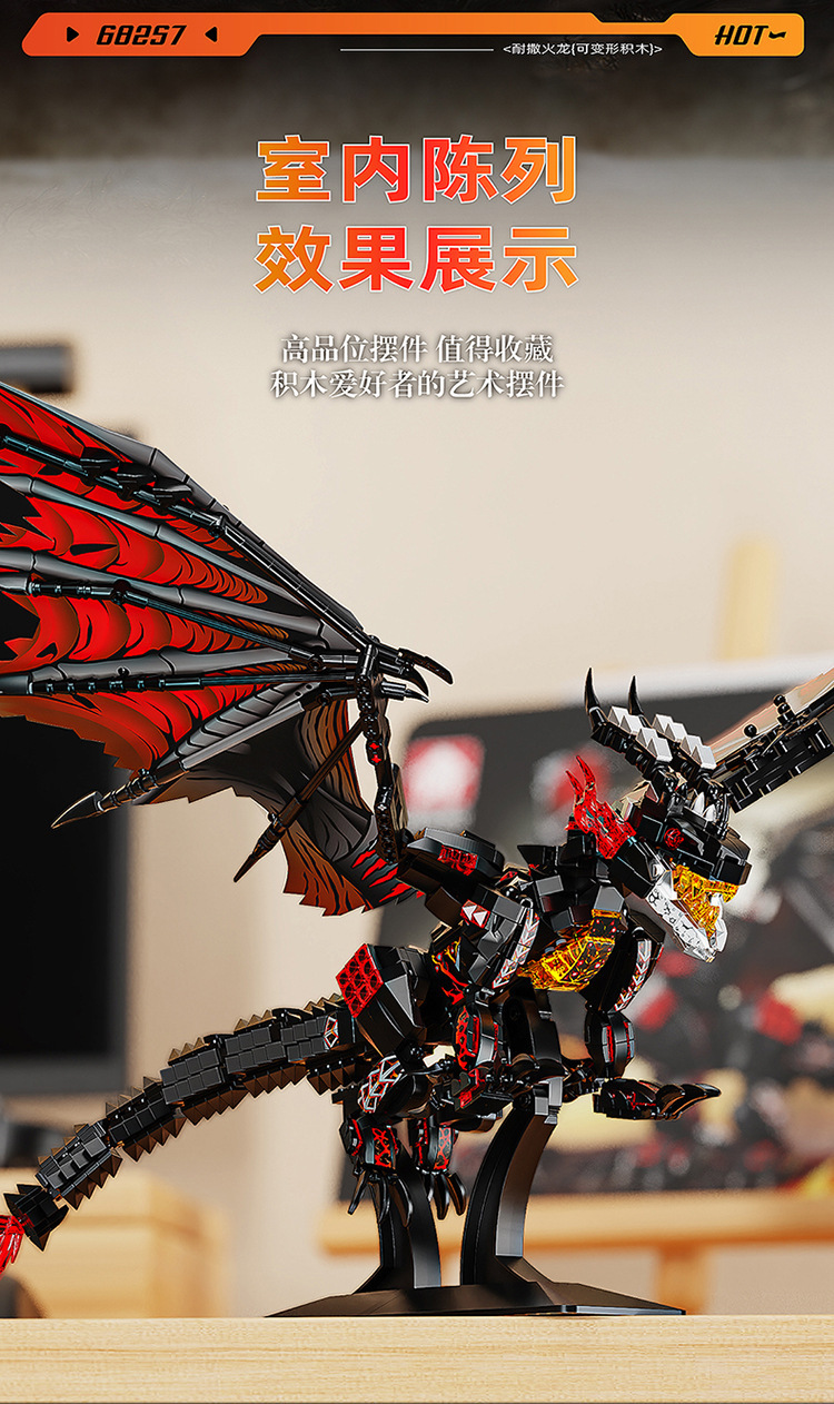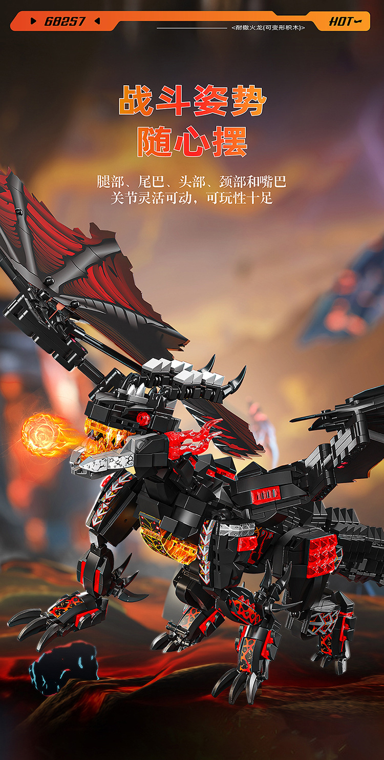 레고와 호환되는 메카 파이어 드래곤 모델 조립 장식품 소형 남아용 장난감 선물 로봇
