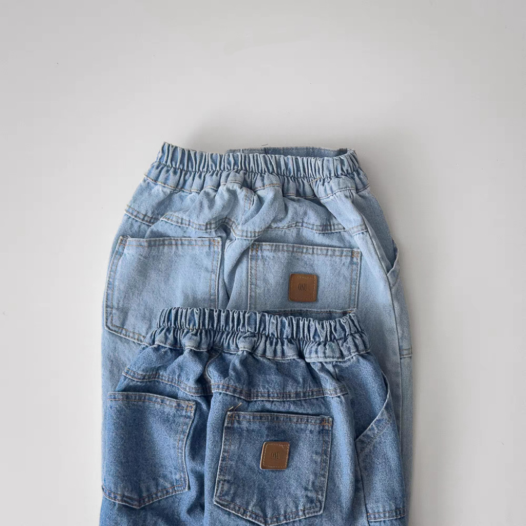 한국식 Ins 더블 포켓 스트레이트 청바지 봄 남녀 잘 생긴 올매치 캐주얼 어린이 바지 고무 밴드 바지스토어 가기