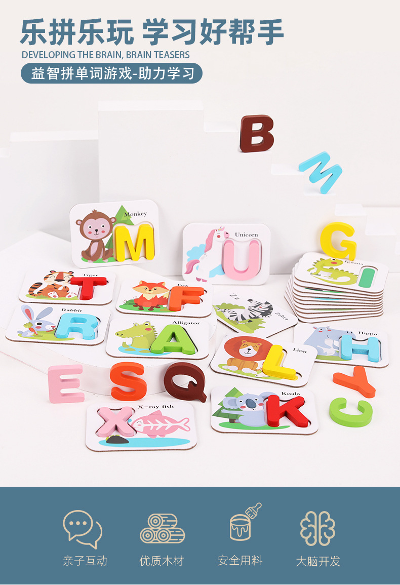 어린이 학습 영어 알파벳 단어 맞추기 게임 영어 연습 카드 유치원 조기 교육 교육 빌딩 블록 장난감