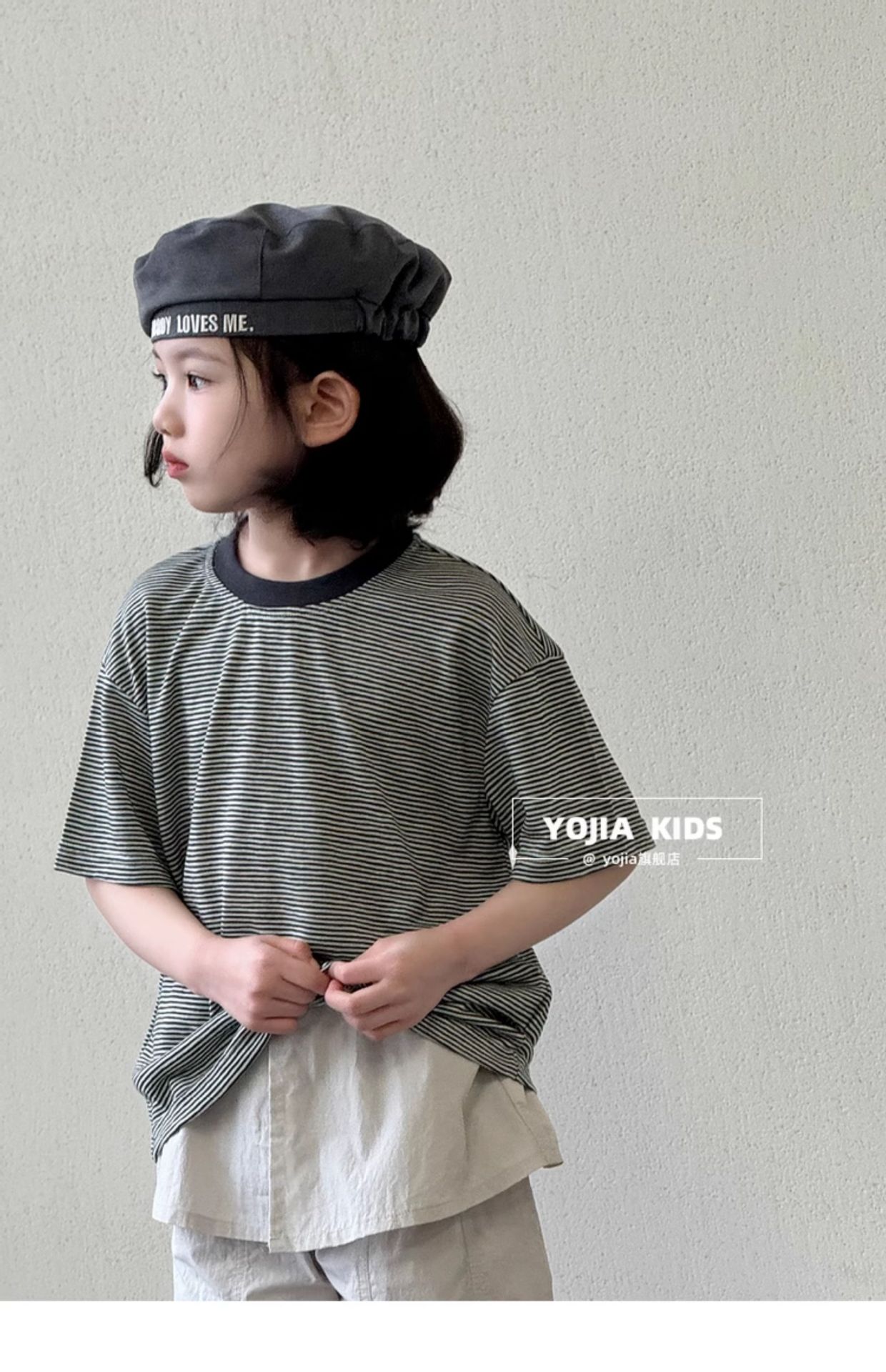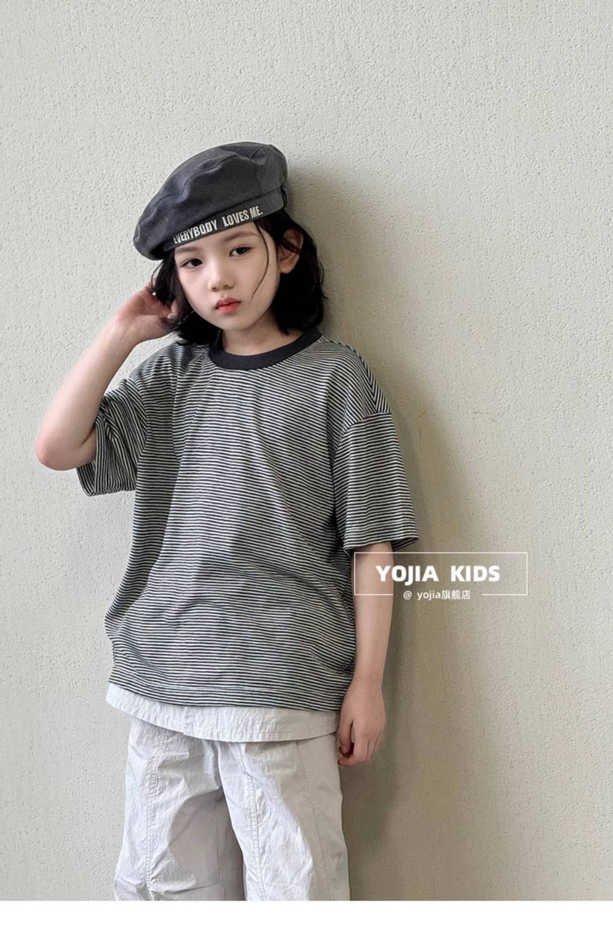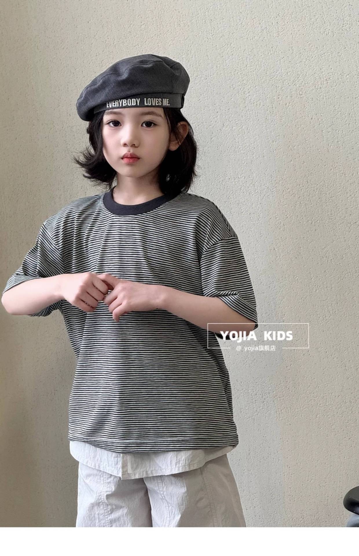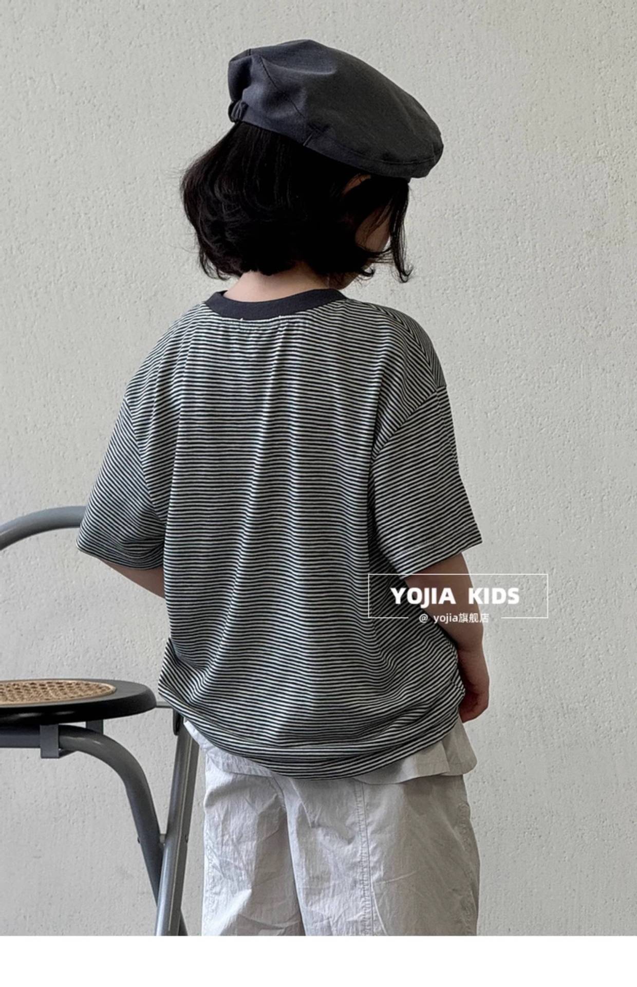 YOJIA Girls 반소매 여름 2025 새로운 한국식 Laid-back 아동복 줄무늬 반소매 어린이 티셔츠 여름스토어 가기