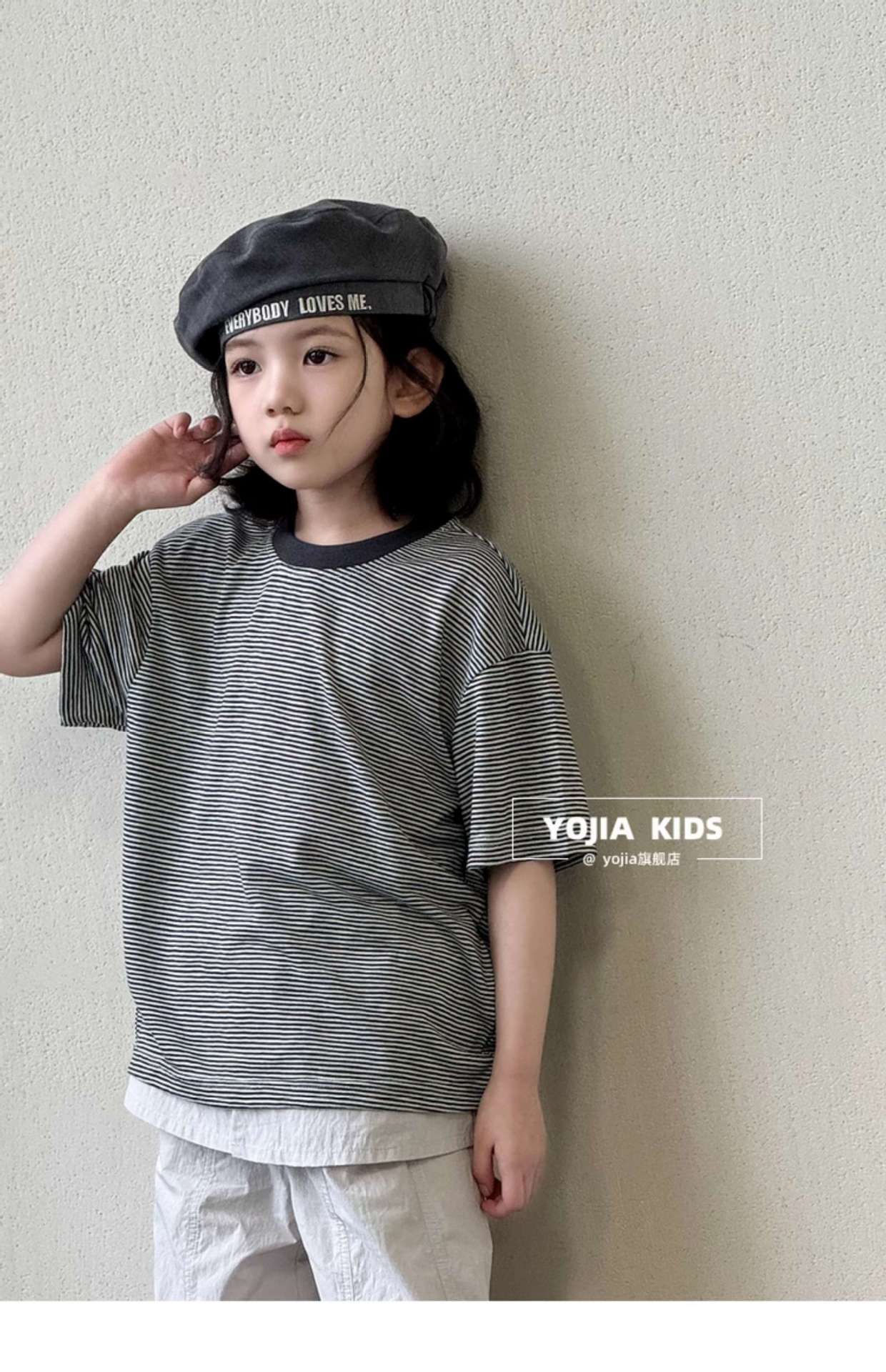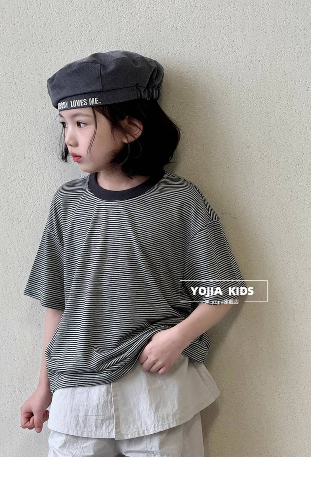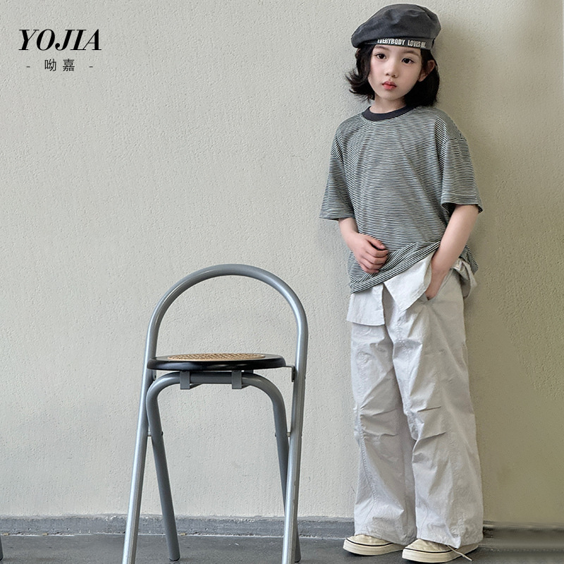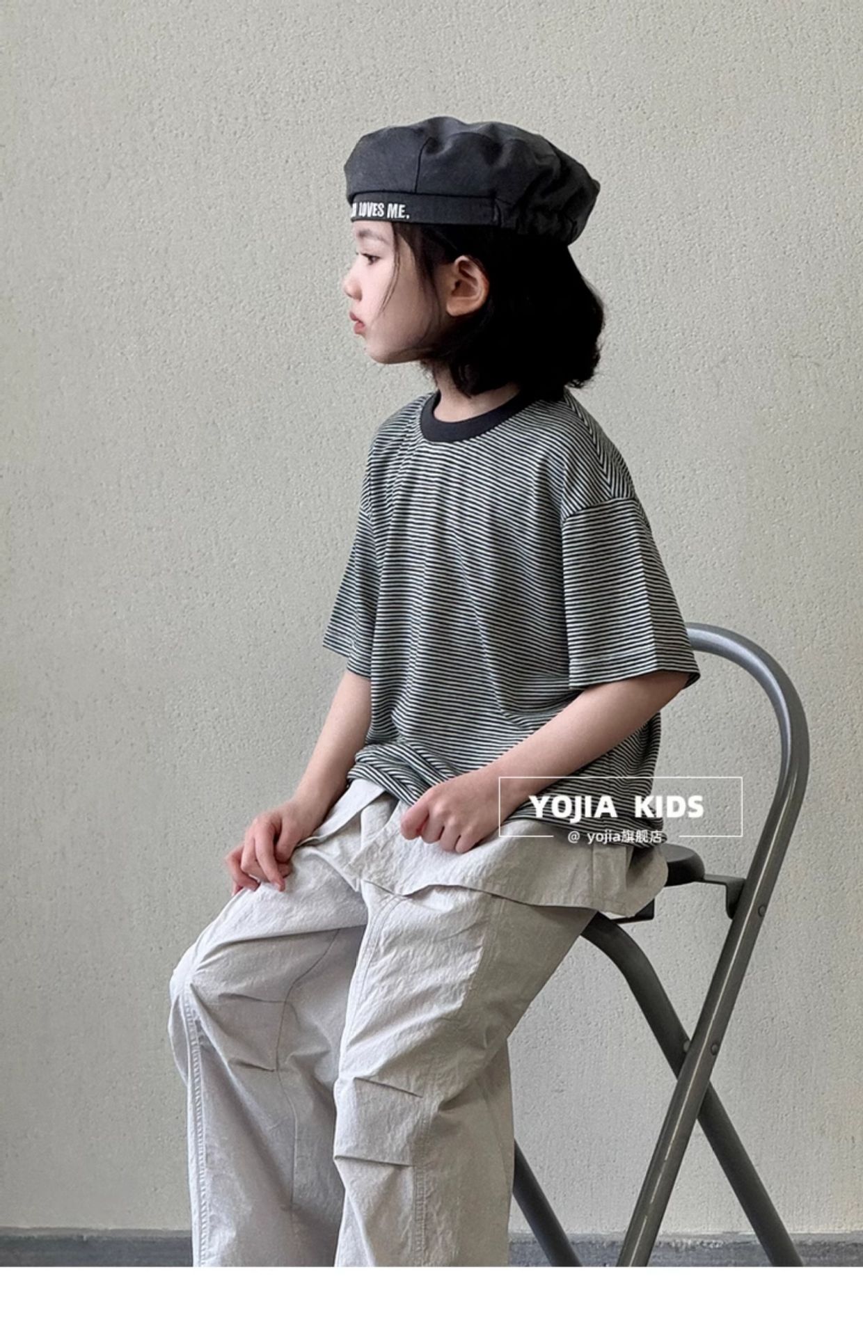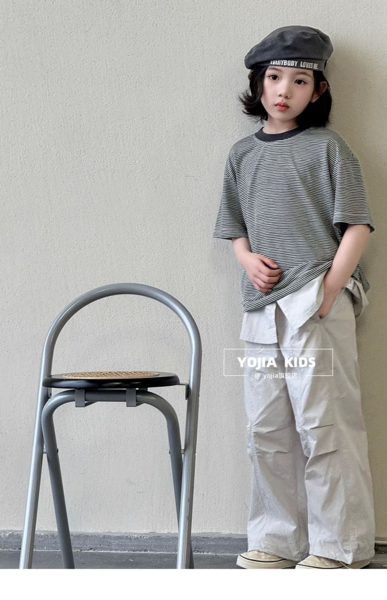 YOJIA Girls 반소매 여름 2025 새로운 한국식 Laid-back 아동복 줄무늬 반소매 어린이 티셔츠 여름스토어 가기