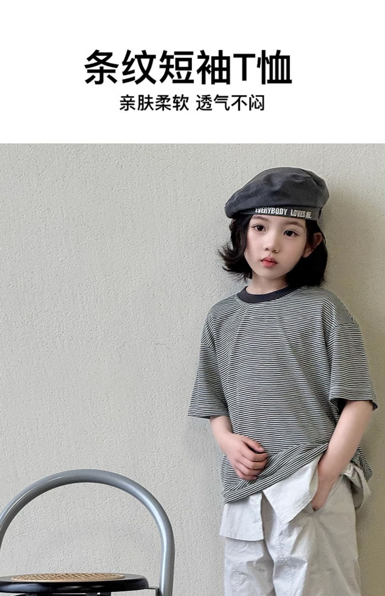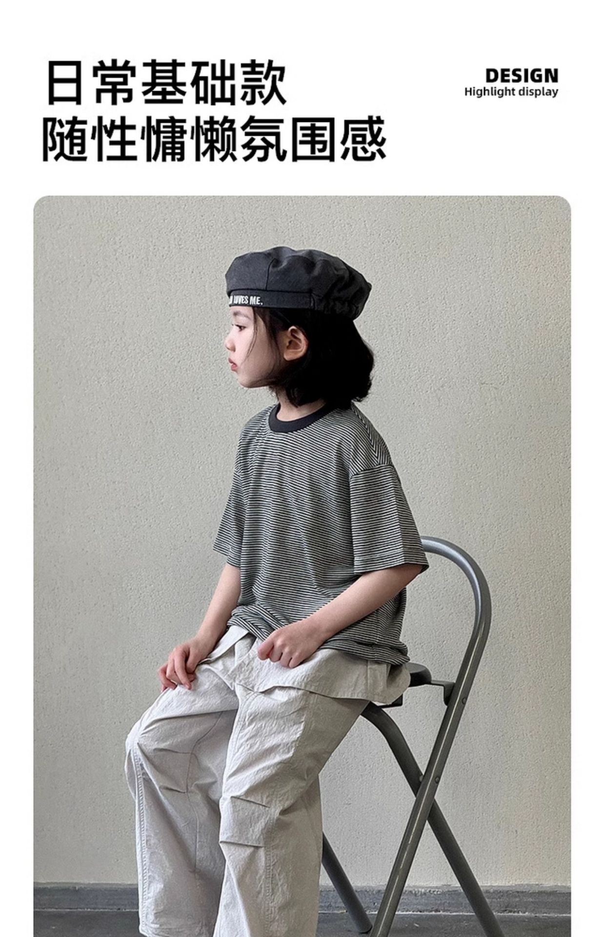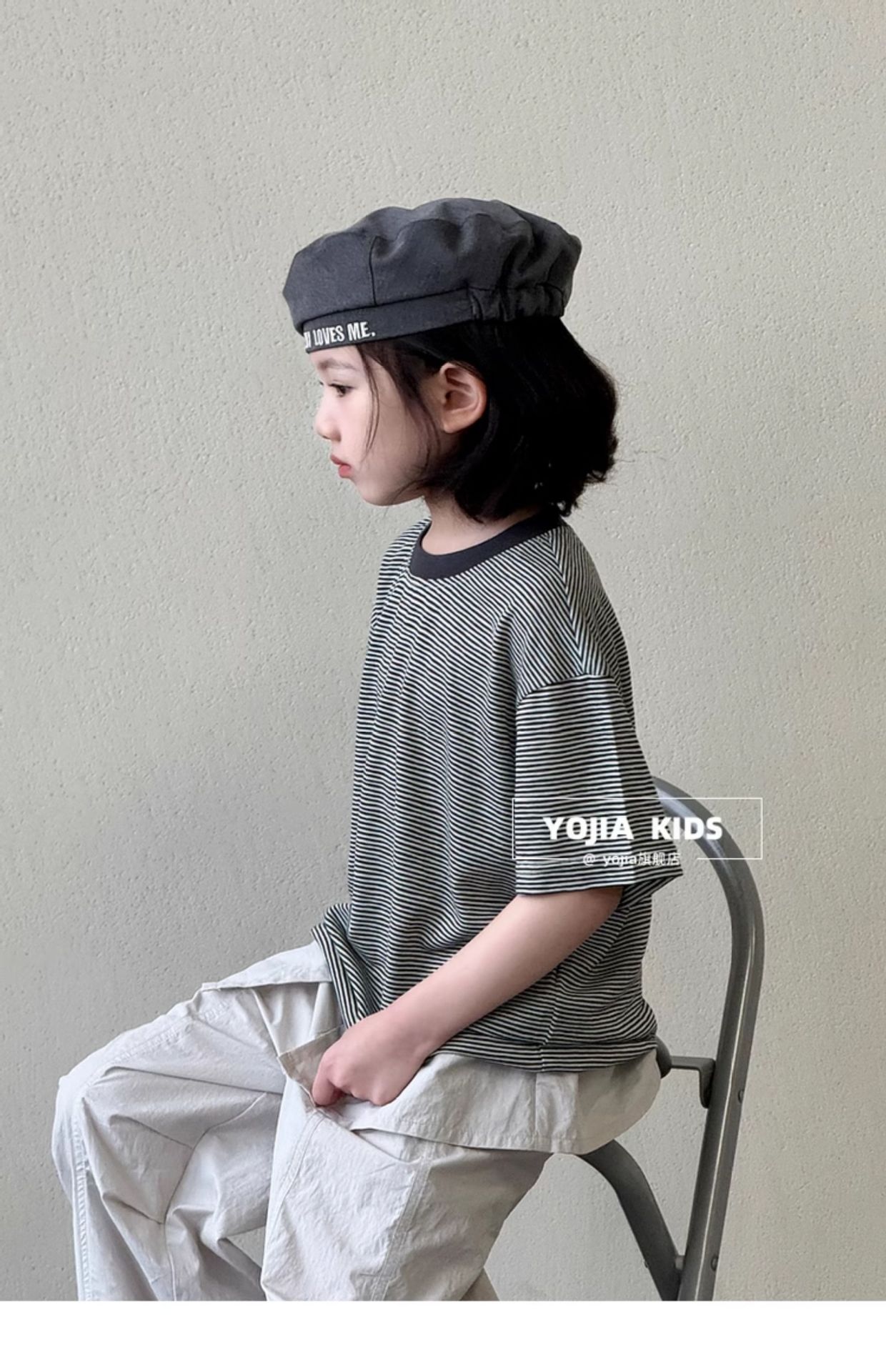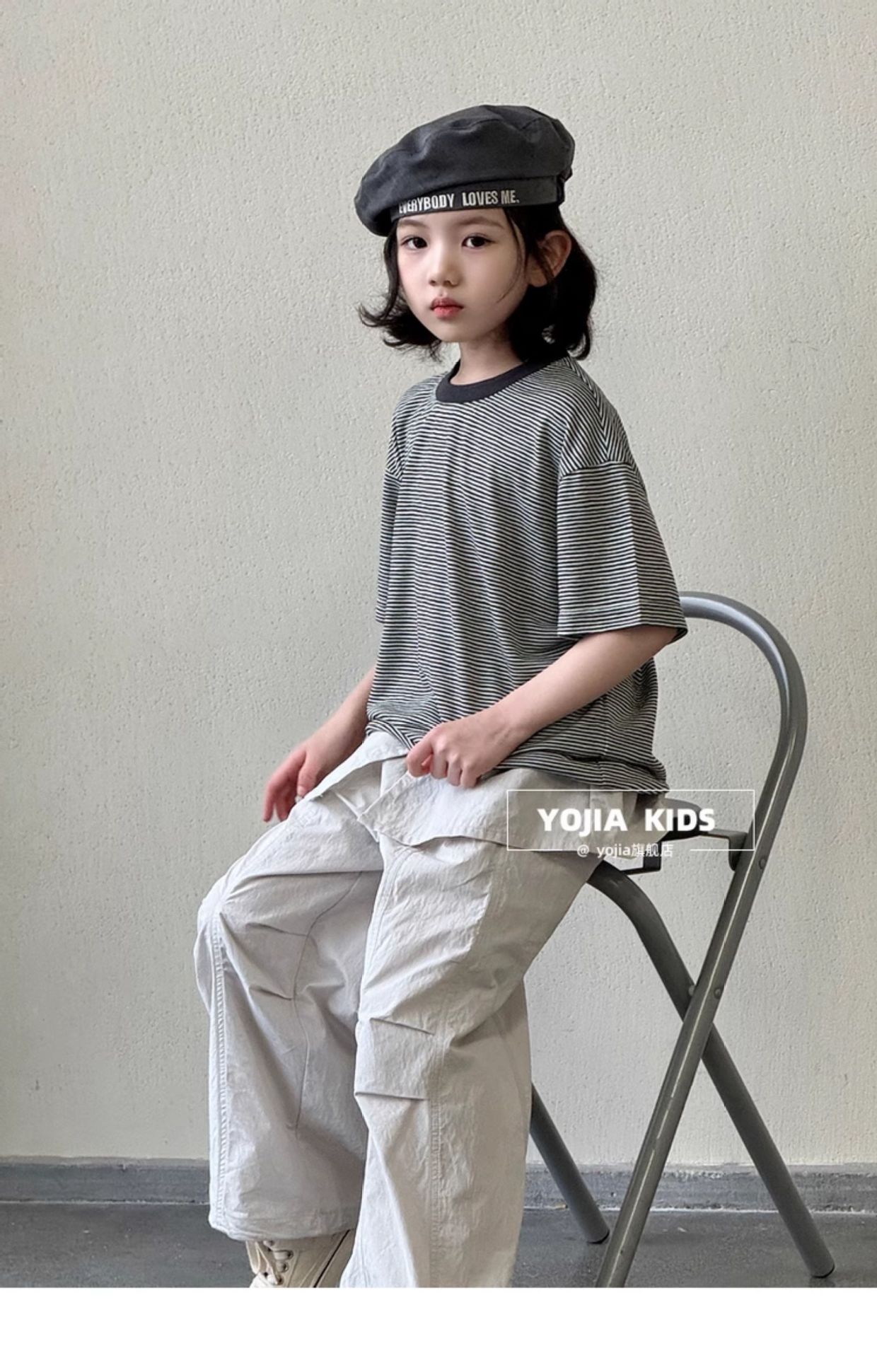 YOJIA Girls 반소매 여름 2025 새로운 한국식 Laid-back 아동복 줄무늬 반소매 어린이 티셔츠 여름스토어 가기