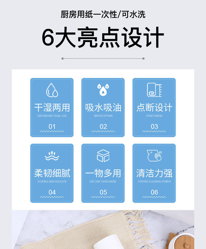 빨 수있는 게으른 행주 주방 습식 및 건식 이중 사용 청소로 종이 일회용 식기 세척 천으로 기름