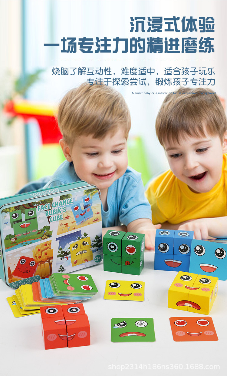 국경 간 아마존 어린이 얼굴 변화 표현 루빅스 큐브 재미 데스크탑 부모 게임 조기 교육 및 정보 빌딩 블록 장난감스토어 가기