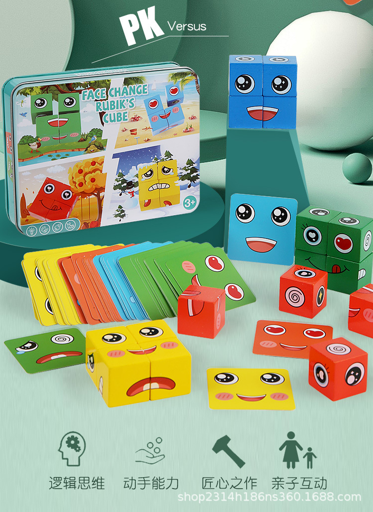 국경 간 아마존 어린이 얼굴 변화 표현 루빅스 큐브 재미 데스크탑 부모 게임 조기 교육 및 정보 빌딩 블록 장난감