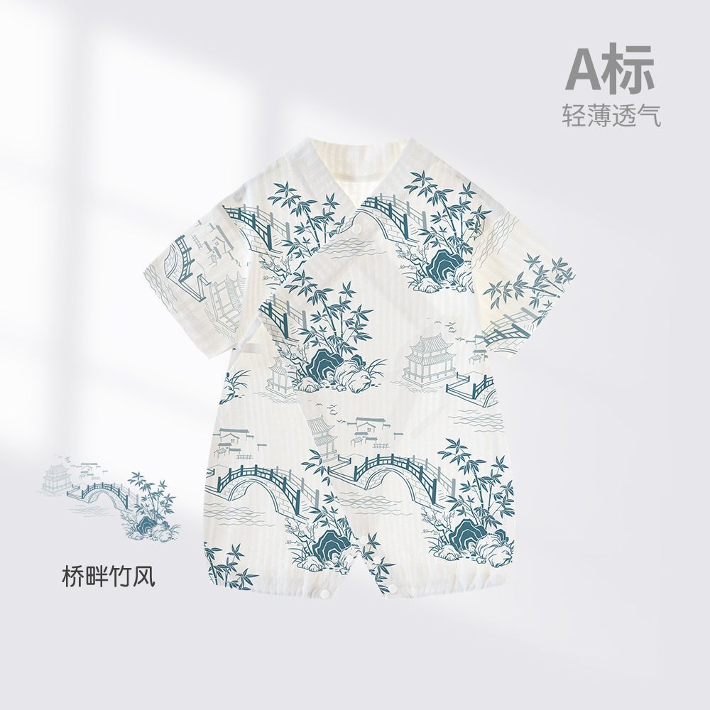 아기 점프 수트 여름 새로운 중국 스타일 국가 스타일 신생아 스님 옷 소년 소녀 아기 하 옷 얇은 통기성 옷스토어 가기