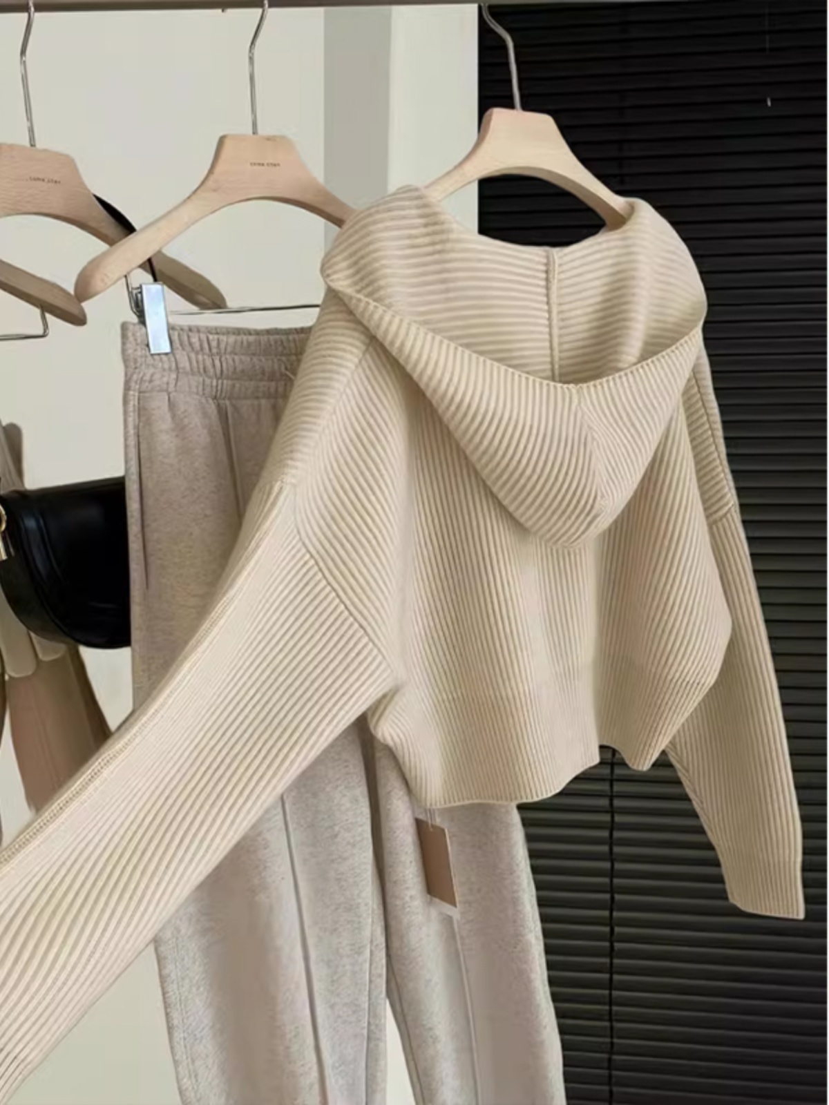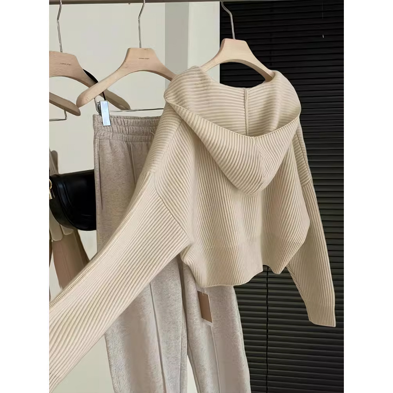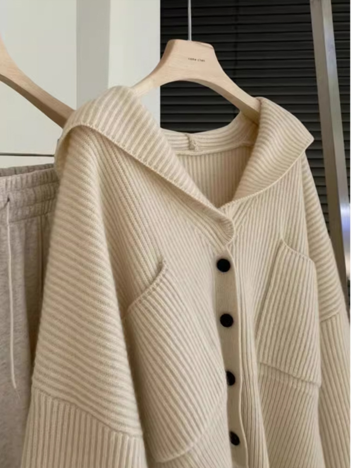 이른 가을 착용 게으른 스타일 우유 부드러운 왁스 후드 스웨터 카디건 코트 여성의 봄과 가을 외부 니트 탑