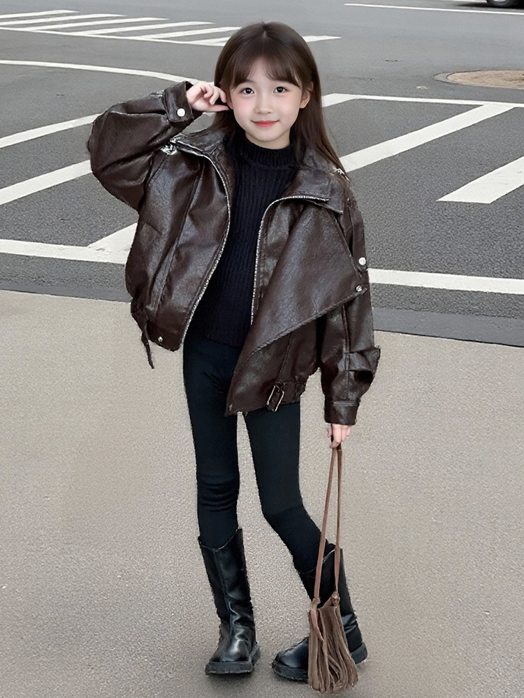 여아 가을 가죽 자켓 2025 신상 중대형 어린이 PU 가죽 재킷 소녀 패션 레트로 상의