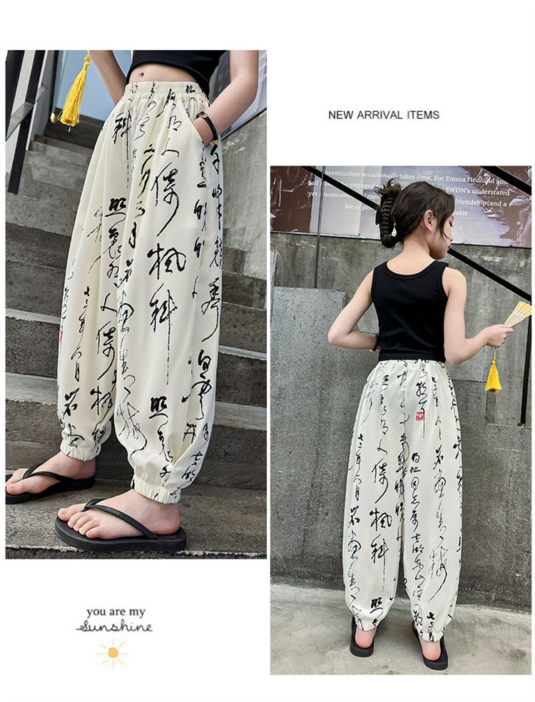 소녀 바지 2025 여름 새 어린이 모기 방지 바지 소녀 얇은 아이스 실크 바지 소녀 빠른 건조 스포츠 바지스토어 가기