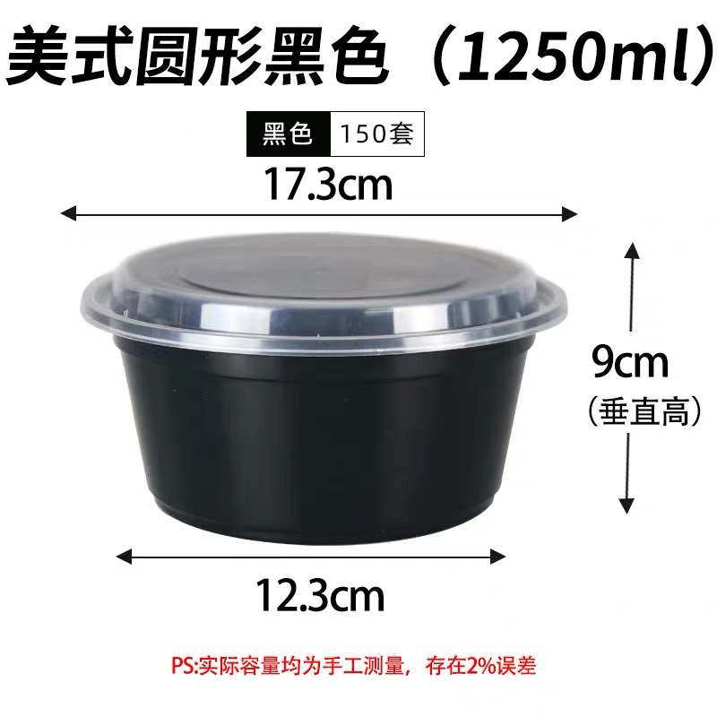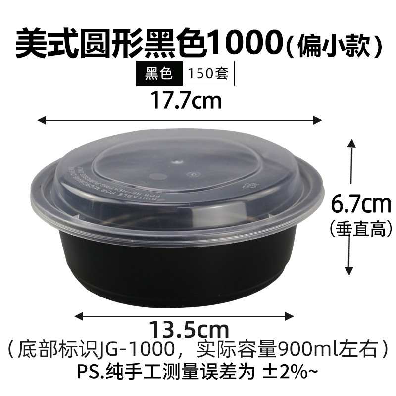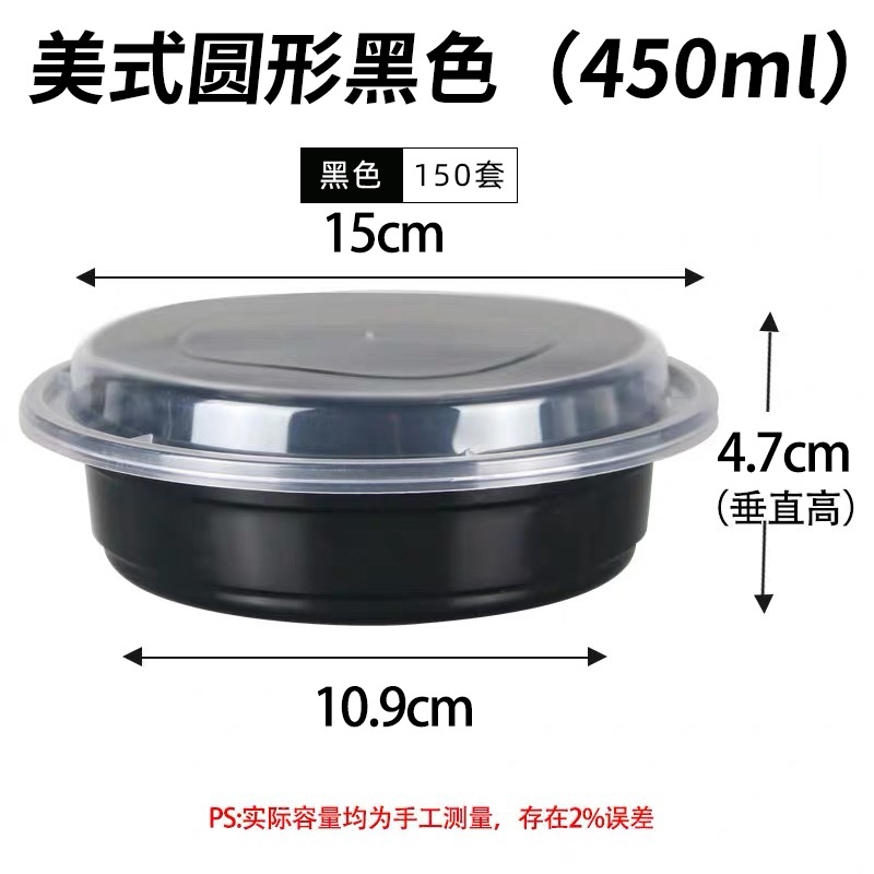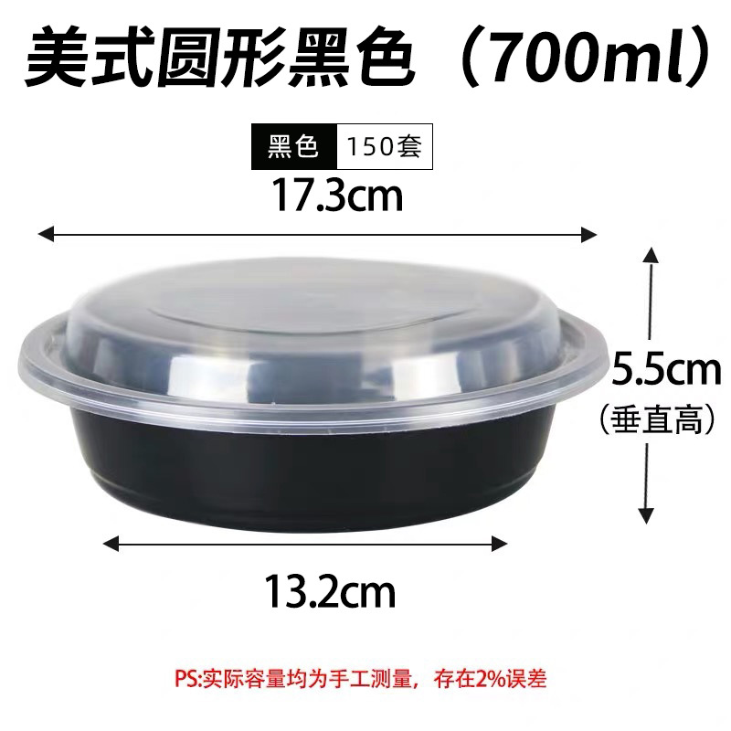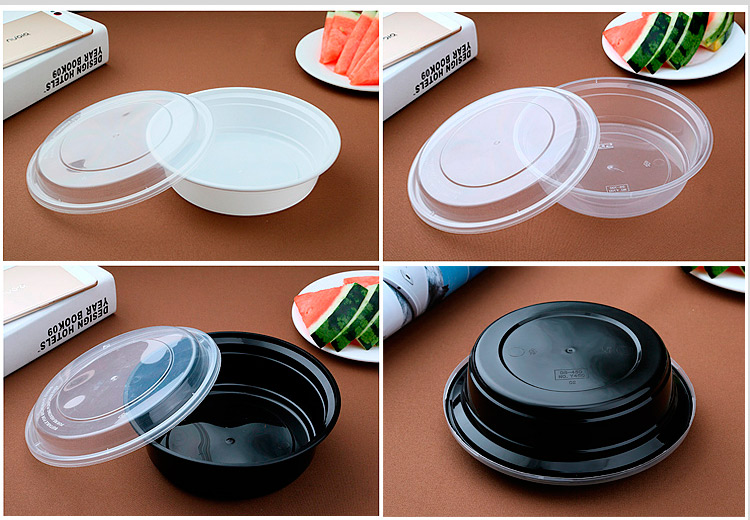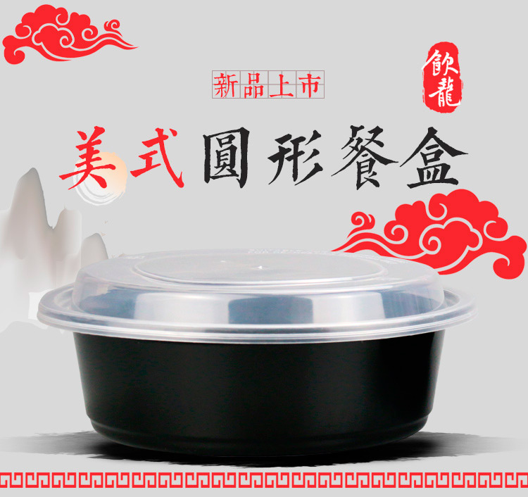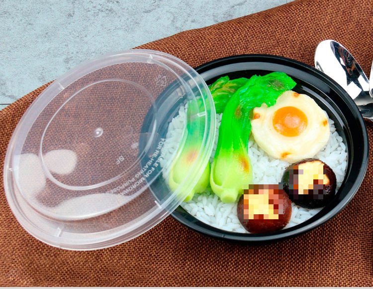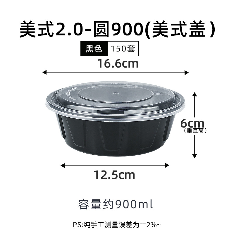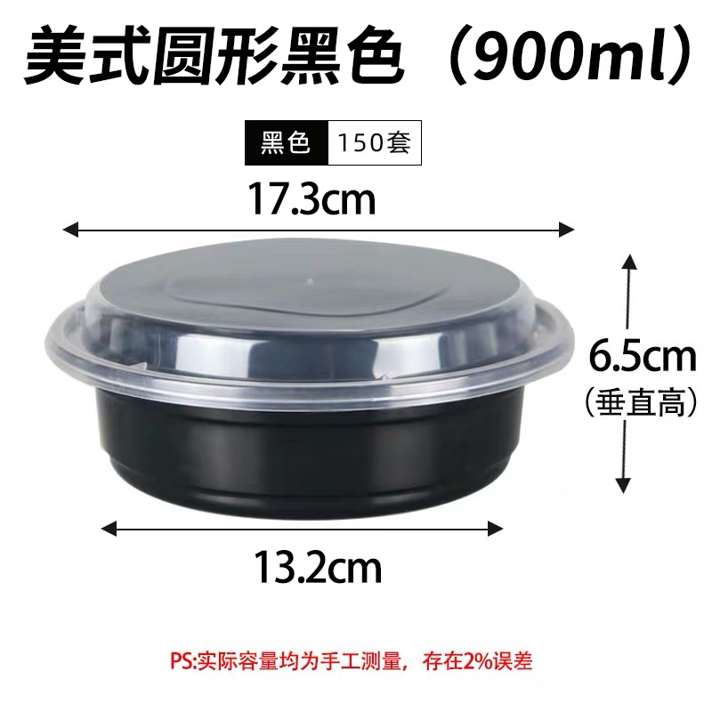 VHM7 음료 용 900ml 미국 라운드 일회용 도시락, 뚜껑 블랙 패키지 테이크 아웃 도시락 도시락