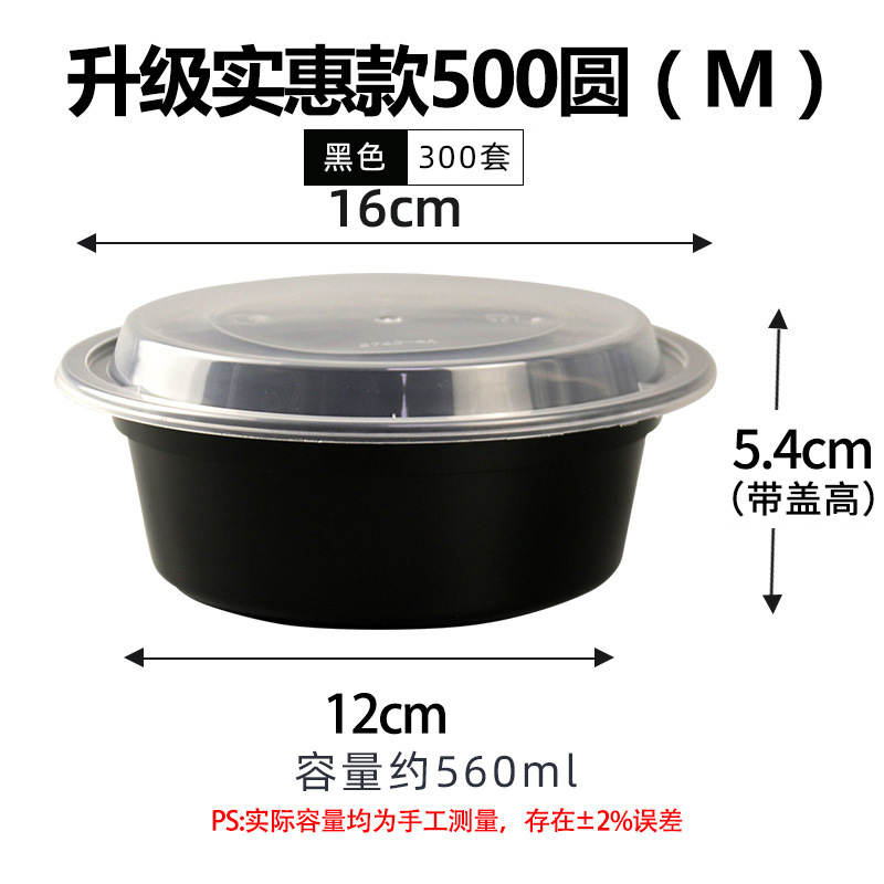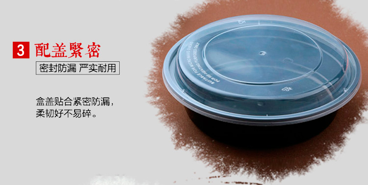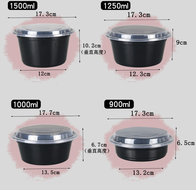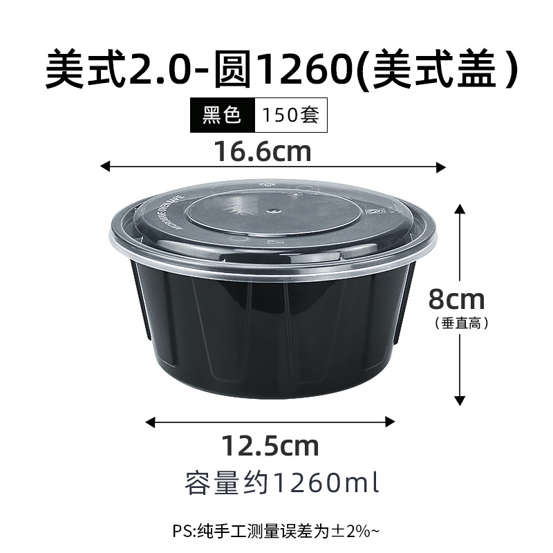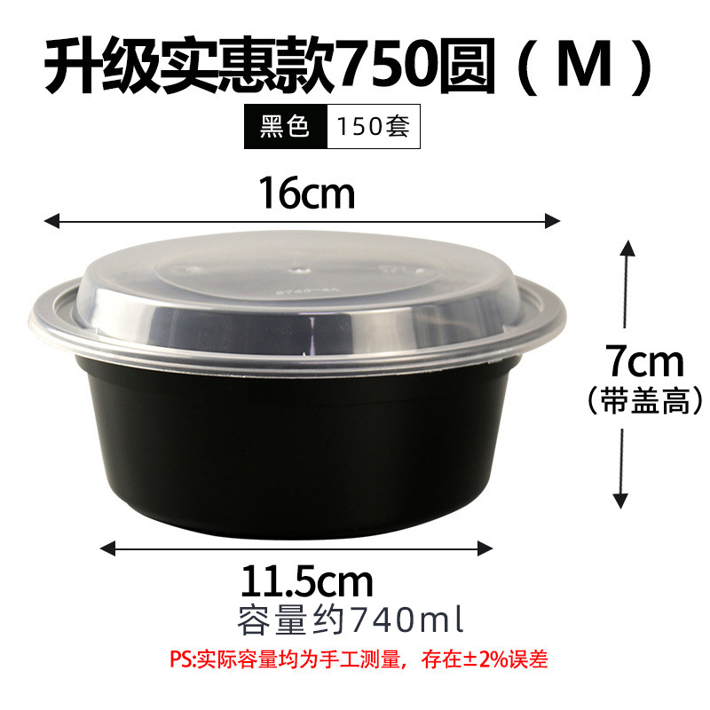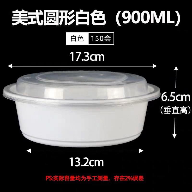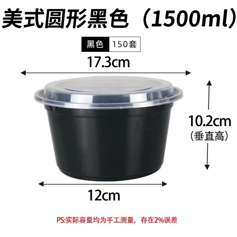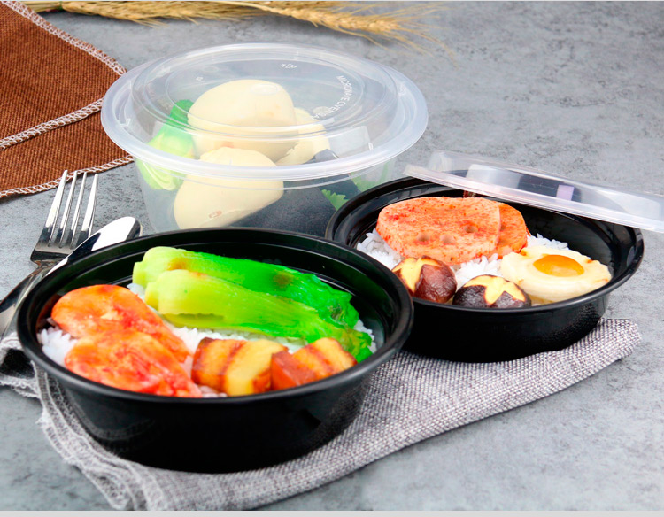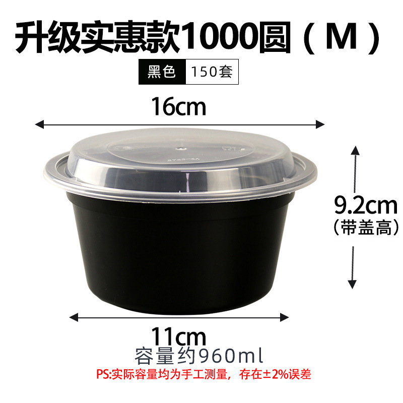 VHM7 음료 용 900ml 미국 라운드 일회용 도시락, 뚜껑 블랙 패키지 테이크 아웃 도시락 도시락