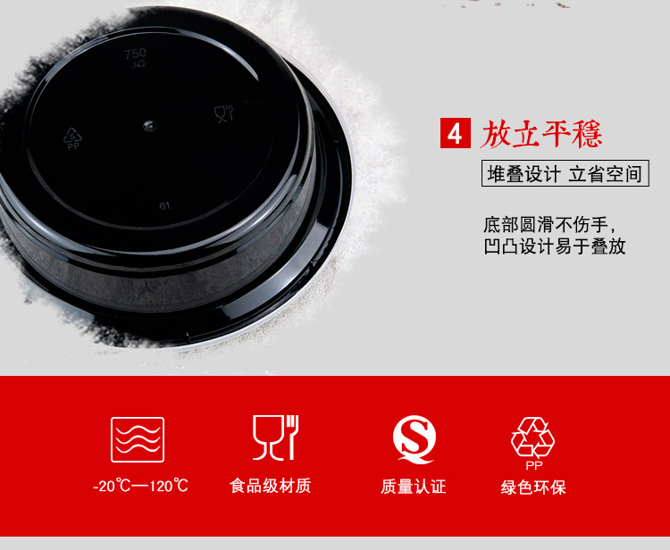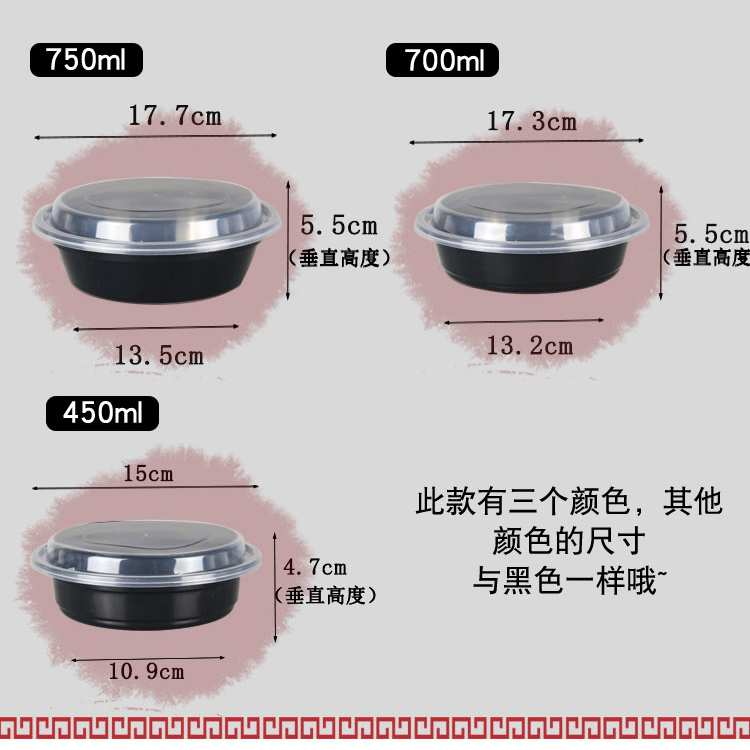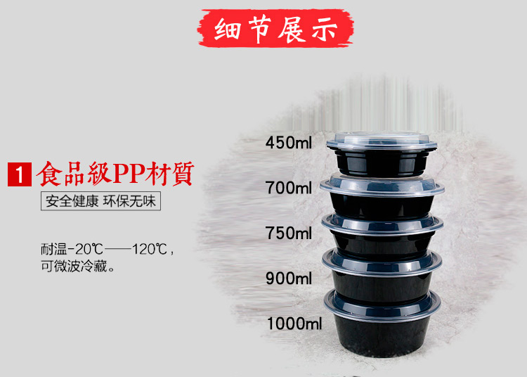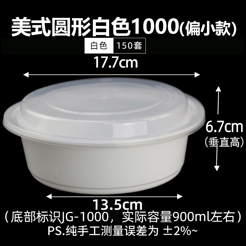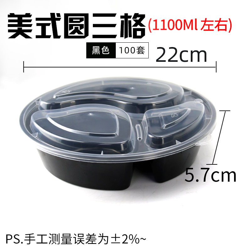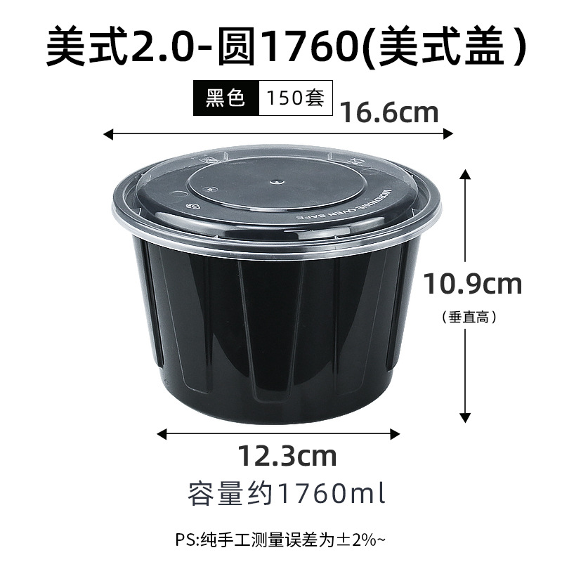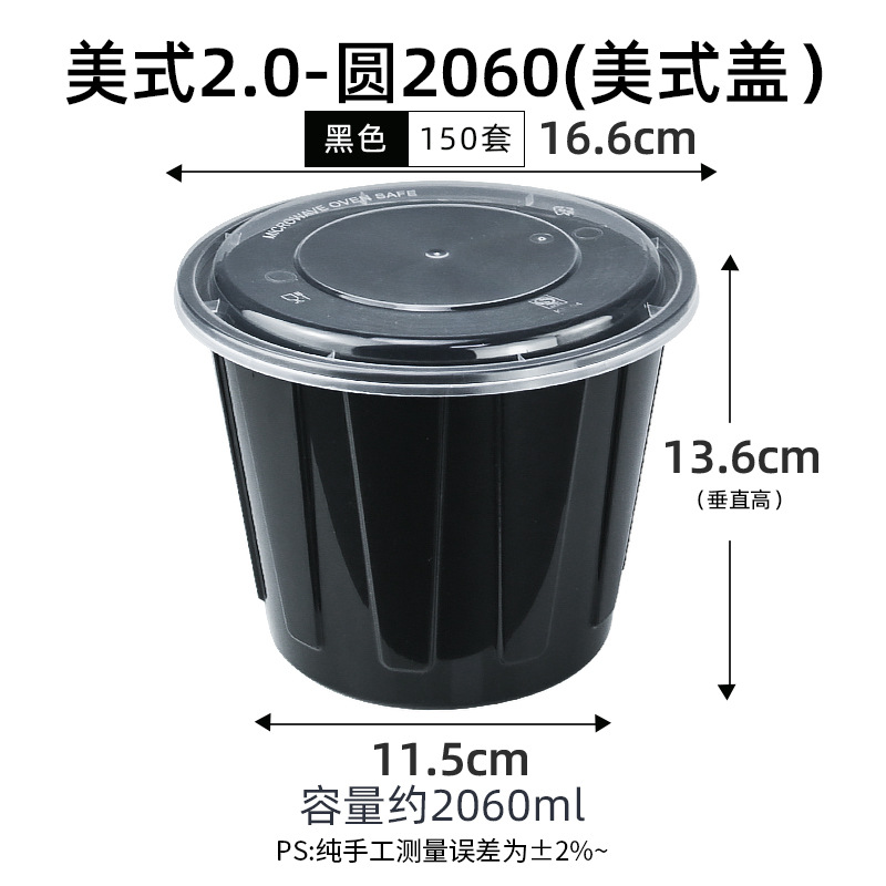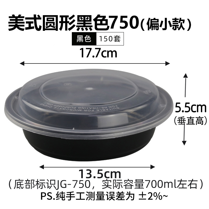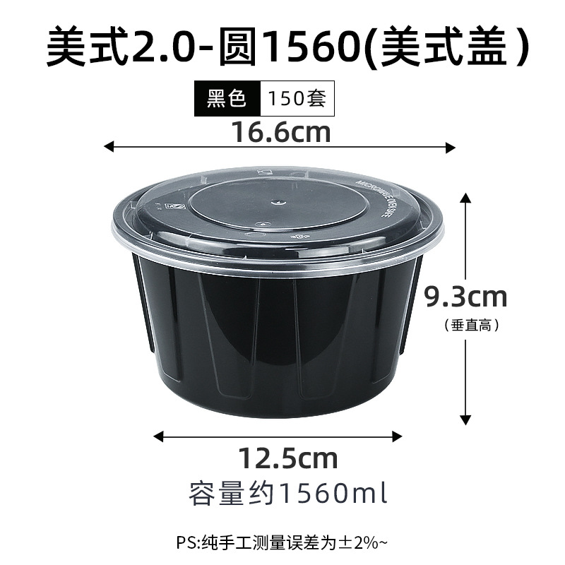 VHM7 음료 용 900ml 미국 라운드 일회용 도시락, 뚜껑 블랙 패키지 테이크 아웃 도시락 도시락