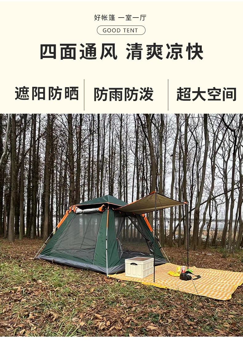 야외 텐트 캠핑 두꺼운 비방 자동 빠른 열기 휴대용 해변 피크닉 선 스크린 장비 곤충 방지