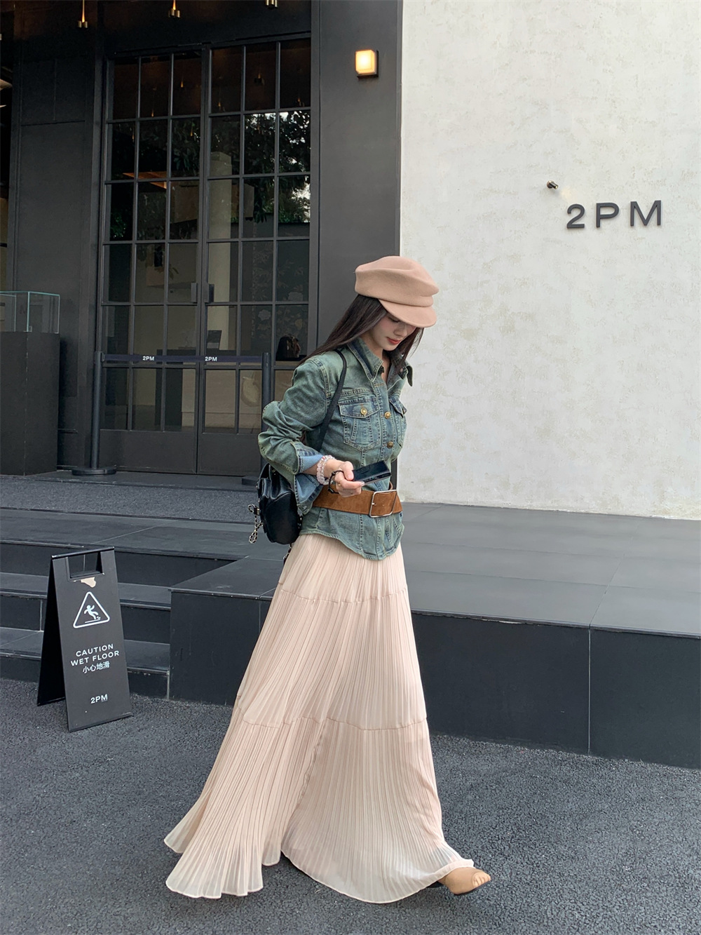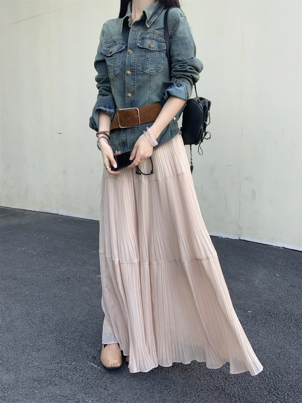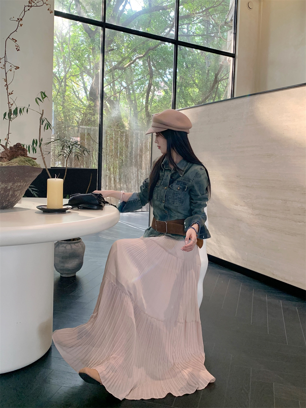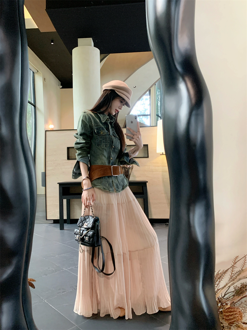 홍콩 스타일 레트로 블루 데님 코트 여성의 봄 2025 새로운 디자인 감각 작은 어깨 허리 슬림 탑