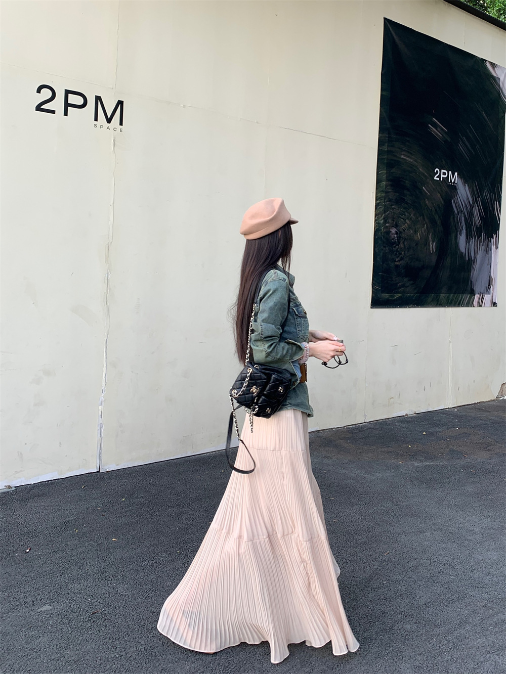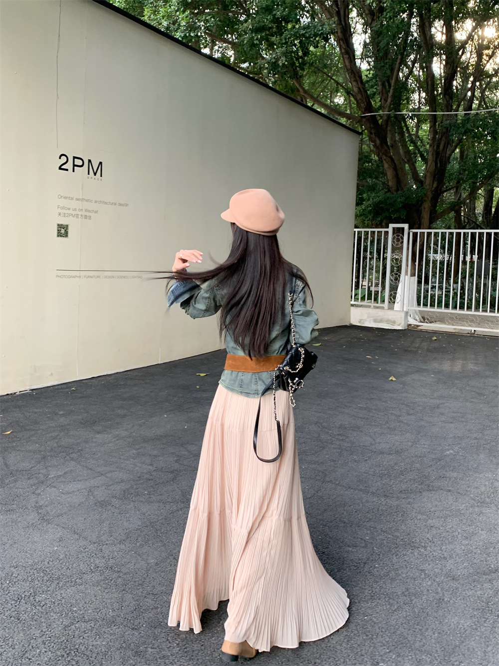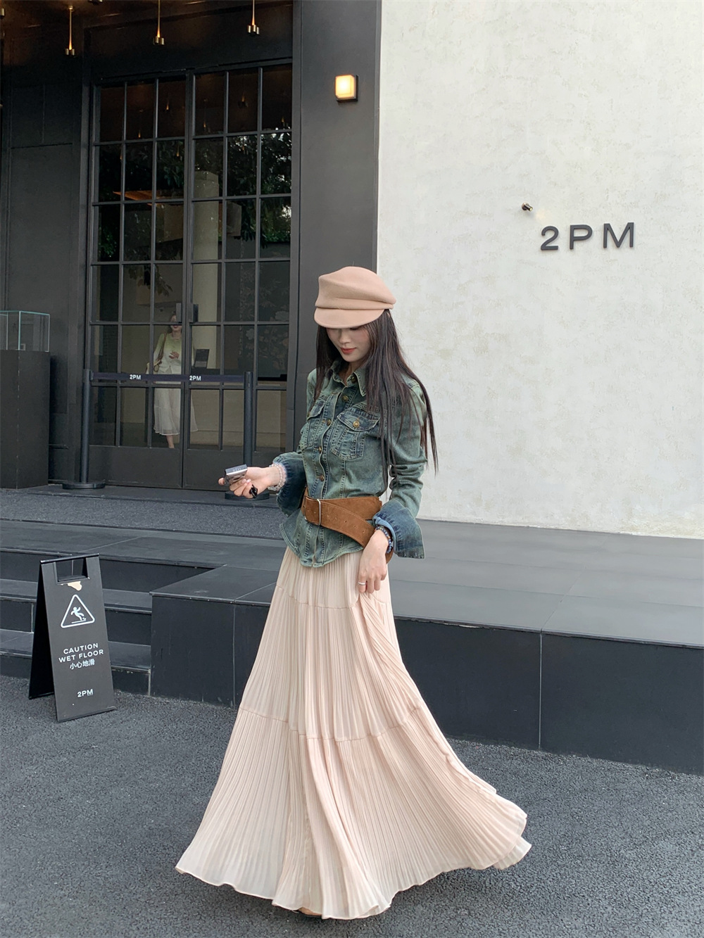 홍콩 스타일 레트로 블루 데님 코트 여성의 봄 2025 새로운 디자인 감각 작은 어깨 허리 슬림 탑스토어 가기