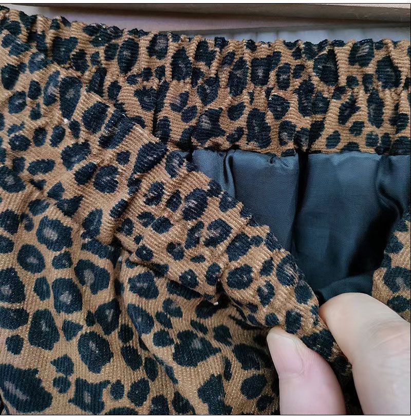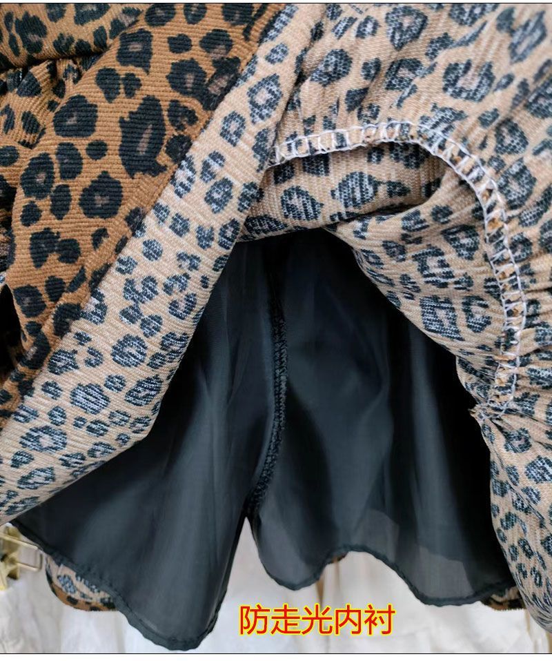 • 브라운 배 커버, 다리가 더 길어보이고 살찐 mm 레오파드 프린트 스커트, 안전바지 포함