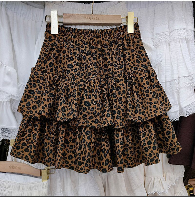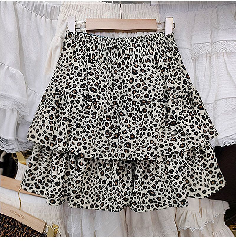 레오파드 무늬 짧은 치마 봄과 여름 새로운 도착 2025 봄과 여름 치마 작은 높은 허리 주름 치마 짧은 퍼프 케이크스토어 가기