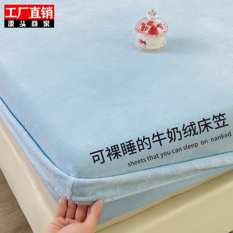우유 벨벳 매트리스 3 조각 세트 겨울 두꺼운 따뜻한 산호 벨벳 전체 커버 매트리스 먼지 커버 보호 커버 침대 시트스토어 가기