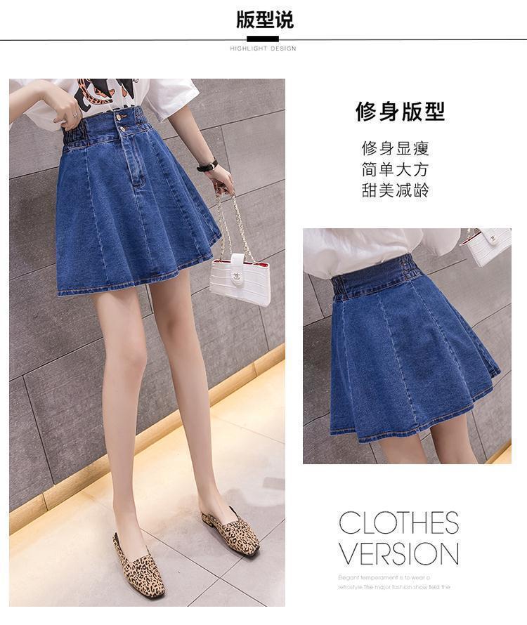 한국 버전의 탄성 허리 데님 스커트 푹신한 스커트 여성 2025 년 여름 새로운 하이 허리 A 라인 스커트 우산 스커트스토어 가기