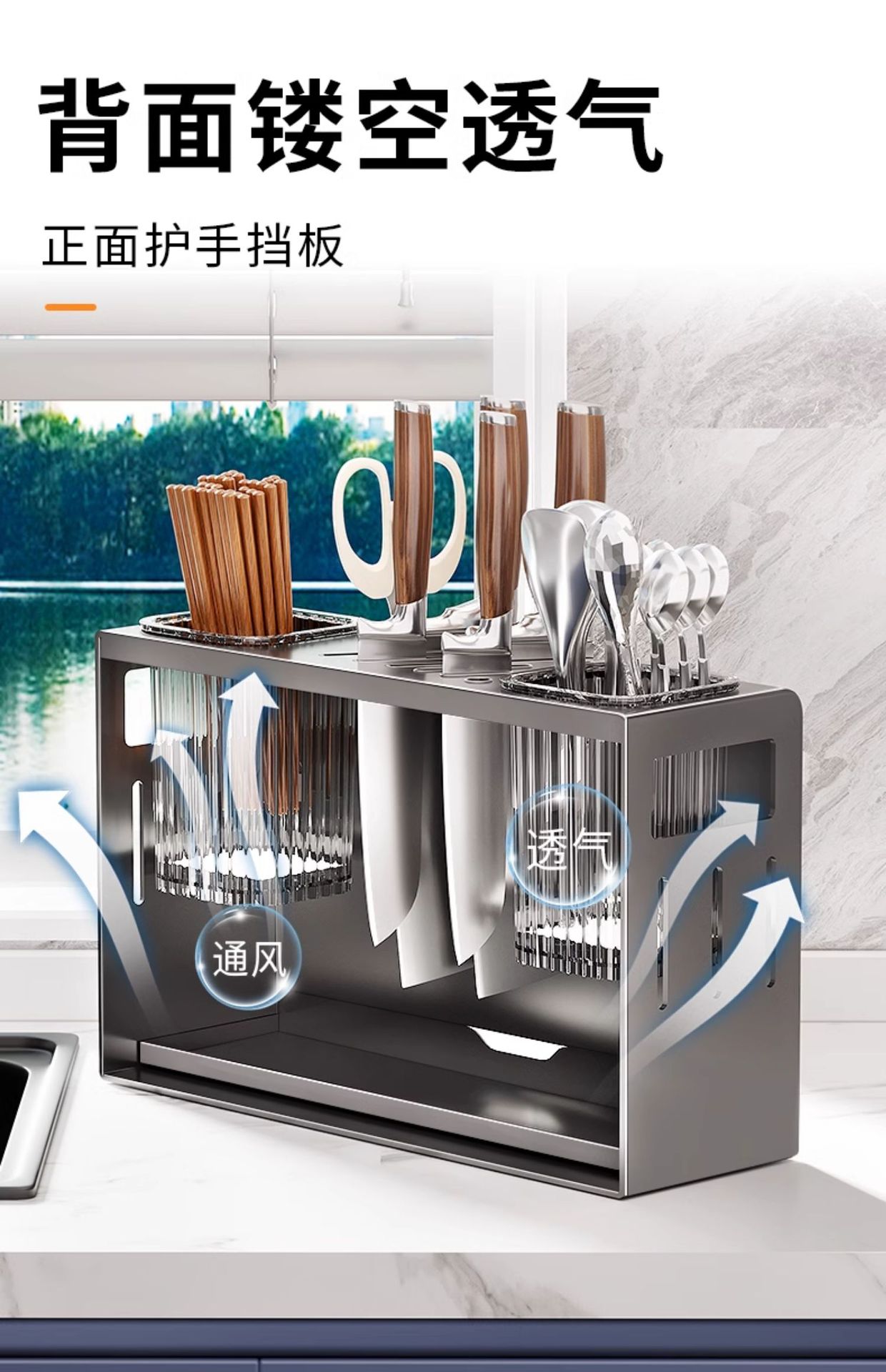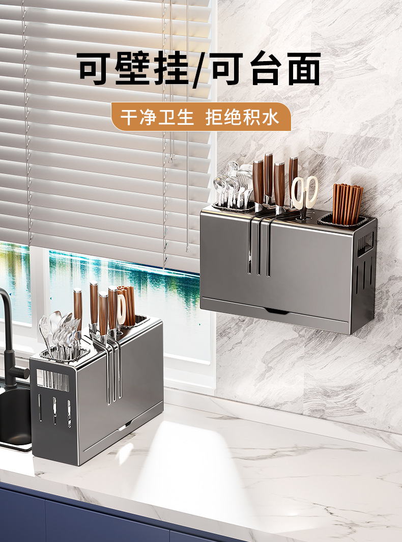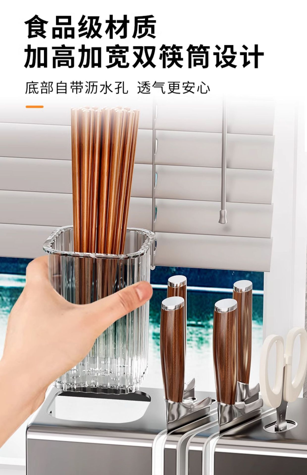 새로운 부엌 칼 홀더 다기능 조리대 벽에 장착 된 야채 나이프와 젓가락 케이지 통합 저장 상자 랙