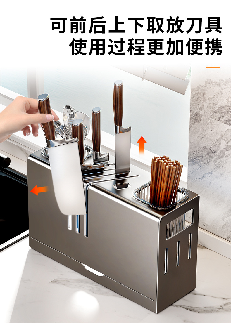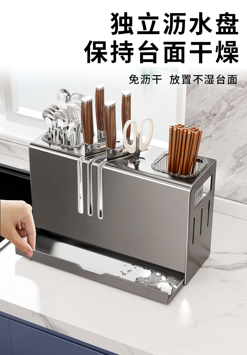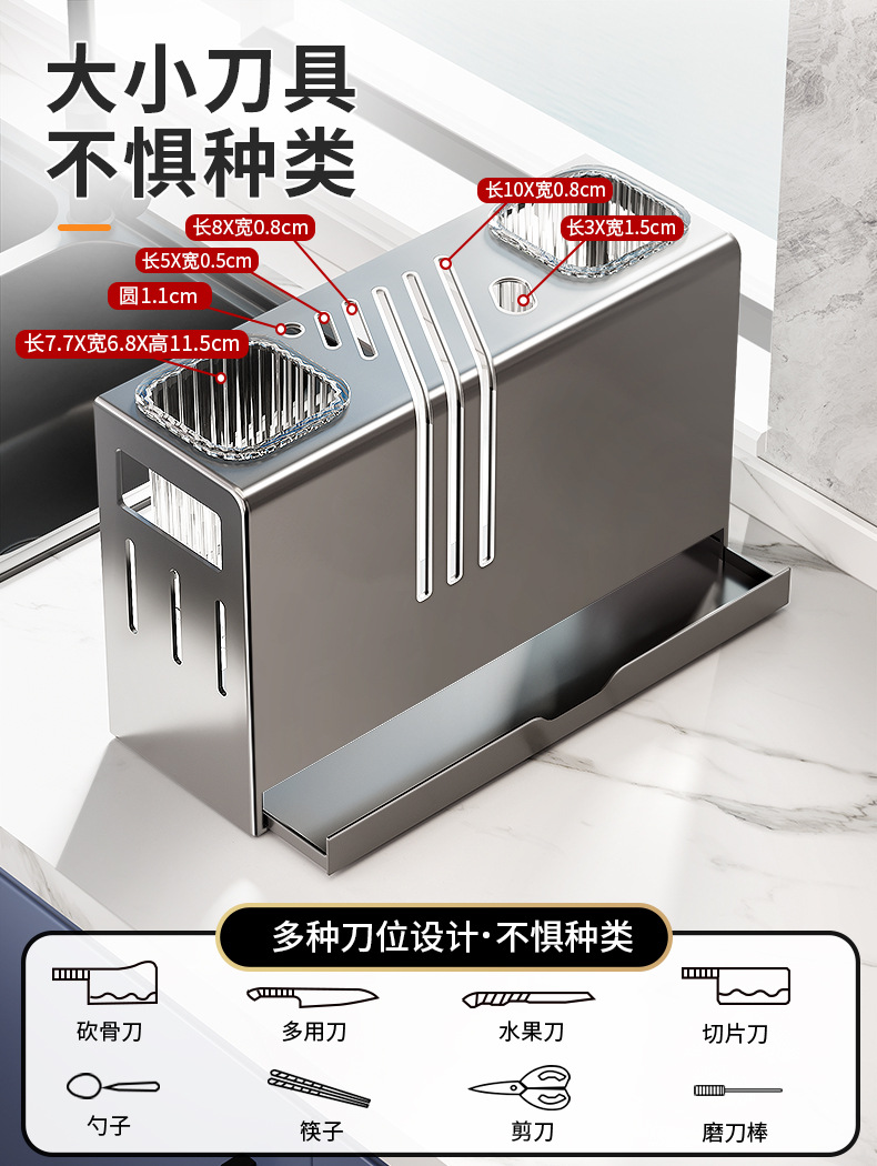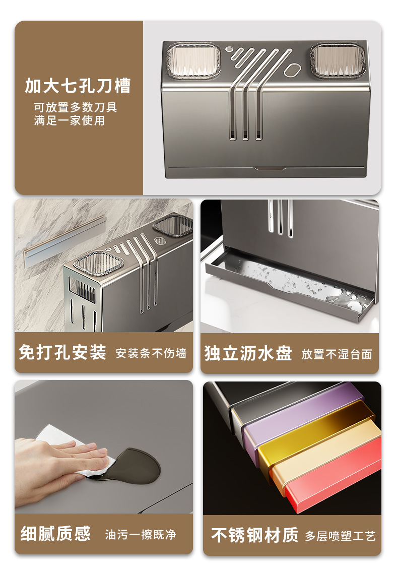 새로운 부엌 칼 홀더 다기능 조리대 벽에 장착 된 야채 나이프와 젓가락 케이지 통합 저장 상자 랙