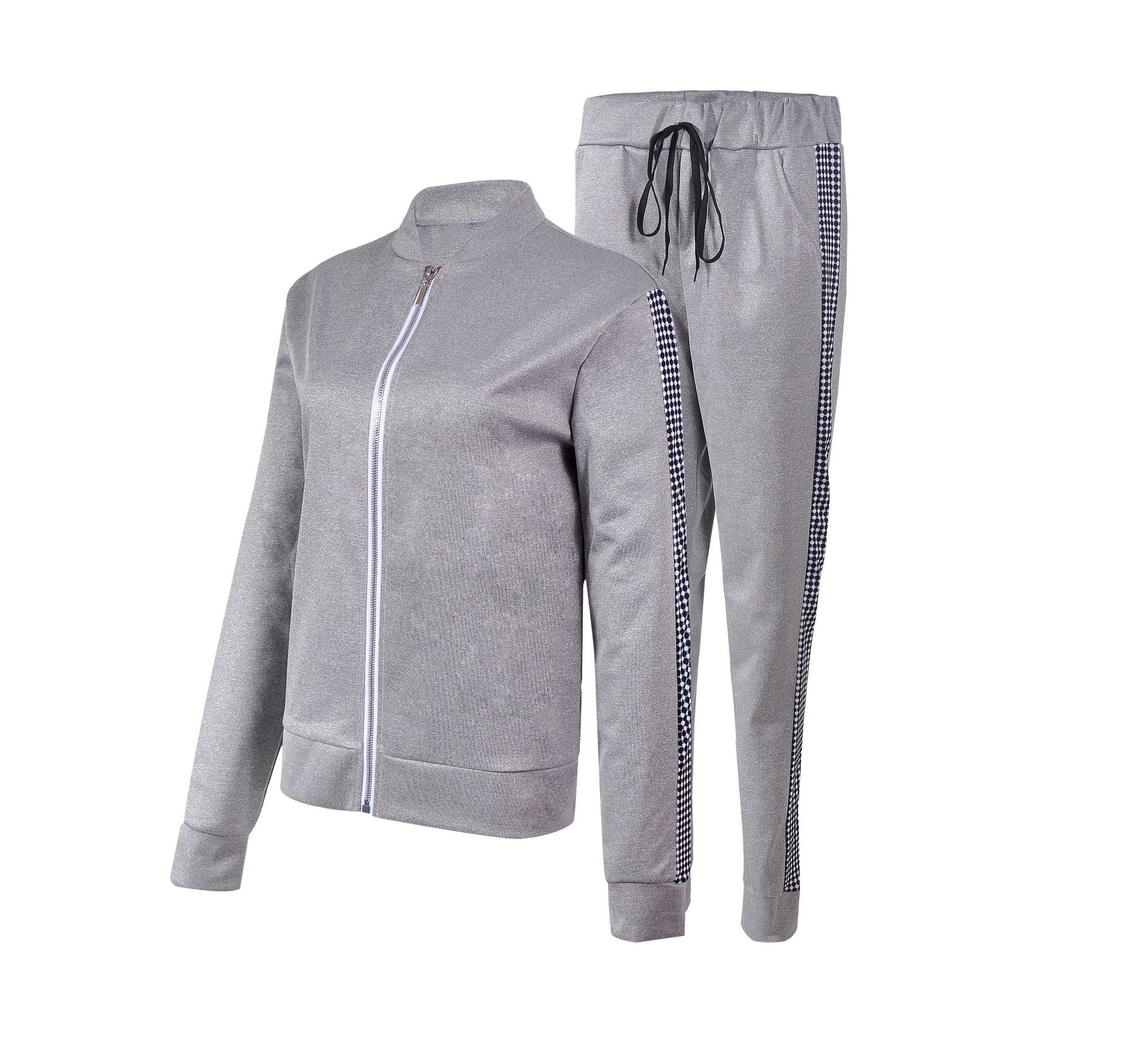 패셔너블한 체크무늬 스포츠 슈트는 편안하고 착용하기 쉽고, 캐주얼하고 다재다능하며, 학생과 직장인 모두 일상의 외출에 적합합니다.스토어 가기