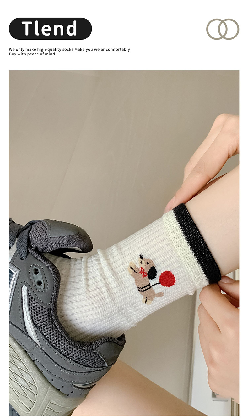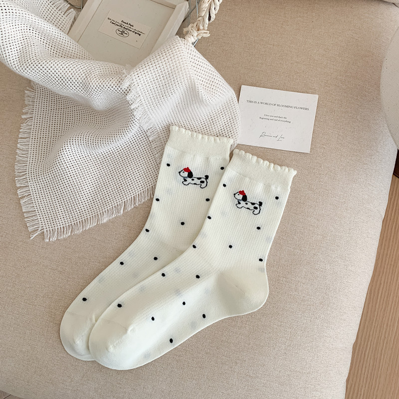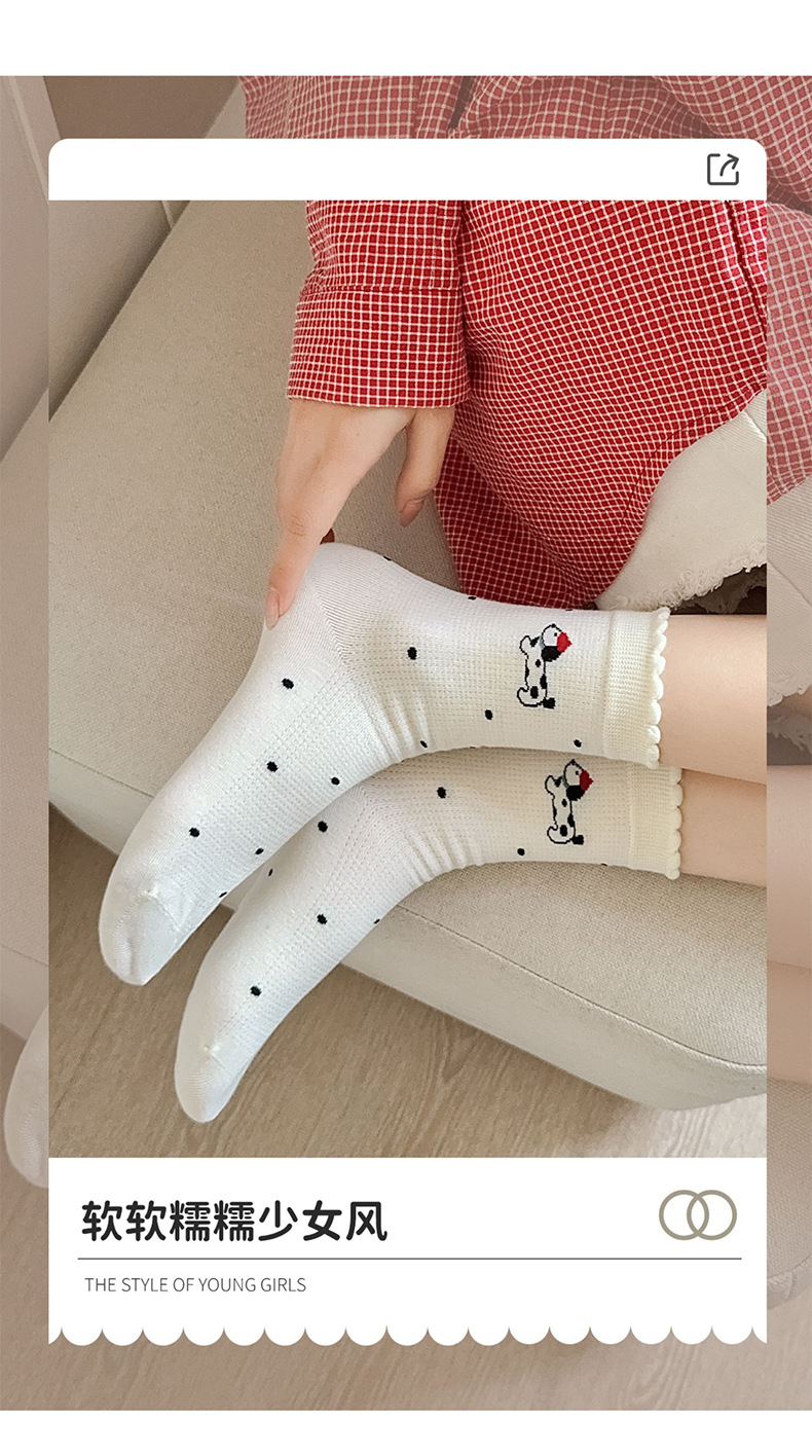 강아지 양말 여성의 봄과 가을 순면 얇은 중간 실린더 Ins 유행 통기성 귀여운 레이스 버블 입 여름 스택 양말