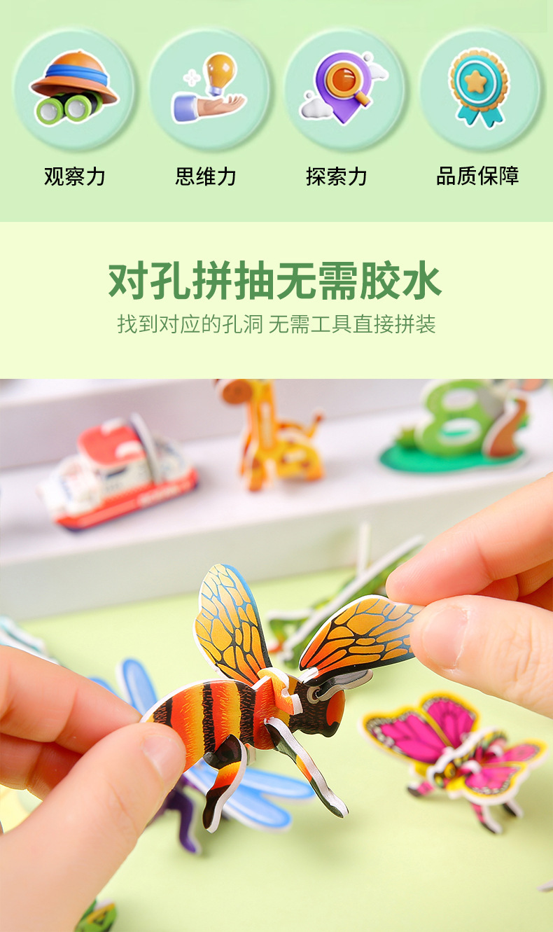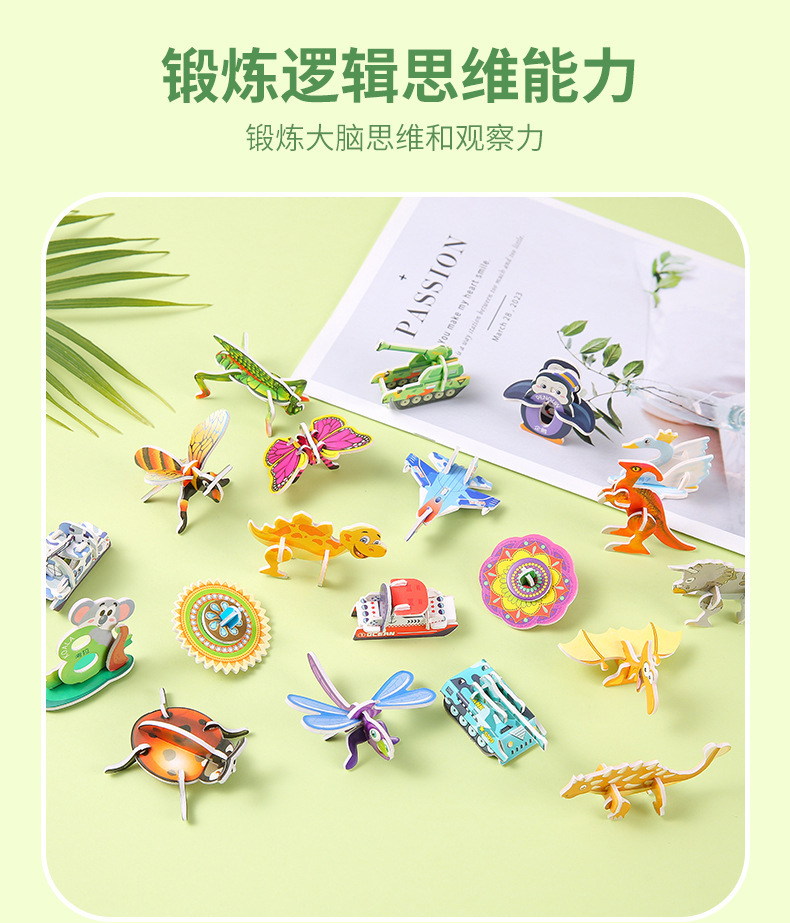3D 재미있는 곤충 스테레오 퍼즐 어린이 창조적 인 DIY 공룡 조립 장난감 유치원 퍼즐 조기 교육 퍼즐스토어 가기