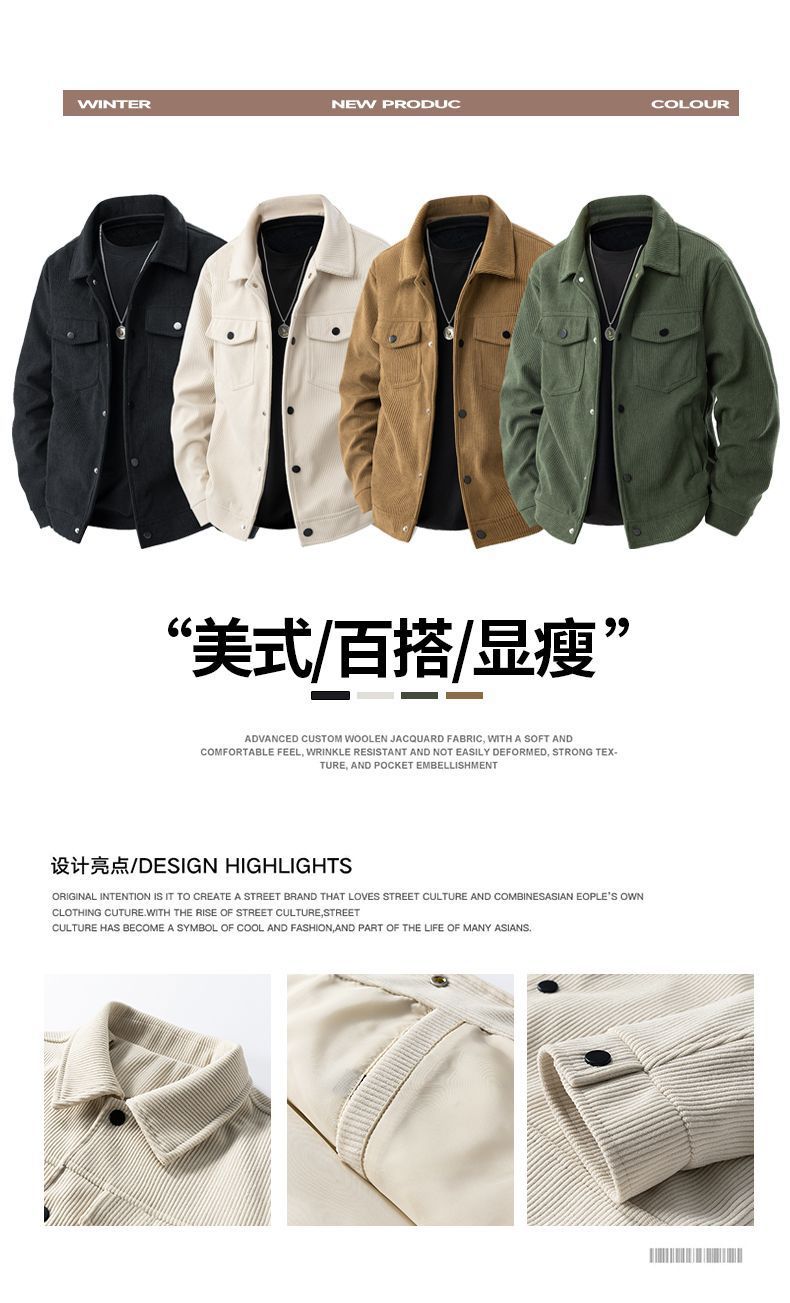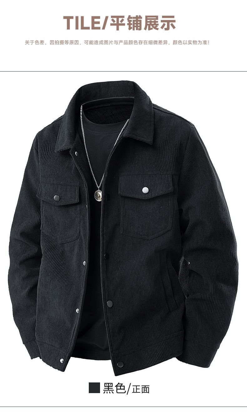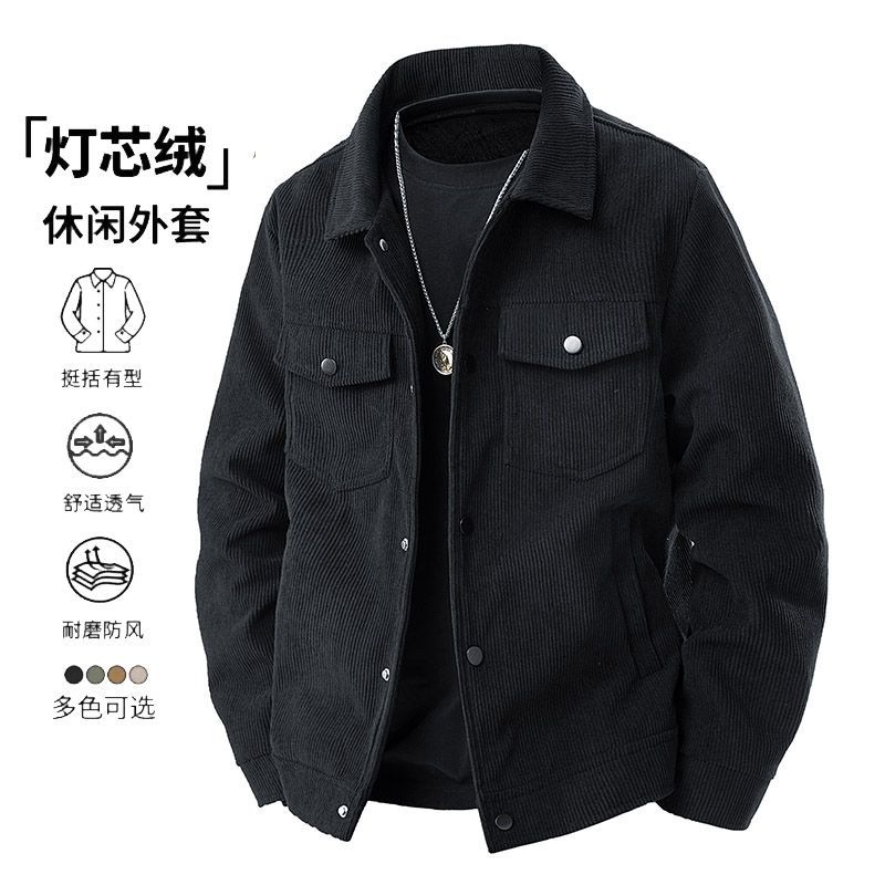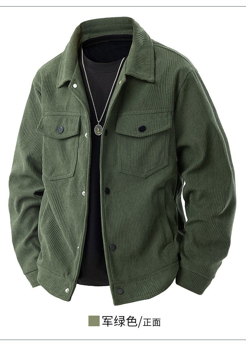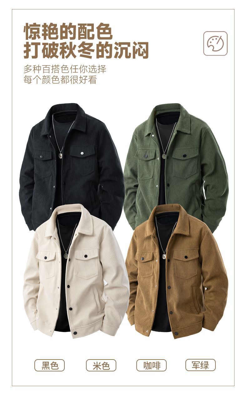 코듀로이 재킷 남자 봄과 가을 캐주얼 옷깃 피부 친화적 인 루즈 패셔너블 올 매치 캐주얼 재킷 남자 탑스토어 가기