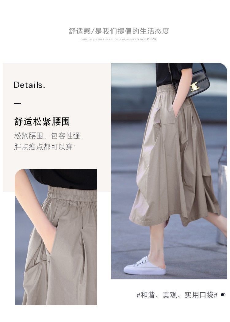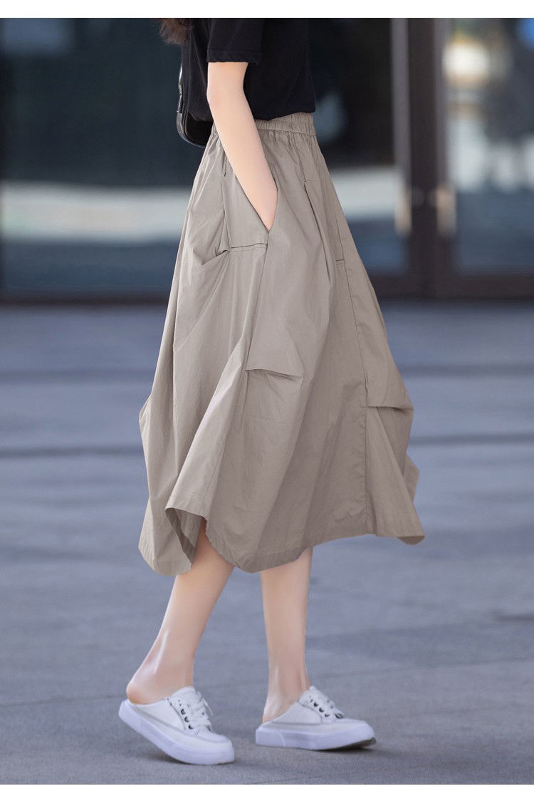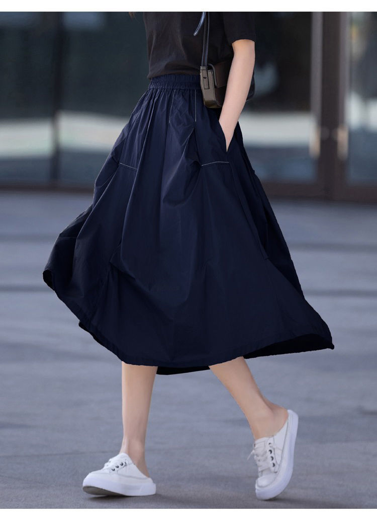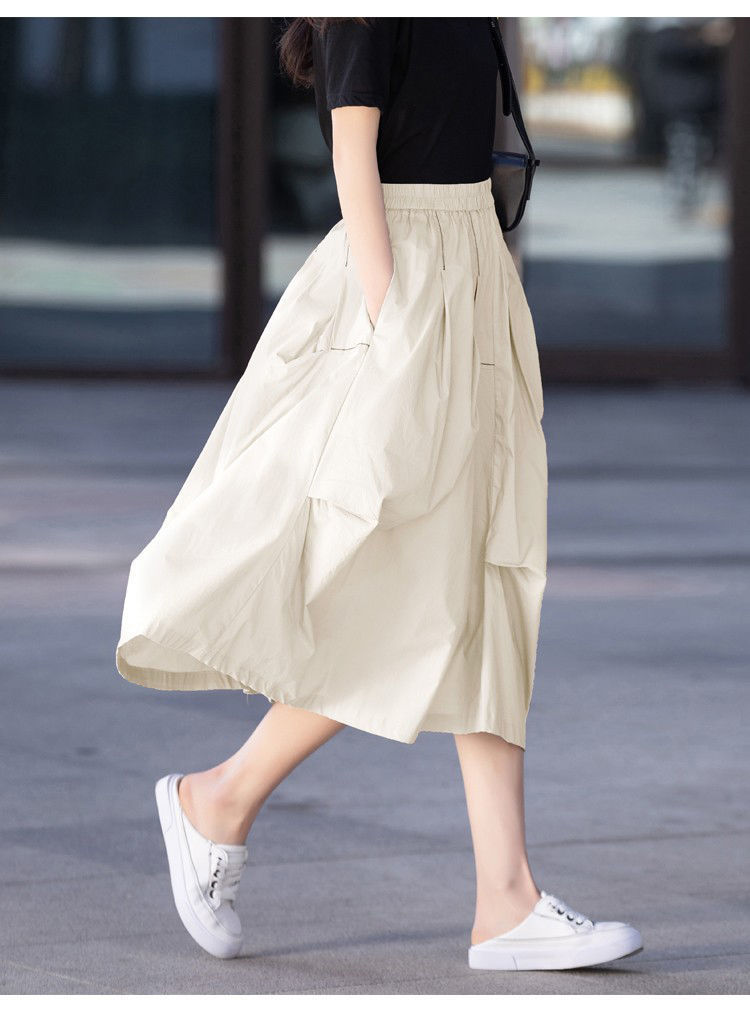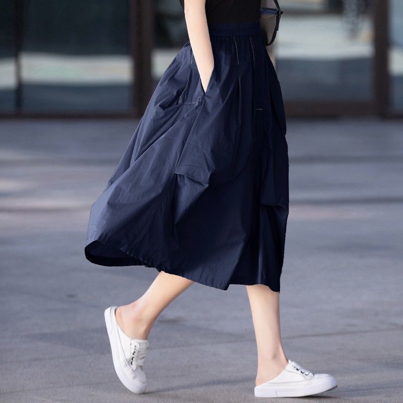 A- Line 스커트 2025 새로운 도착 유지 라이트 성숙한 스타일 중간 길이 여름 스커트 여성의 얇은 불규칙한 주름 치마