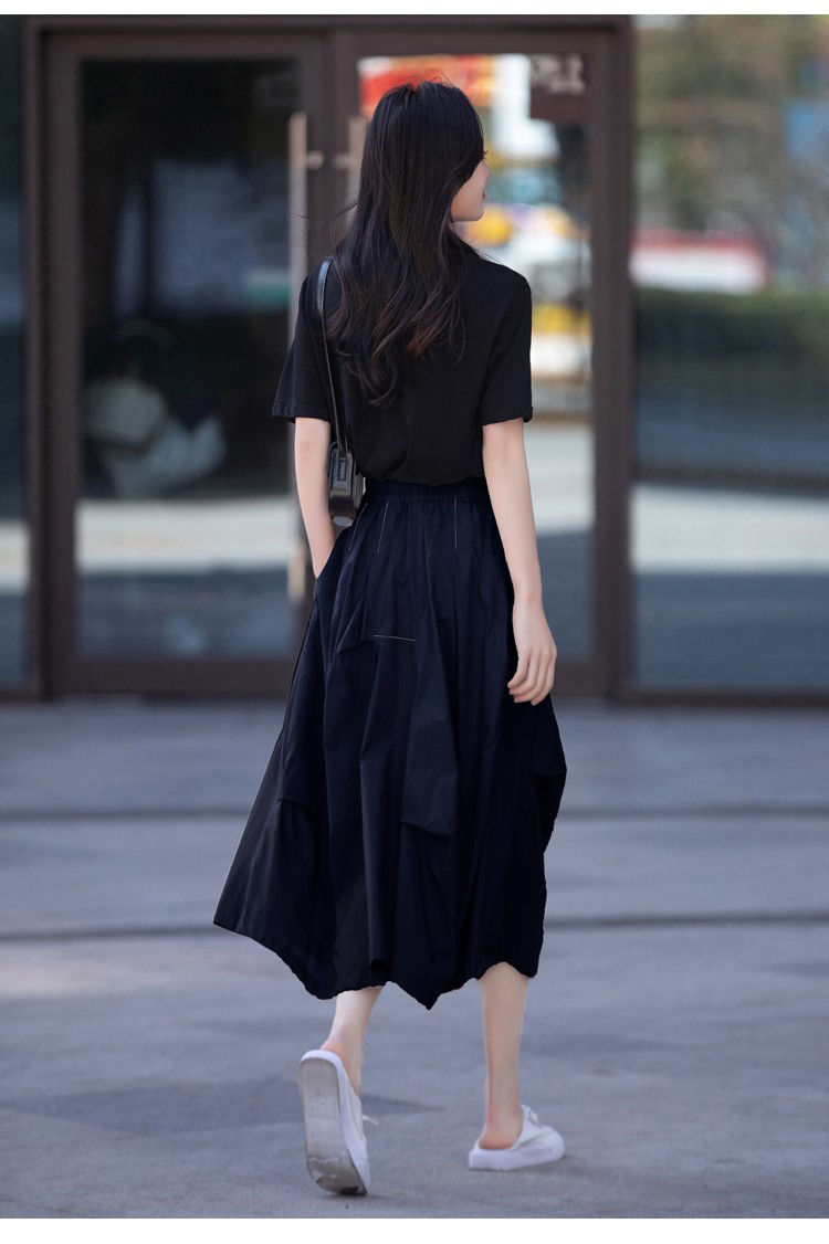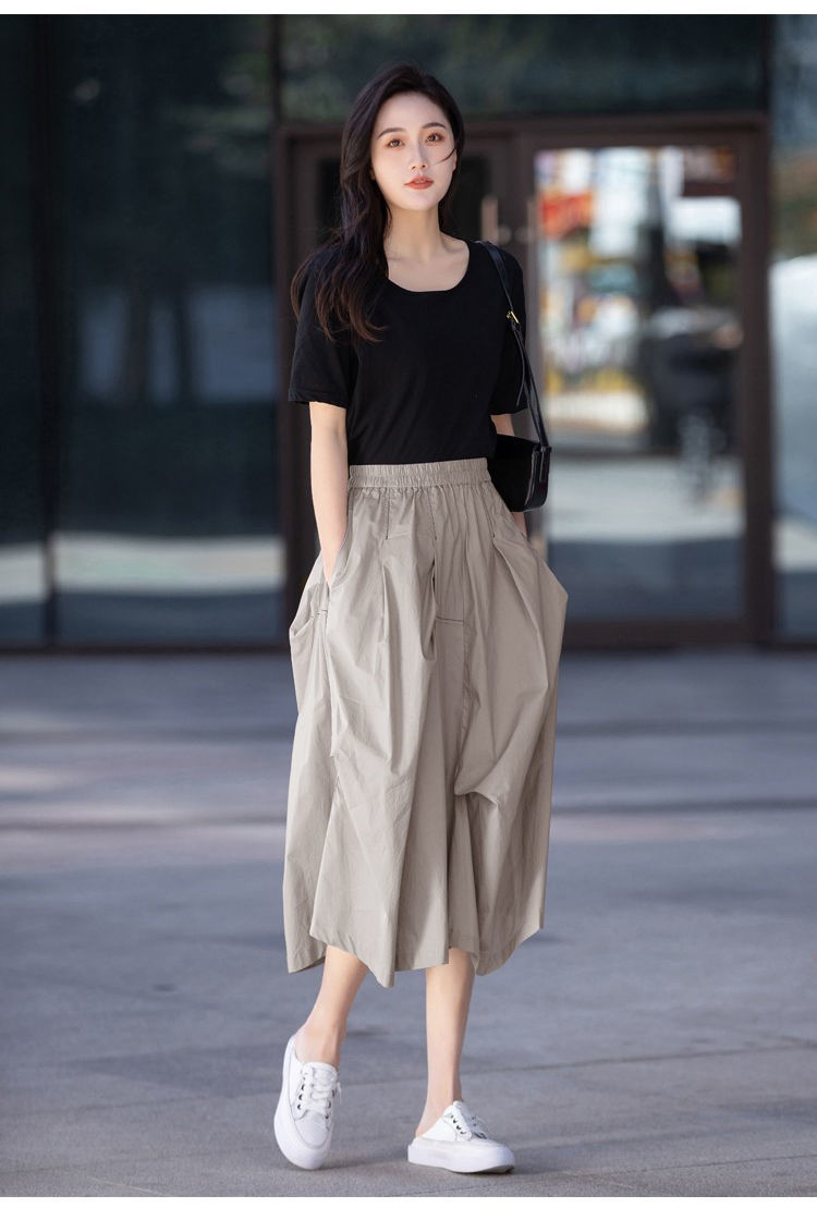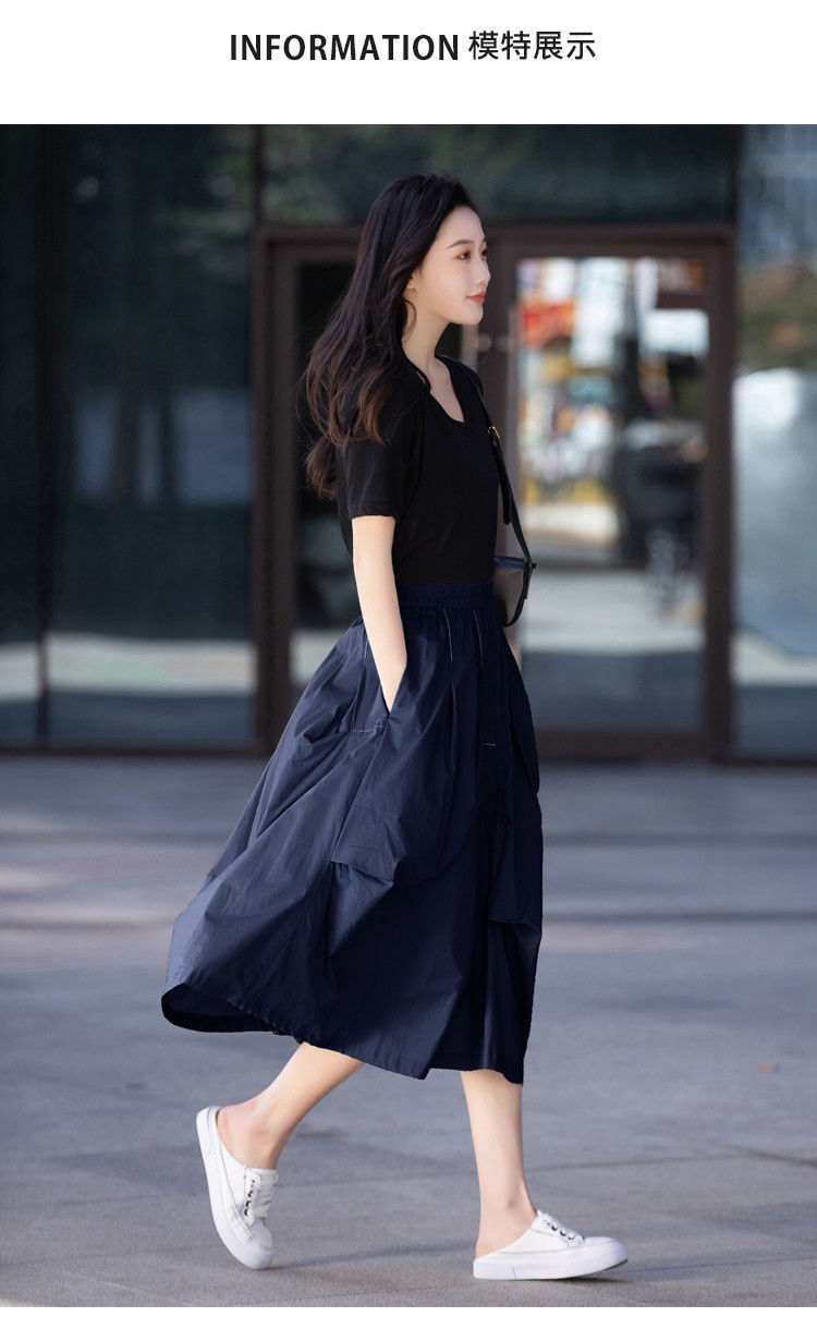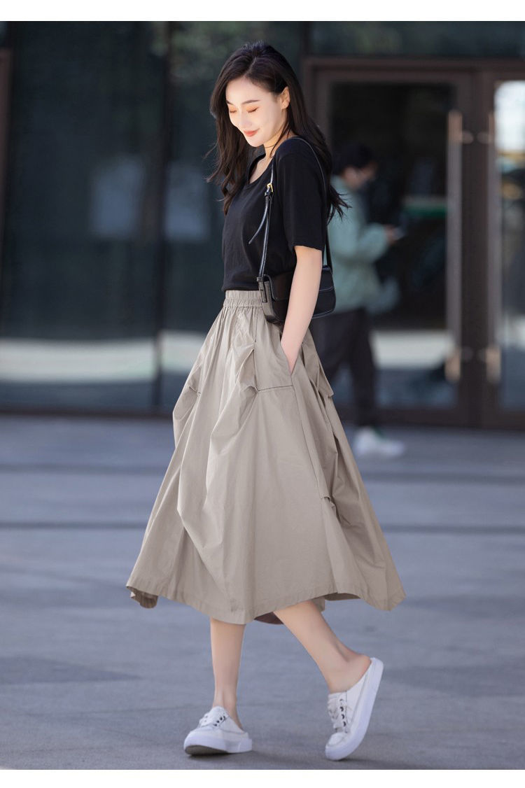 A- Line 스커트 2025 새로운 도착 유지 라이트 성숙한 스타일 중간 길이 여름 스커트 여성의 얇은 불규칙한 주름 치마