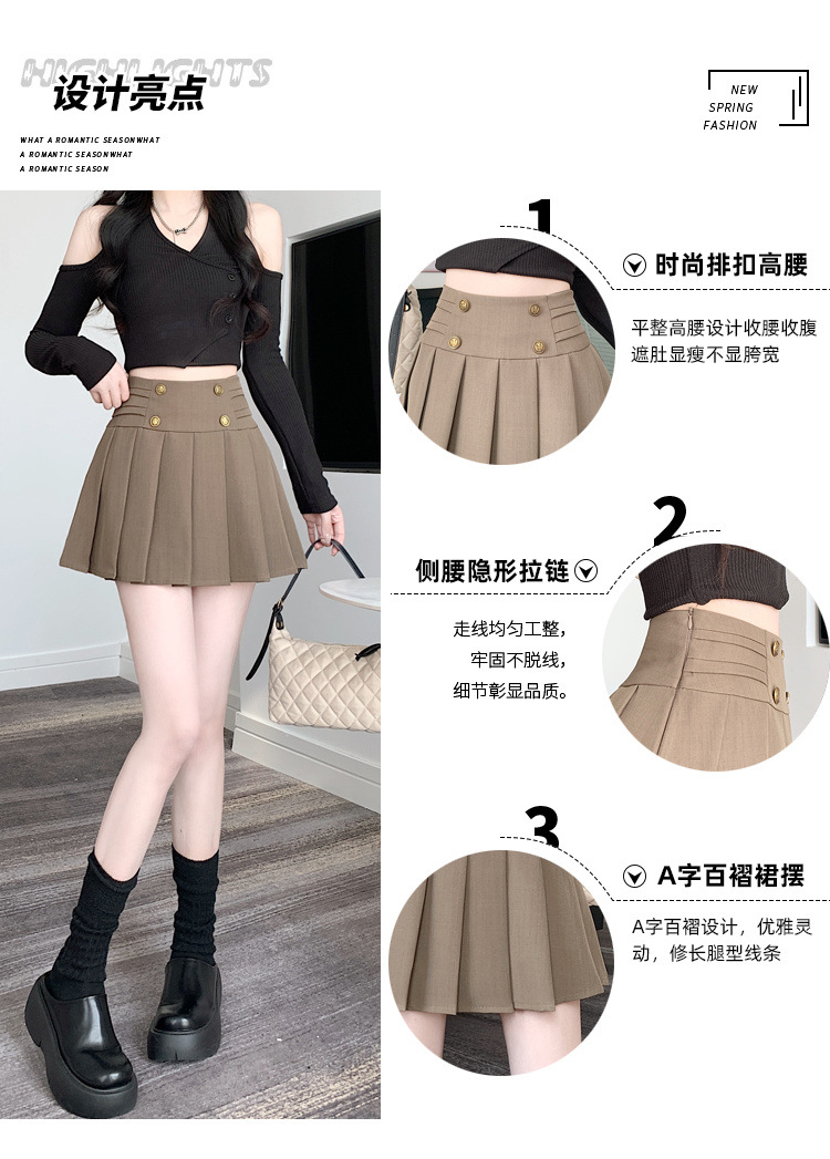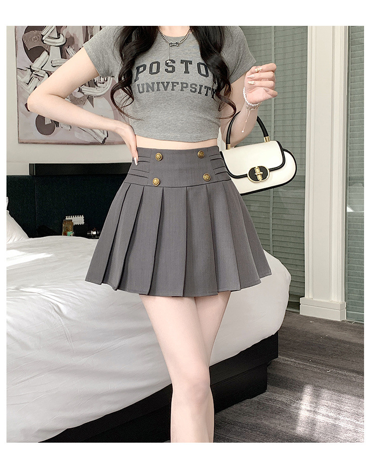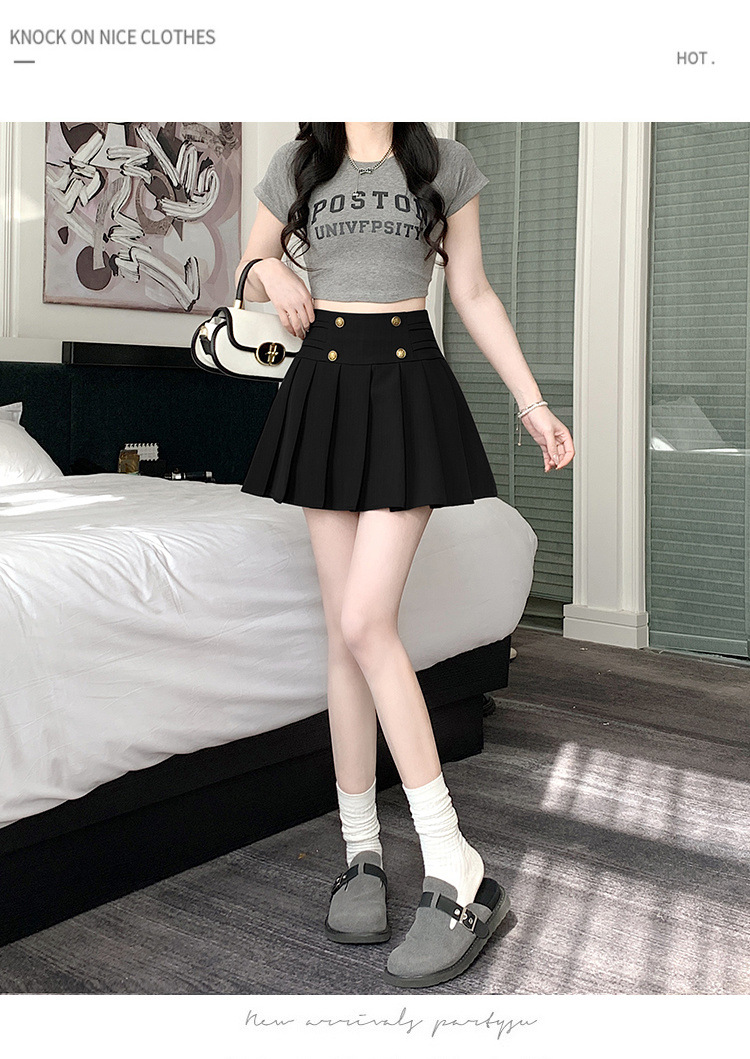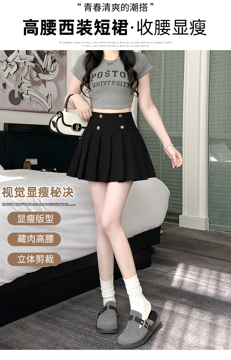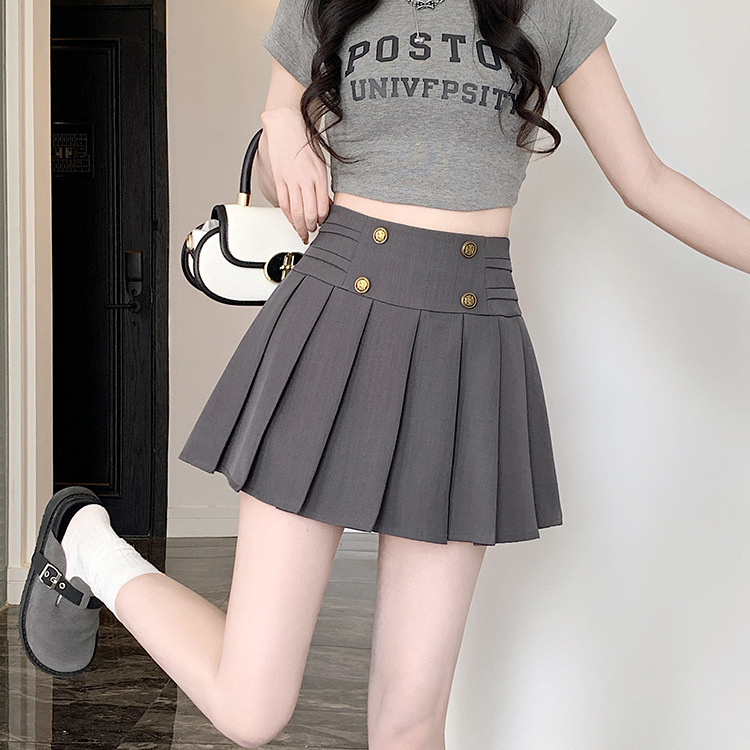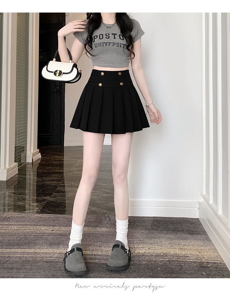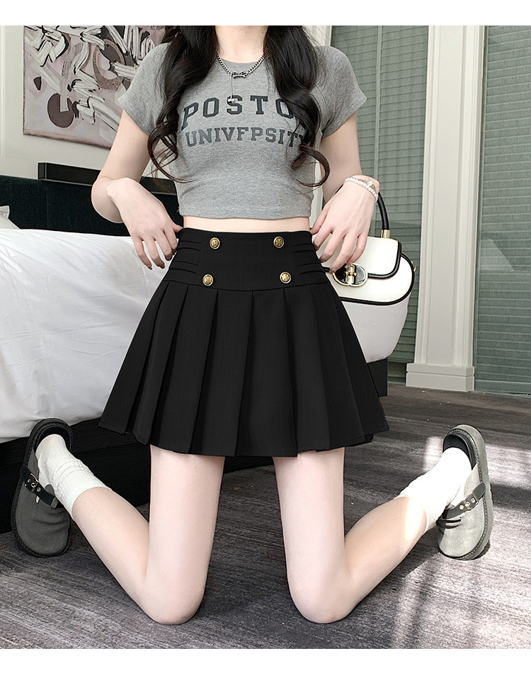 빈티지 가슴 세트 치마 여자 2025 새로운 여름 대학 스타일 높은 허리 슬리밍 A 라인 주름 치마