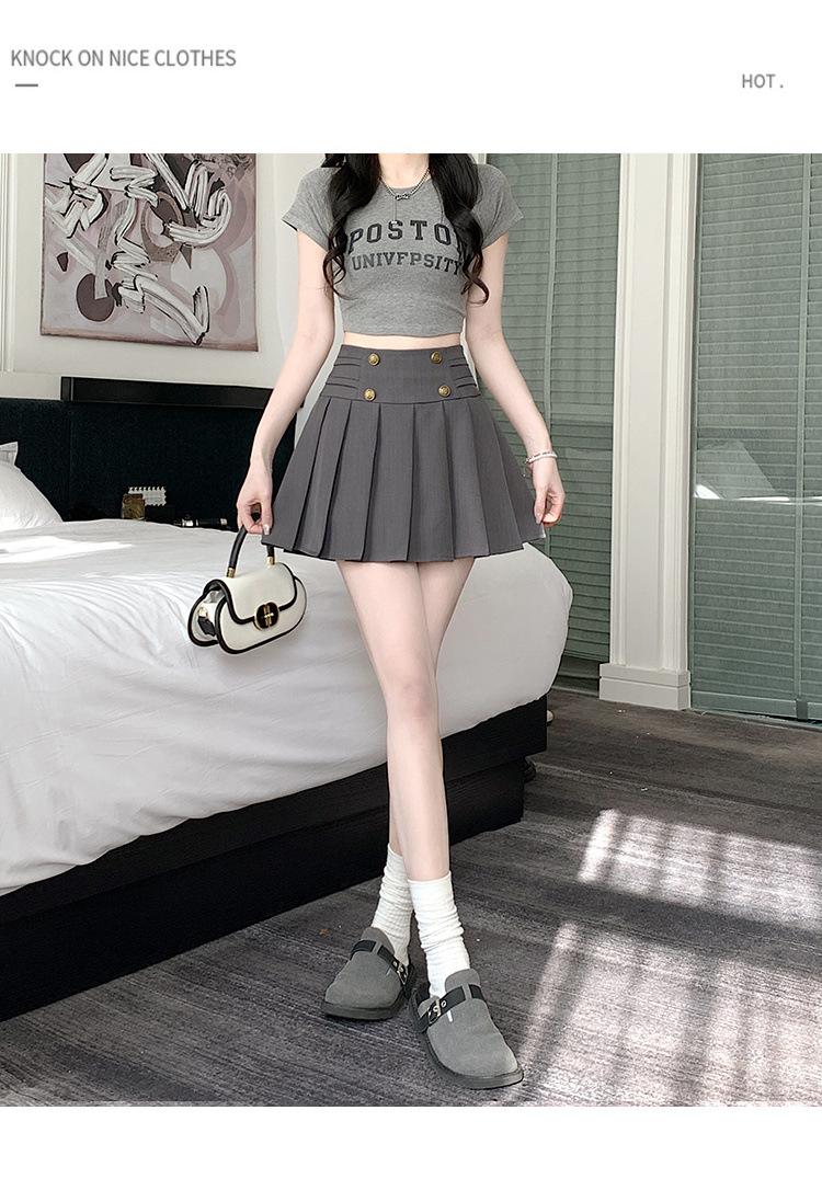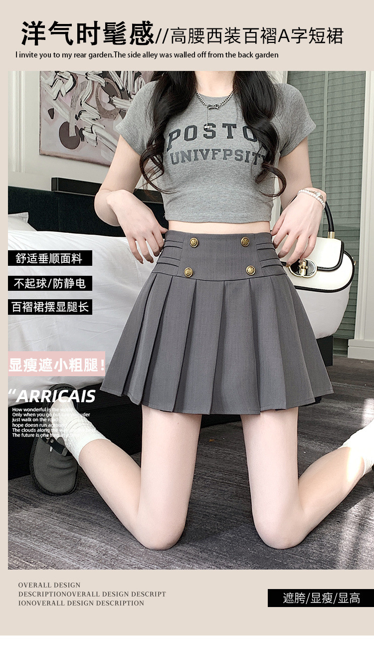 빈티지 가슴 세트 치마 여자 2025 새로운 여름 대학 스타일 높은 허리 슬리밍 A 라인 주름 치마스토어 가기