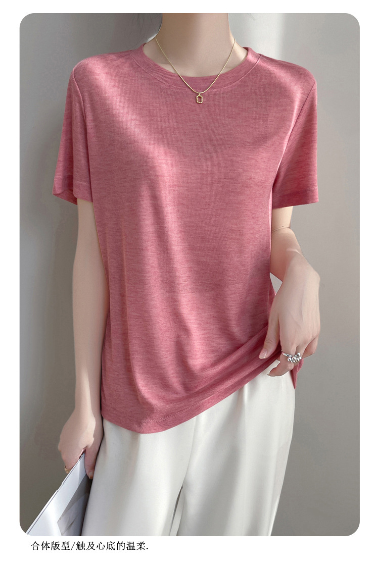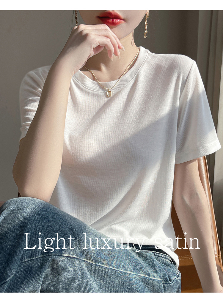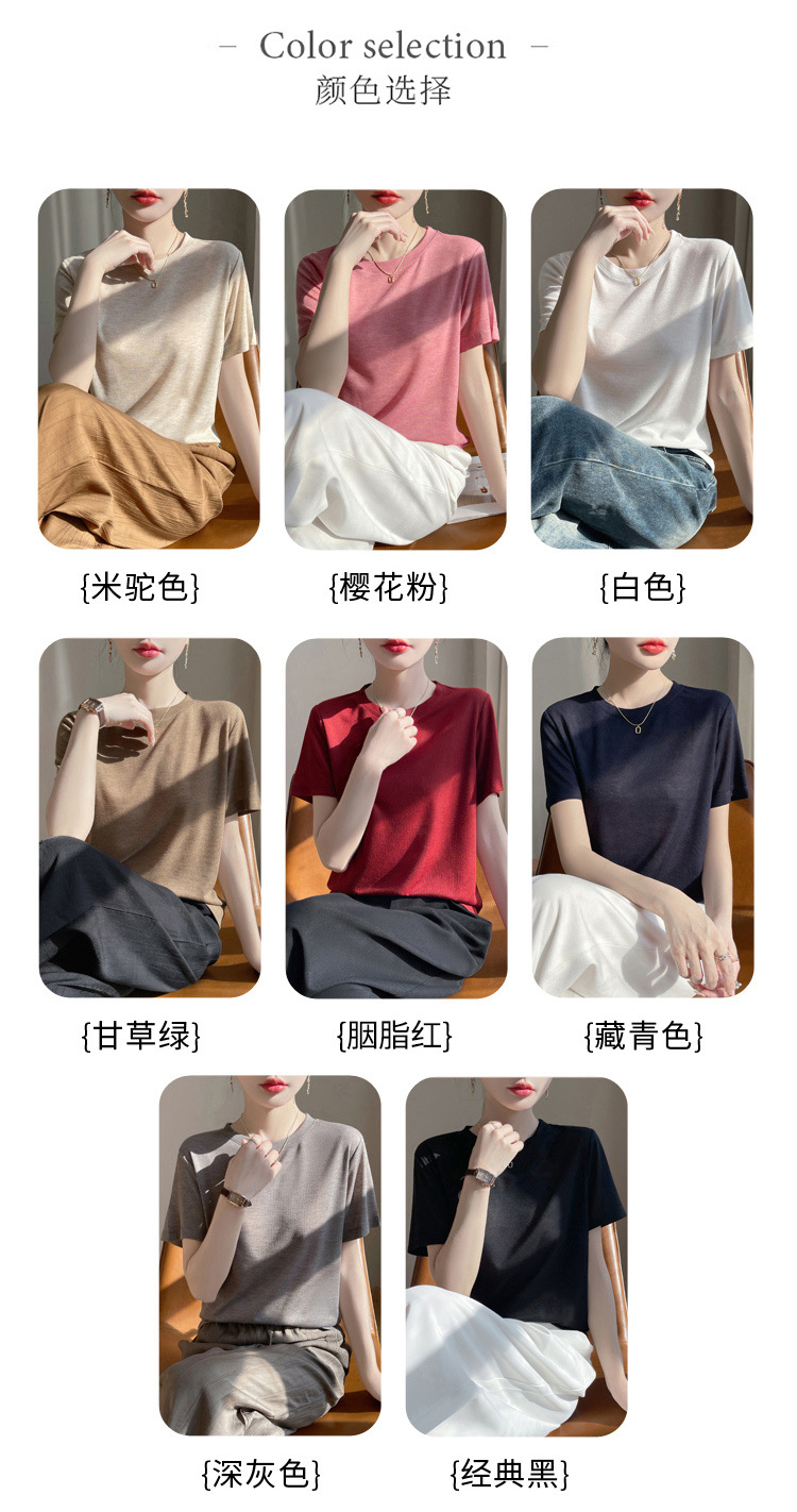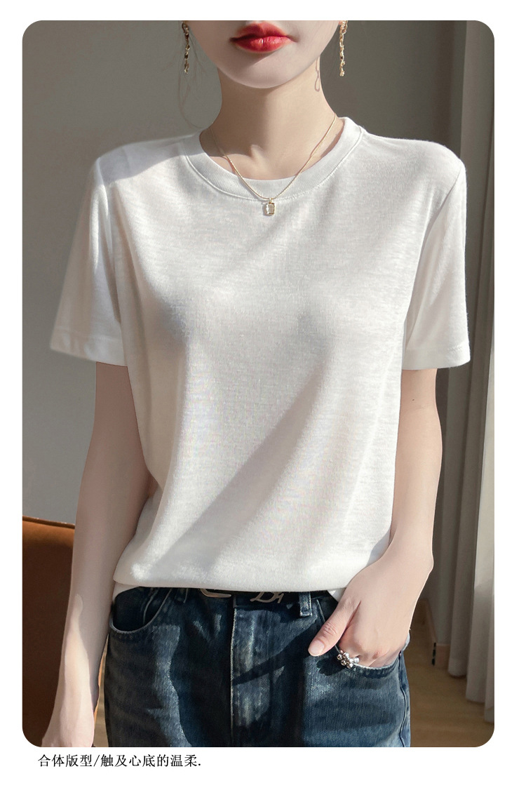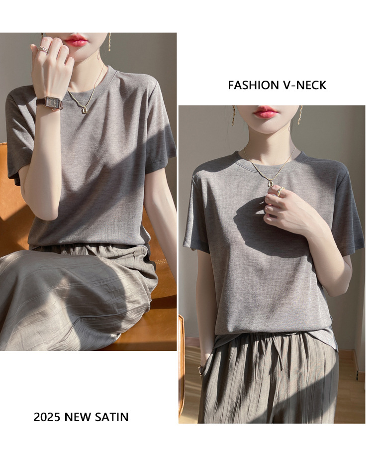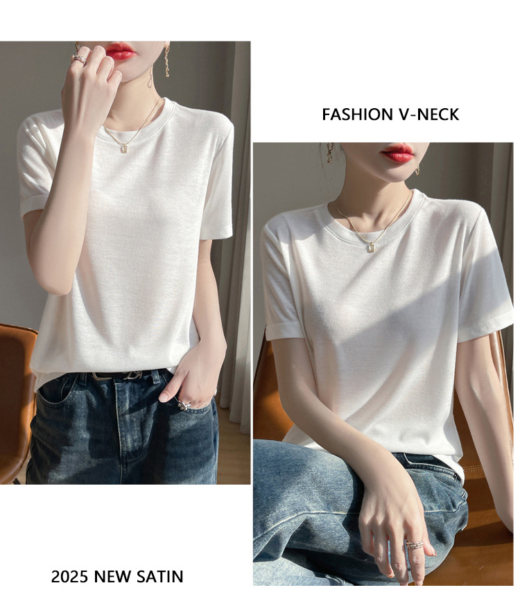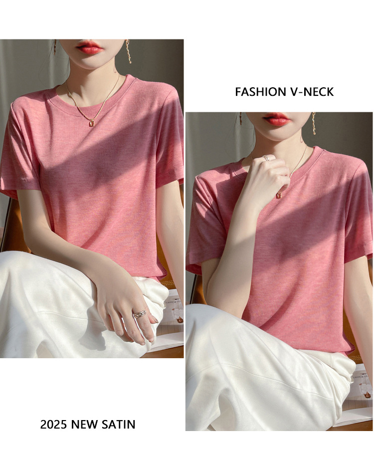 2025 년 여름 새로운 텐셀 반팔 티셔츠 여성용 루즈 슬리밍 올 매치 얇은 라운드 넥베이스 셔츠 탑 티셔츠