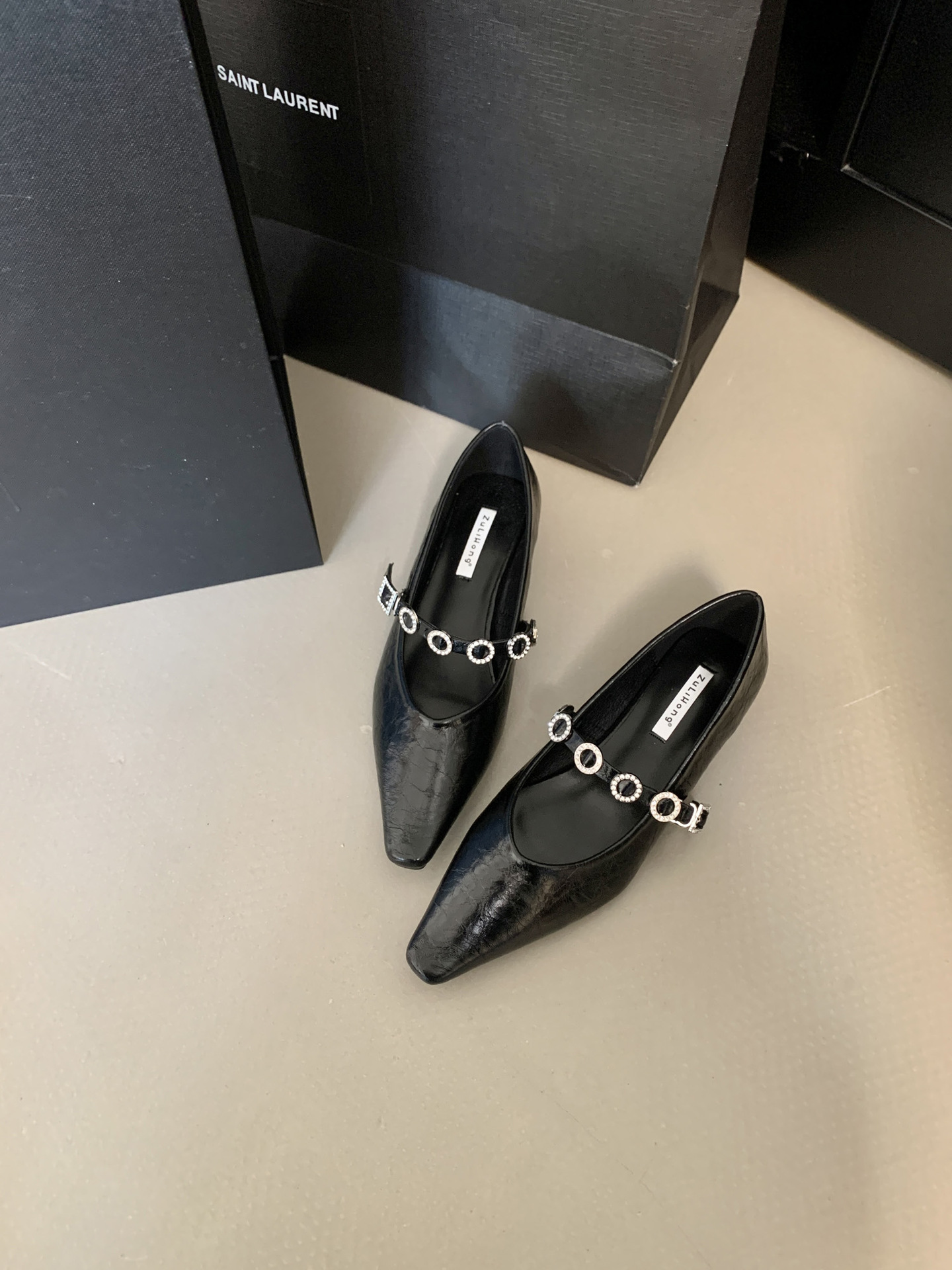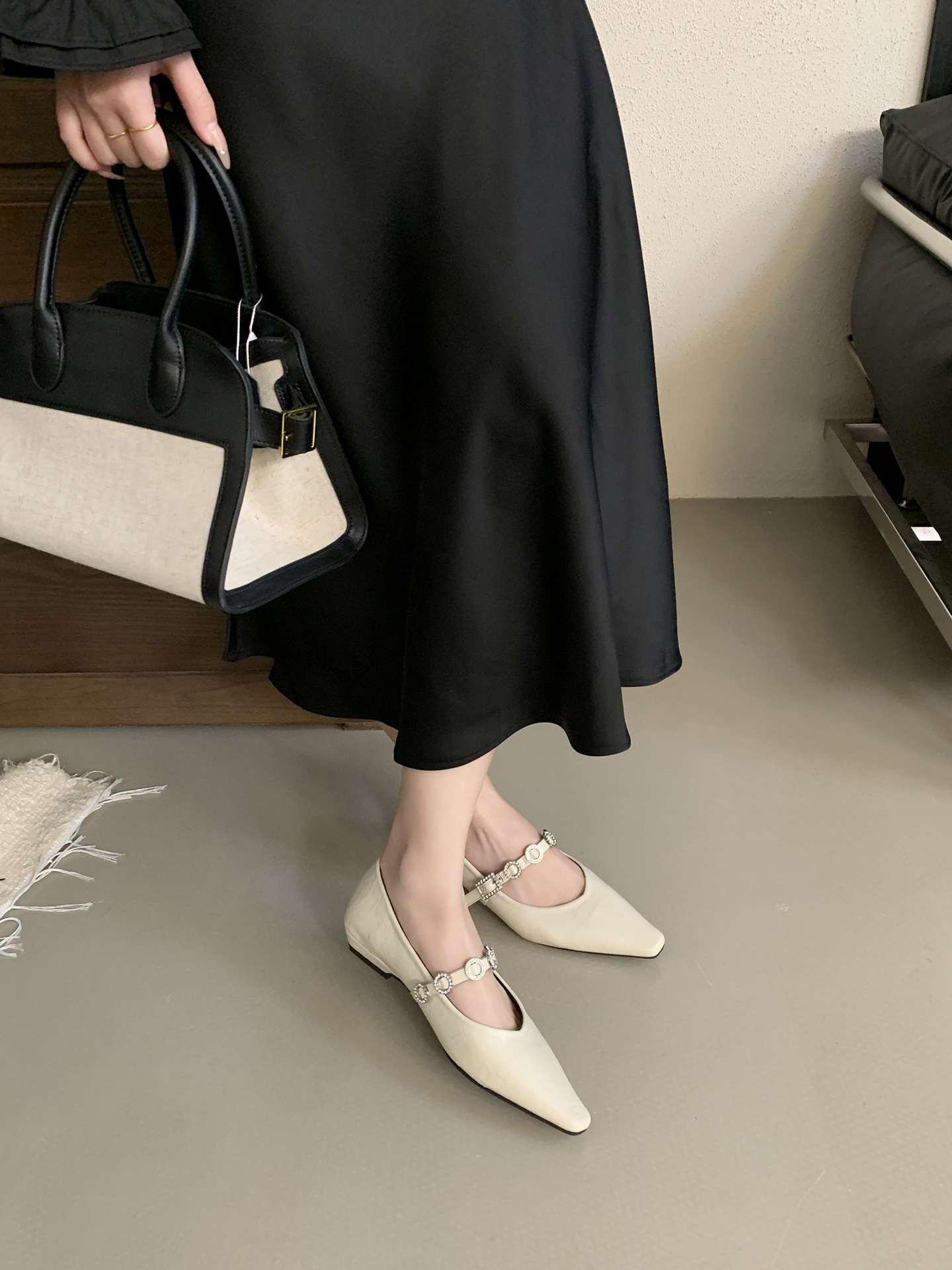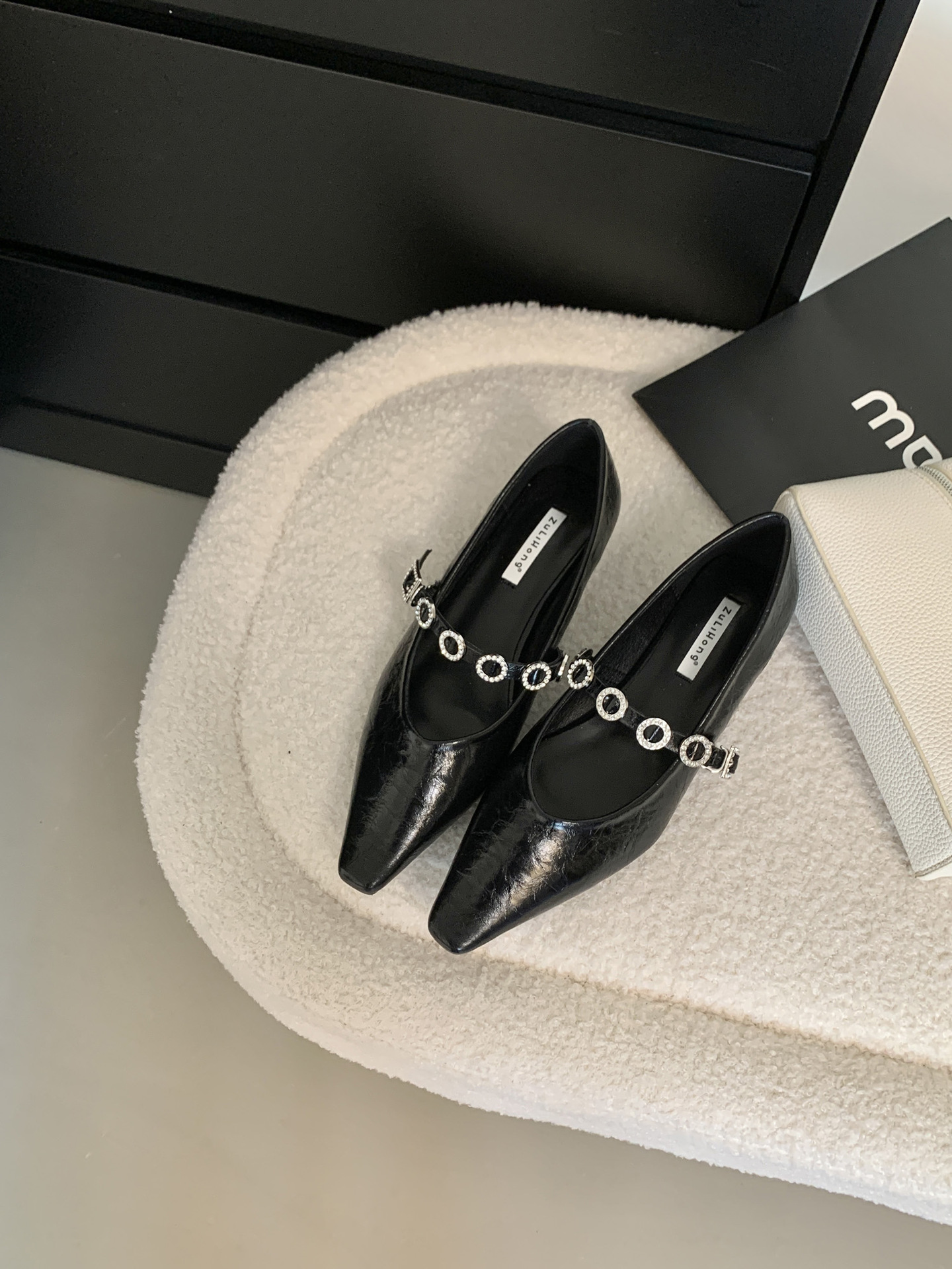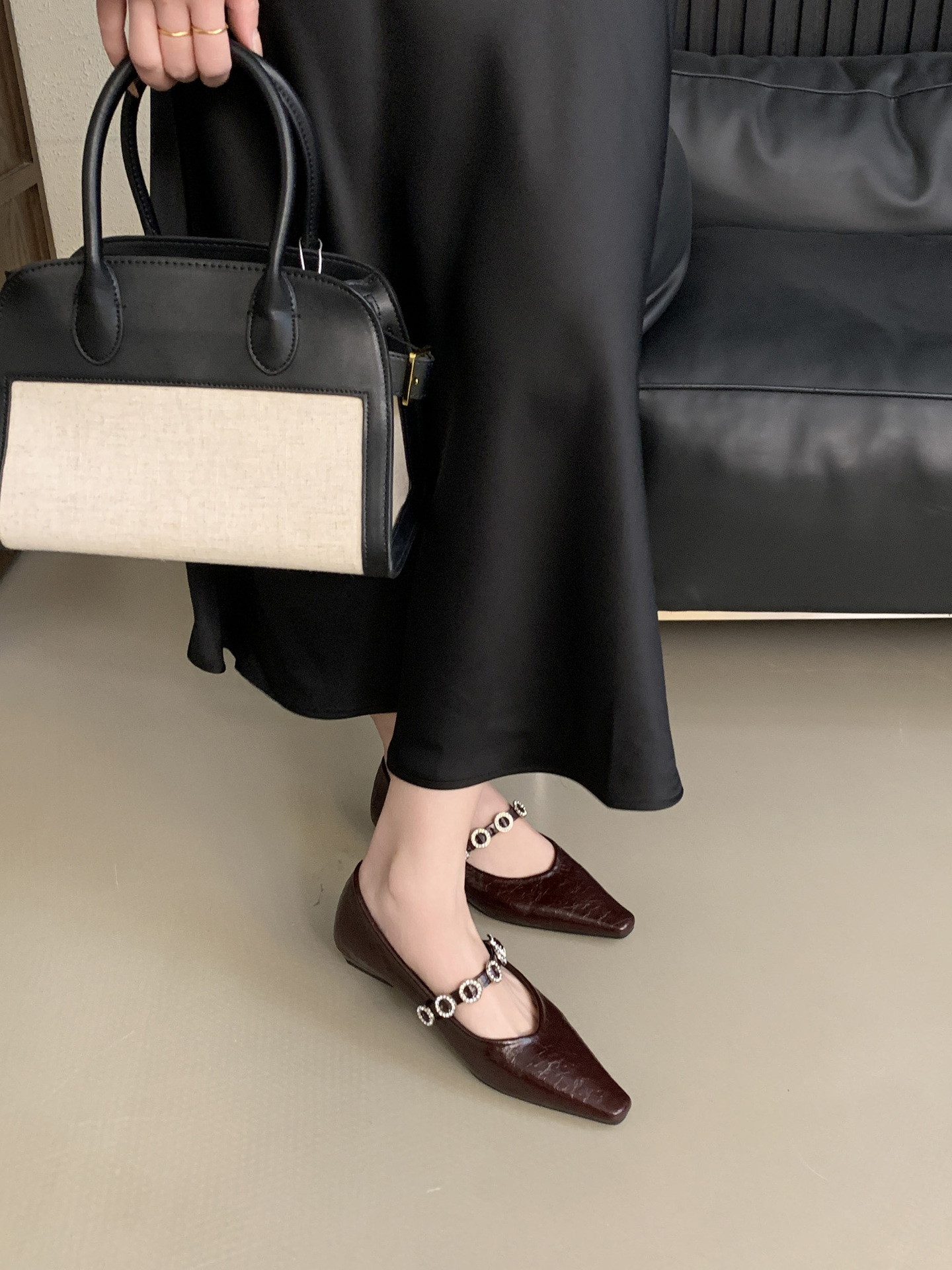 뾰족한 발가락 신발 여성의 2025 년 봄과 가을 새로운 프랑스 얕은 입 메리 제인 신발 빈티지 금속 체인 스트랩 가죽 신발스토어 가기