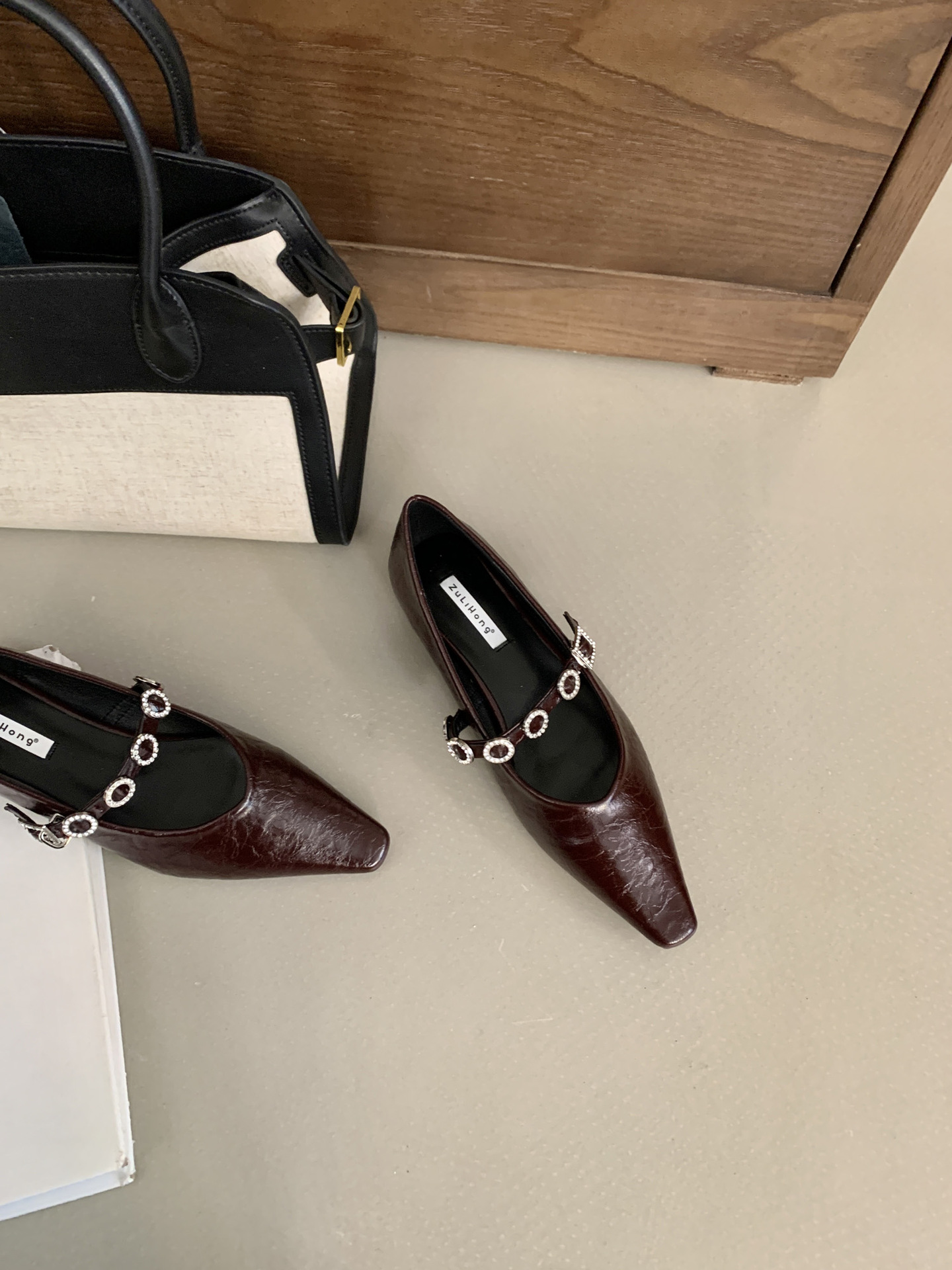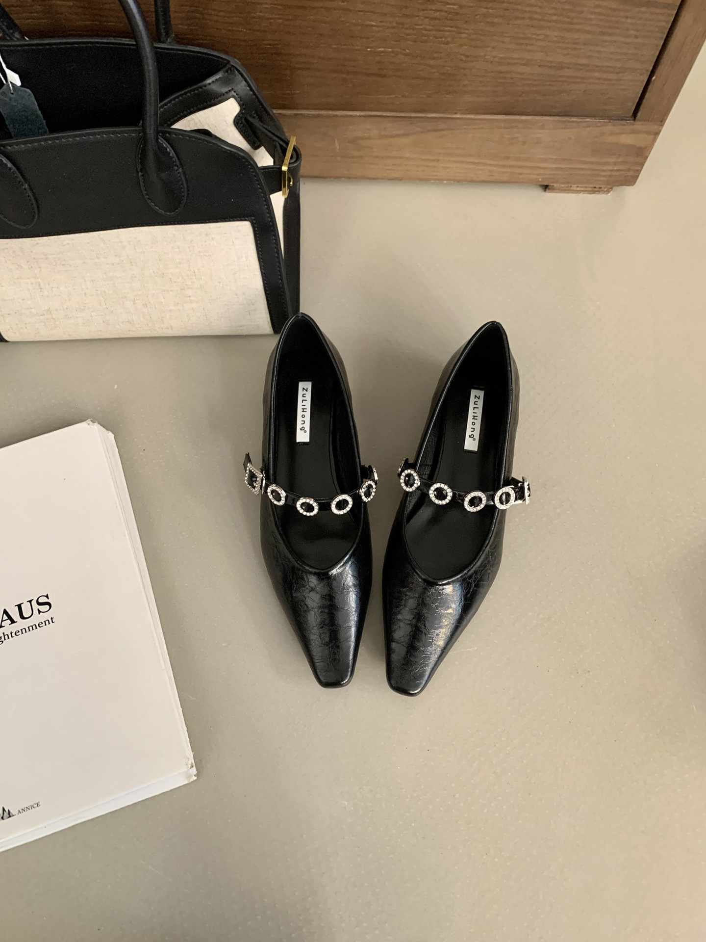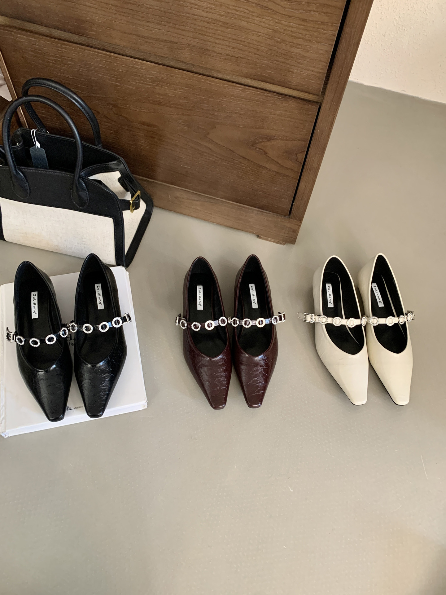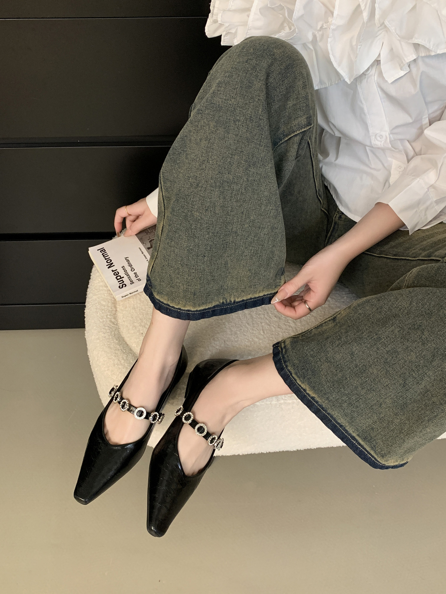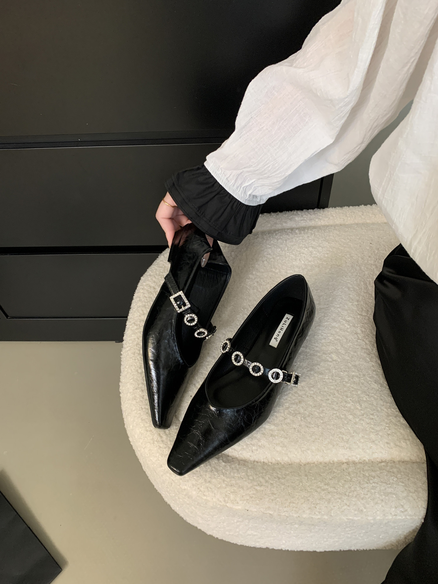 뾰족한 발가락 신발 여성의 2025 년 봄과 가을 새로운 프랑스 얕은 입 메리 제인 신발 빈티지 금속 체인 스트랩 가죽 신발스토어 가기