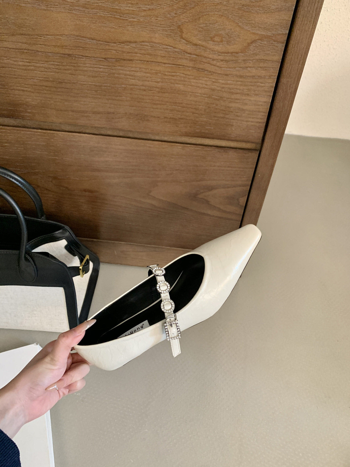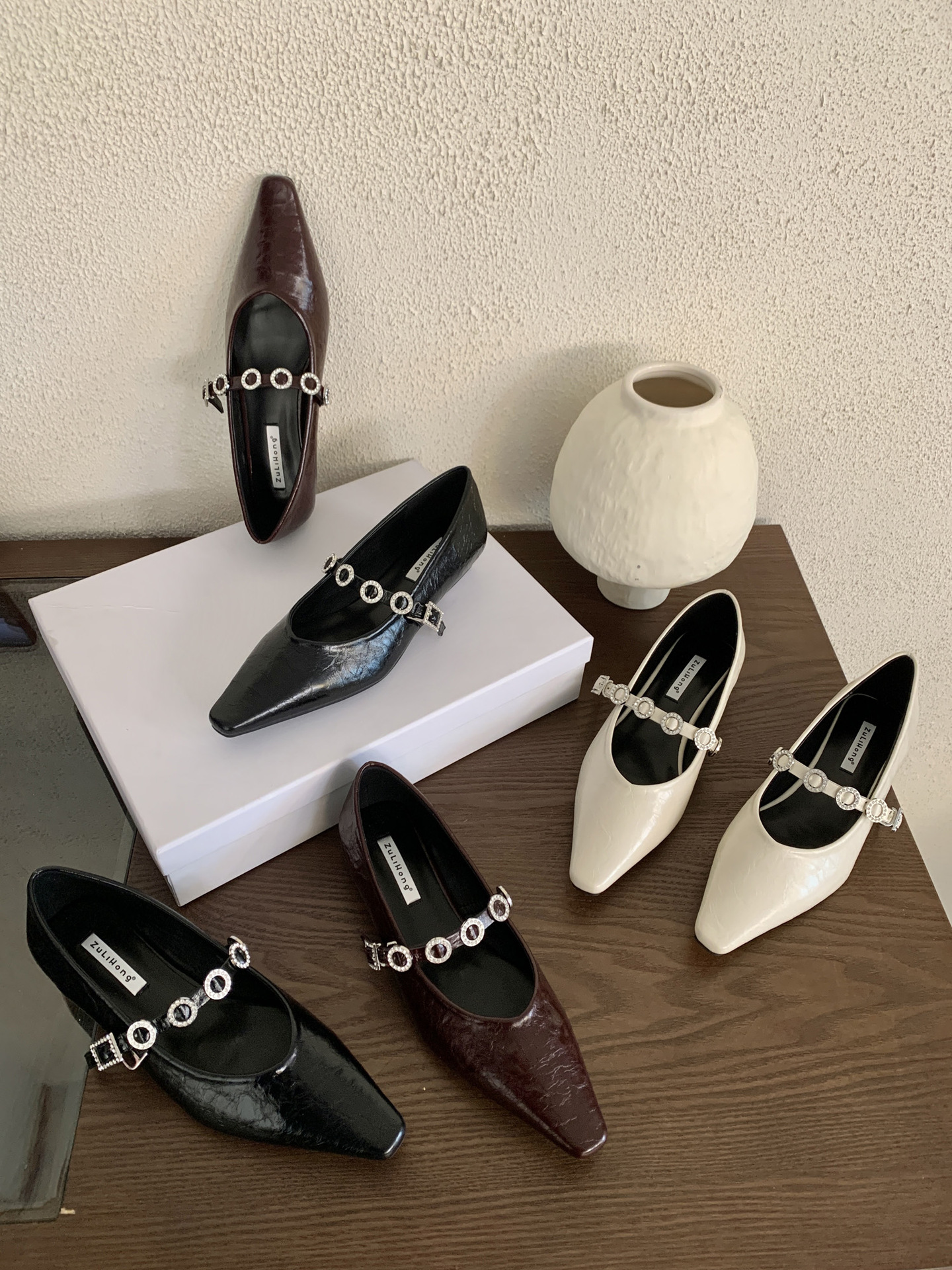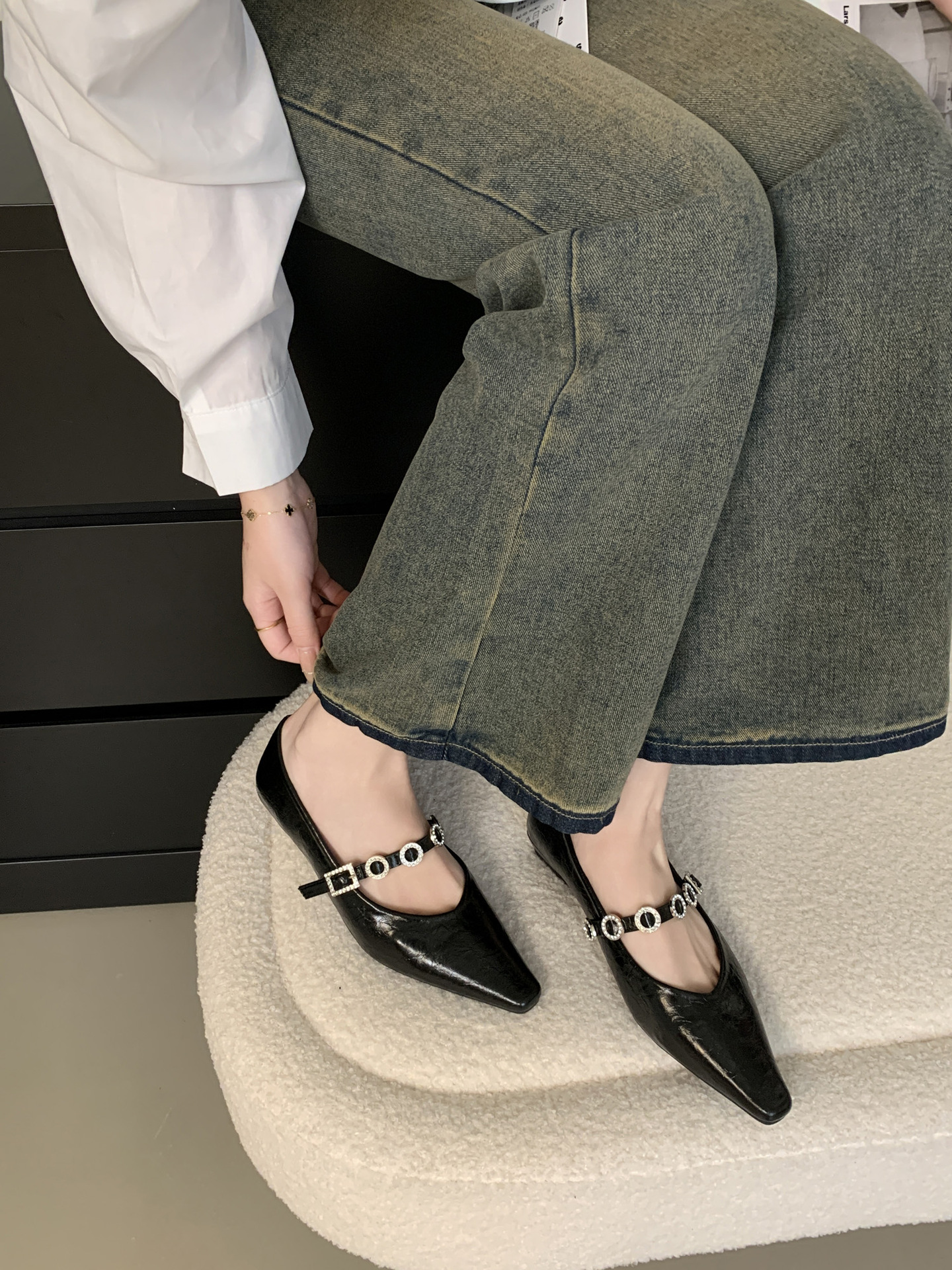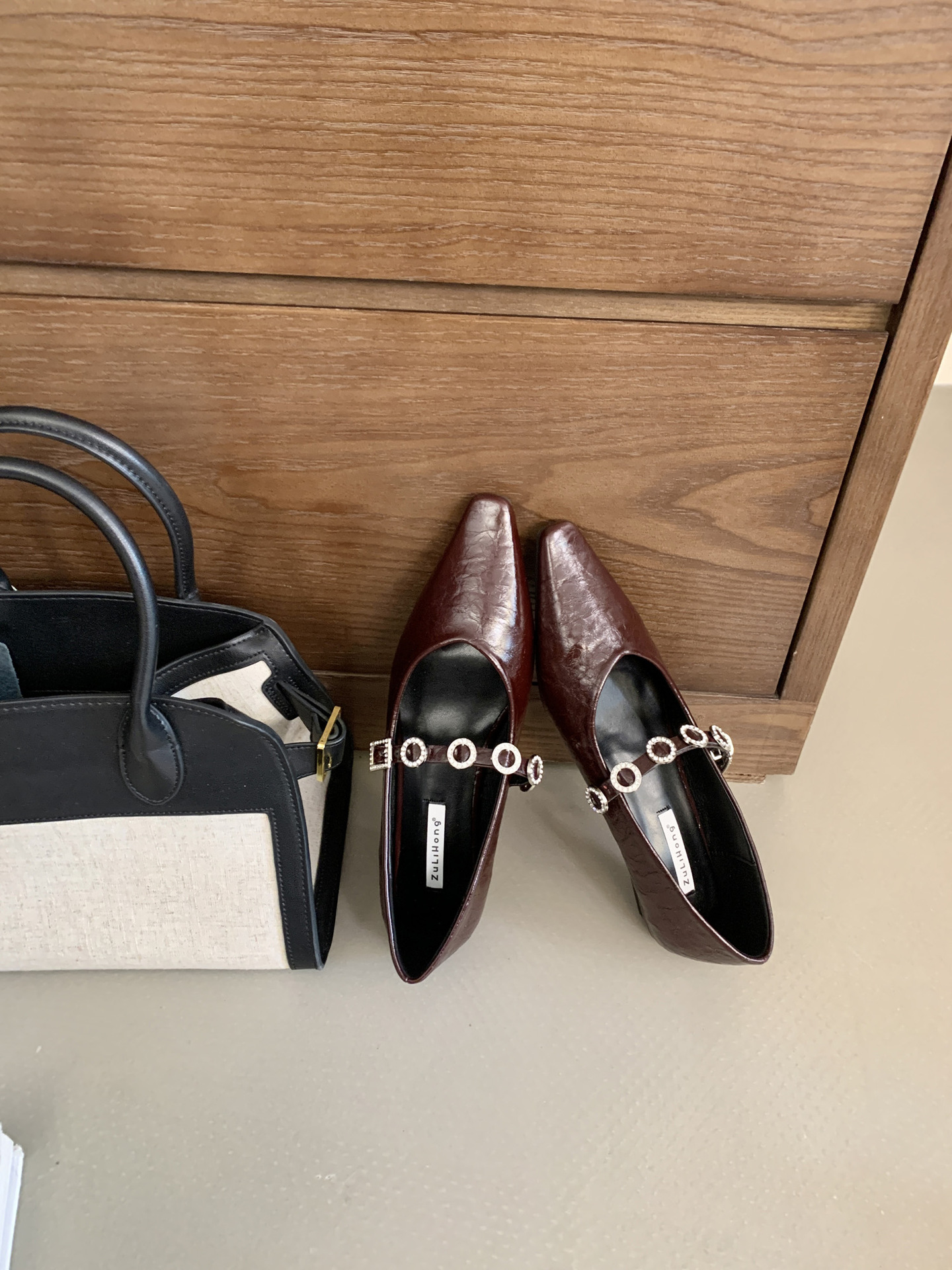 뾰족한 발가락 신발 여성의 2025 년 봄과 가을 새로운 프랑스 얕은 입 메리 제인 신발 빈티지 금속 체인 스트랩 가죽 신발스토어 가기