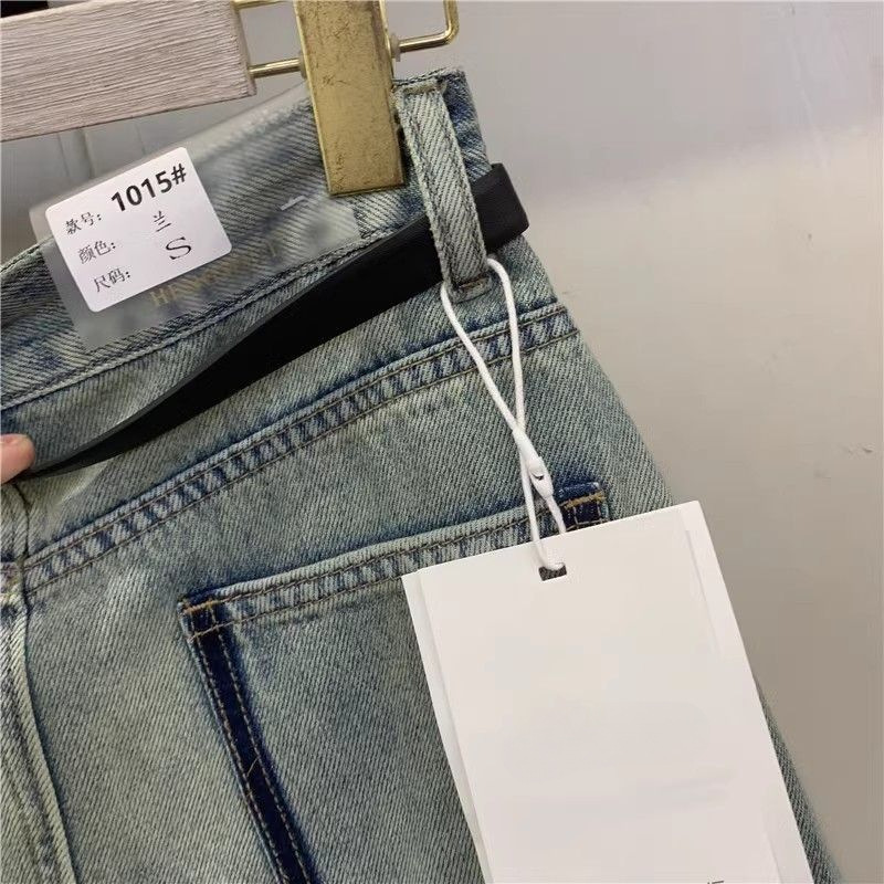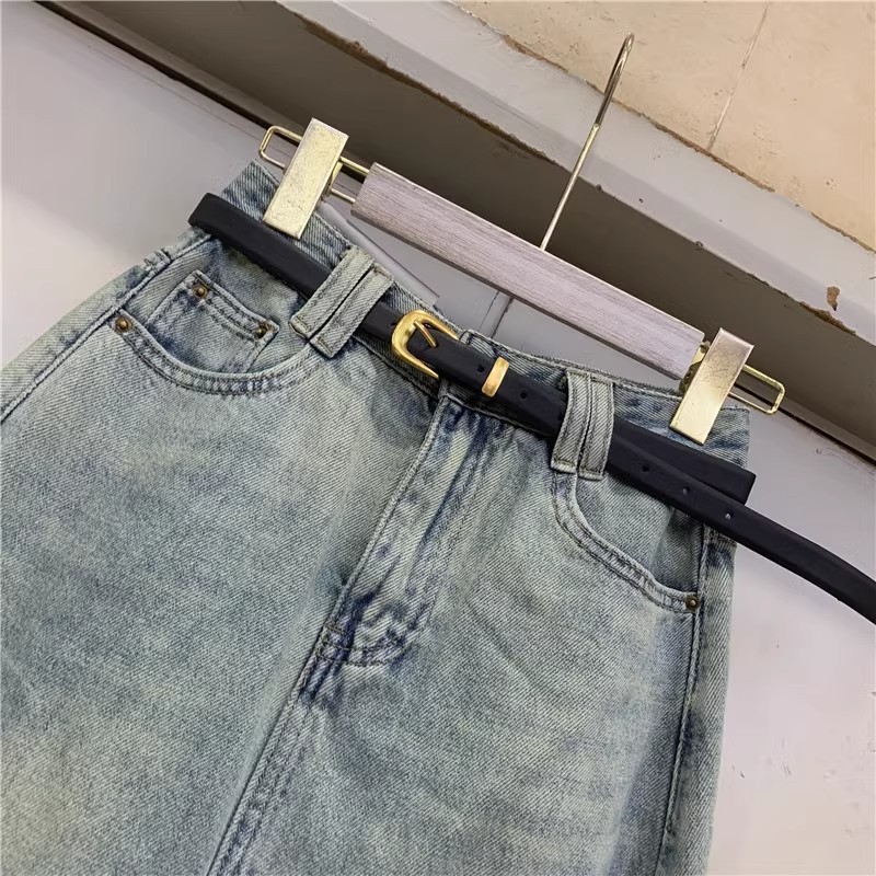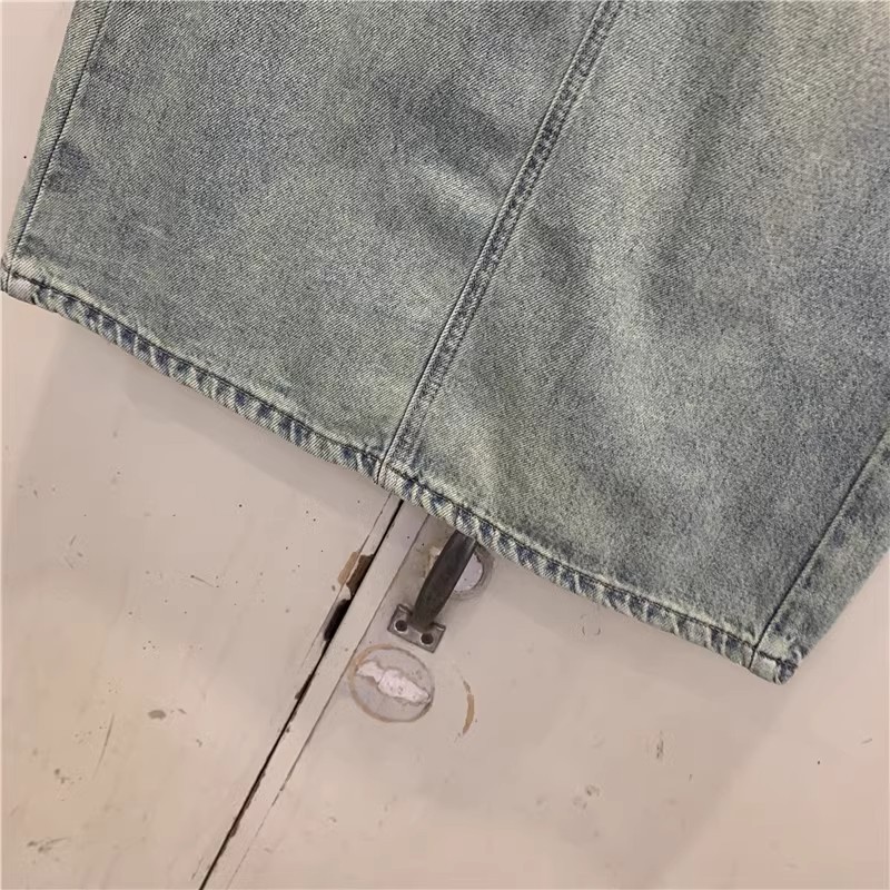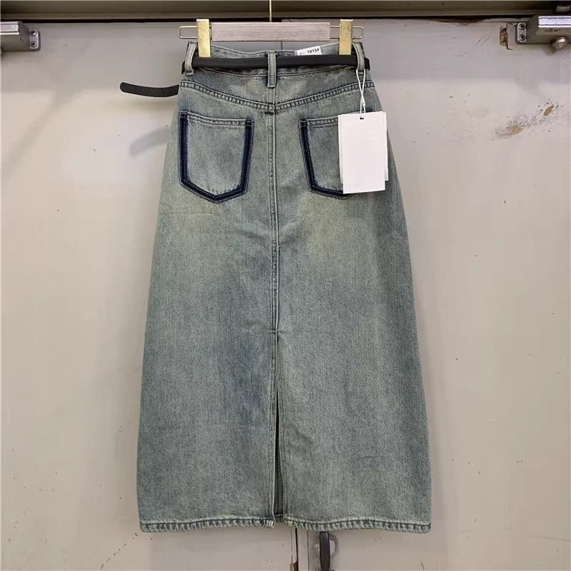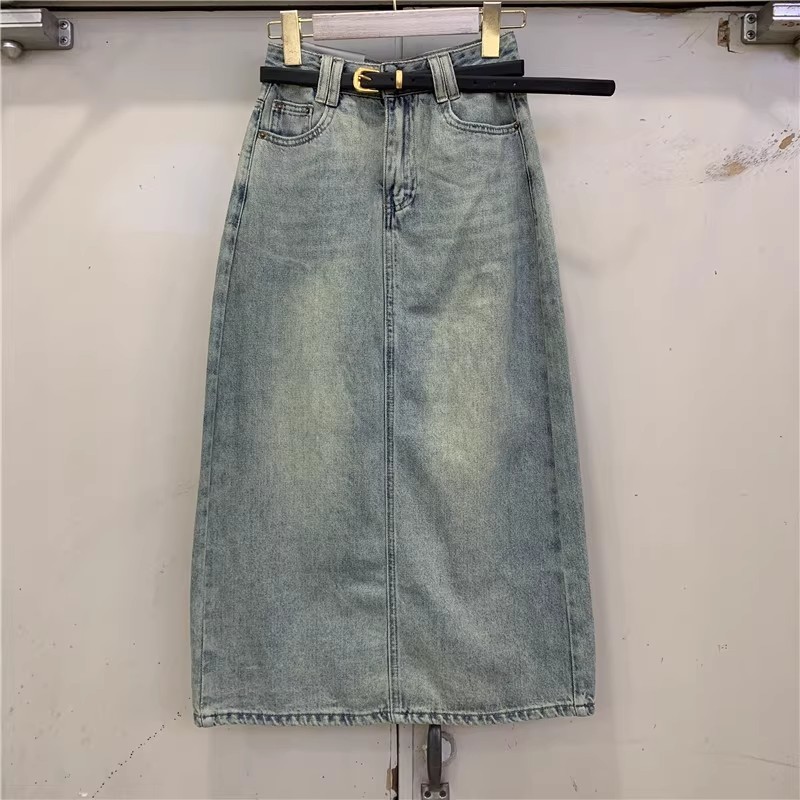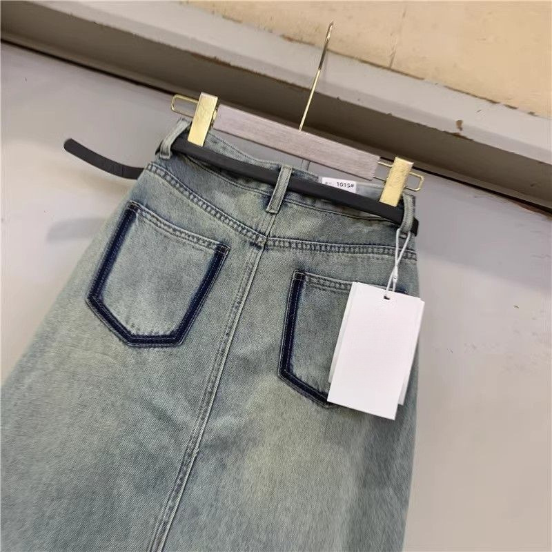 콘트라스트 포켓 데님 치마 어린이 2025 년 여름 새로운 높은 허리 중간 길이 분할 한 단계 치마스토어 가기