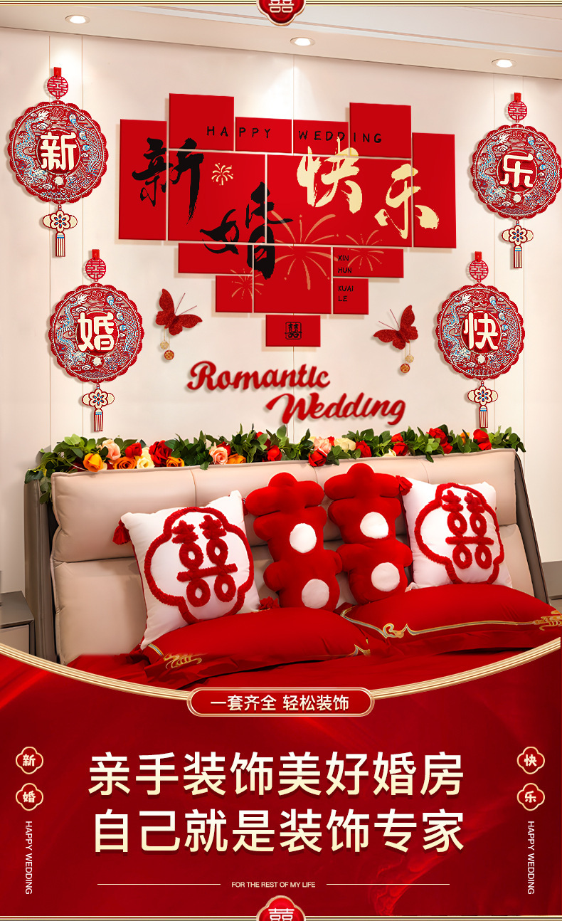 웨딩 룸 레이아웃 침대 옆 배경 벽 결혼식 새 집 남자의 마스터 침실 여자 침실 고급 감각 kt 보드 장식 세트스토어 가기